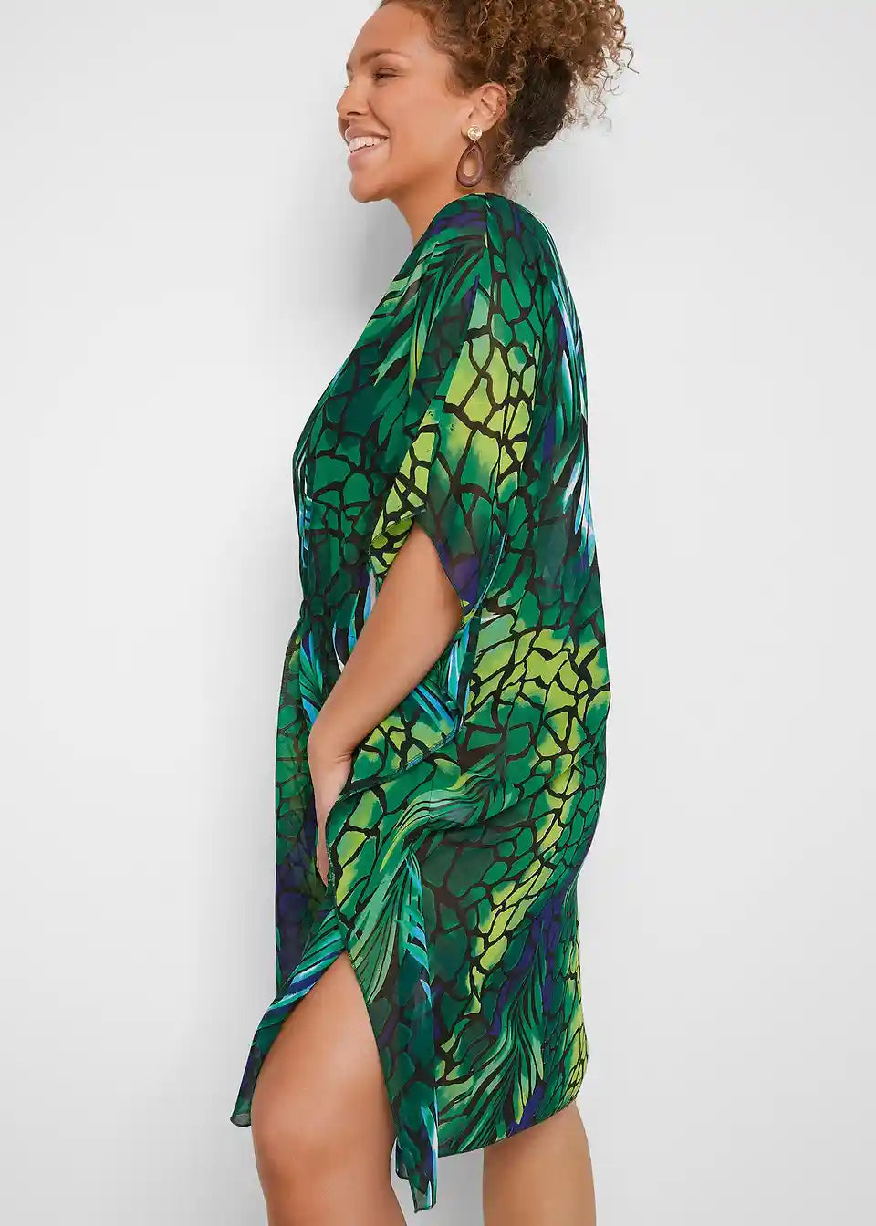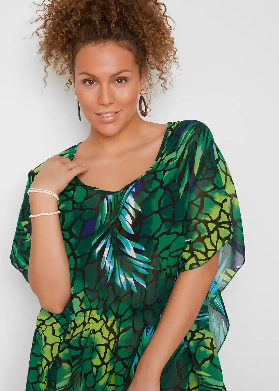 Ova atraktivna, lagano prozirna plažna haljina iz bpc selection izvrsno nadopunjuje kupaći kostim ili bikini. Elastični pojas u struku naglašava sredinu tijela na privlačan način i pruža ugodan osjećaj nošenja. Rukavi su široko krojeni i ležerno padaju. Isto tako, rub s prorezima na bokovima je raskrojen i ugodno obavija figuru.