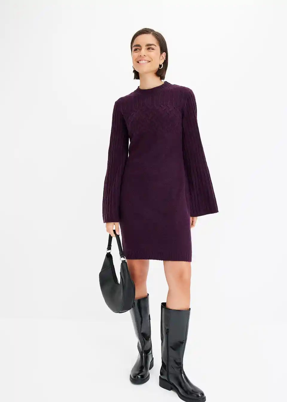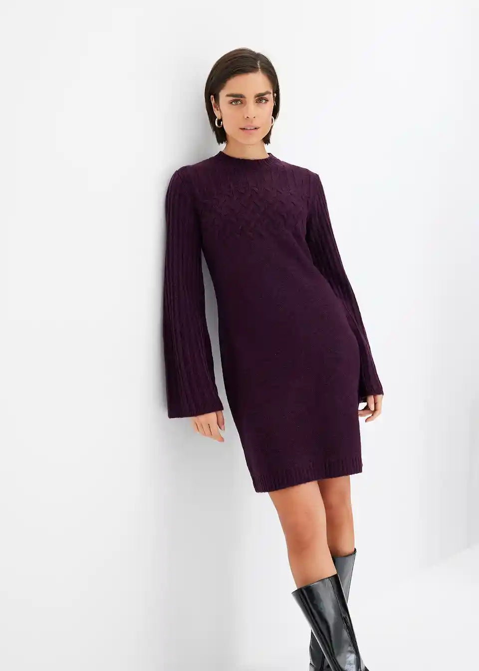 moderna pletena haljina s uzorkom pletenica