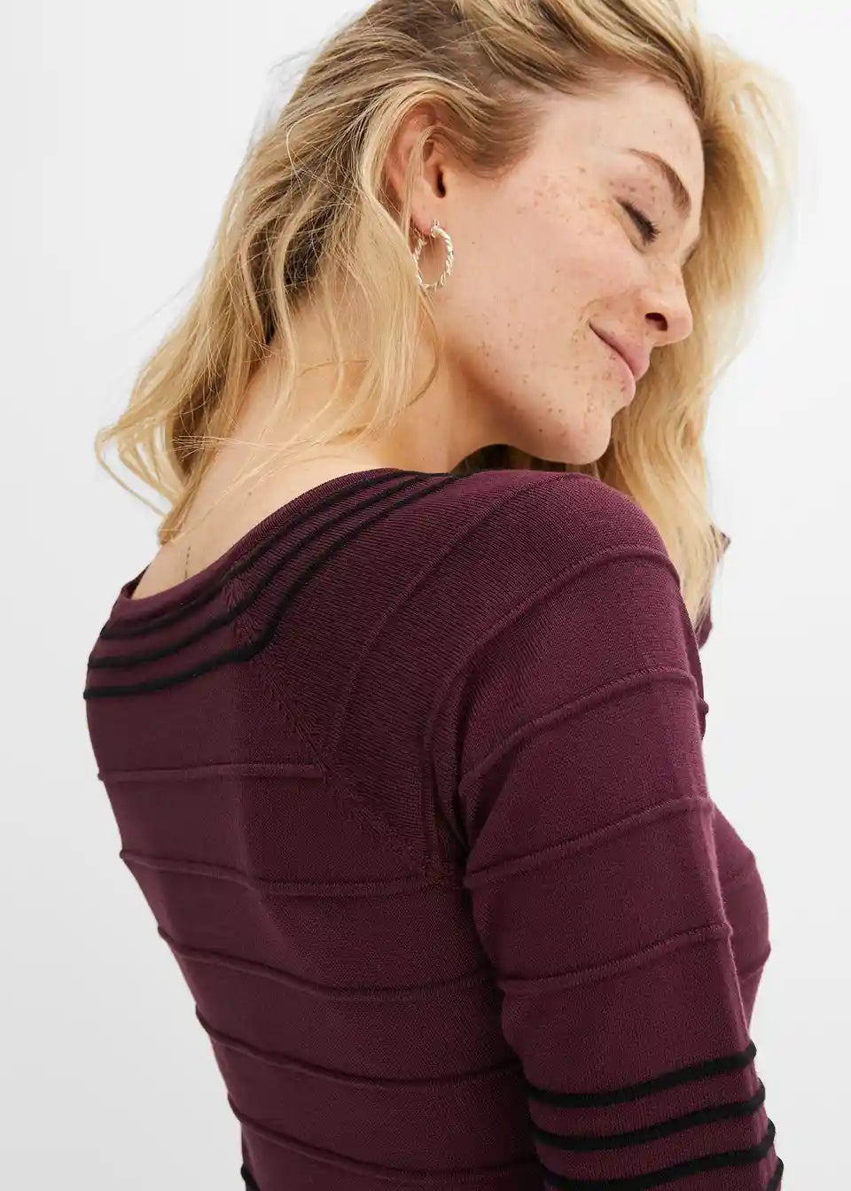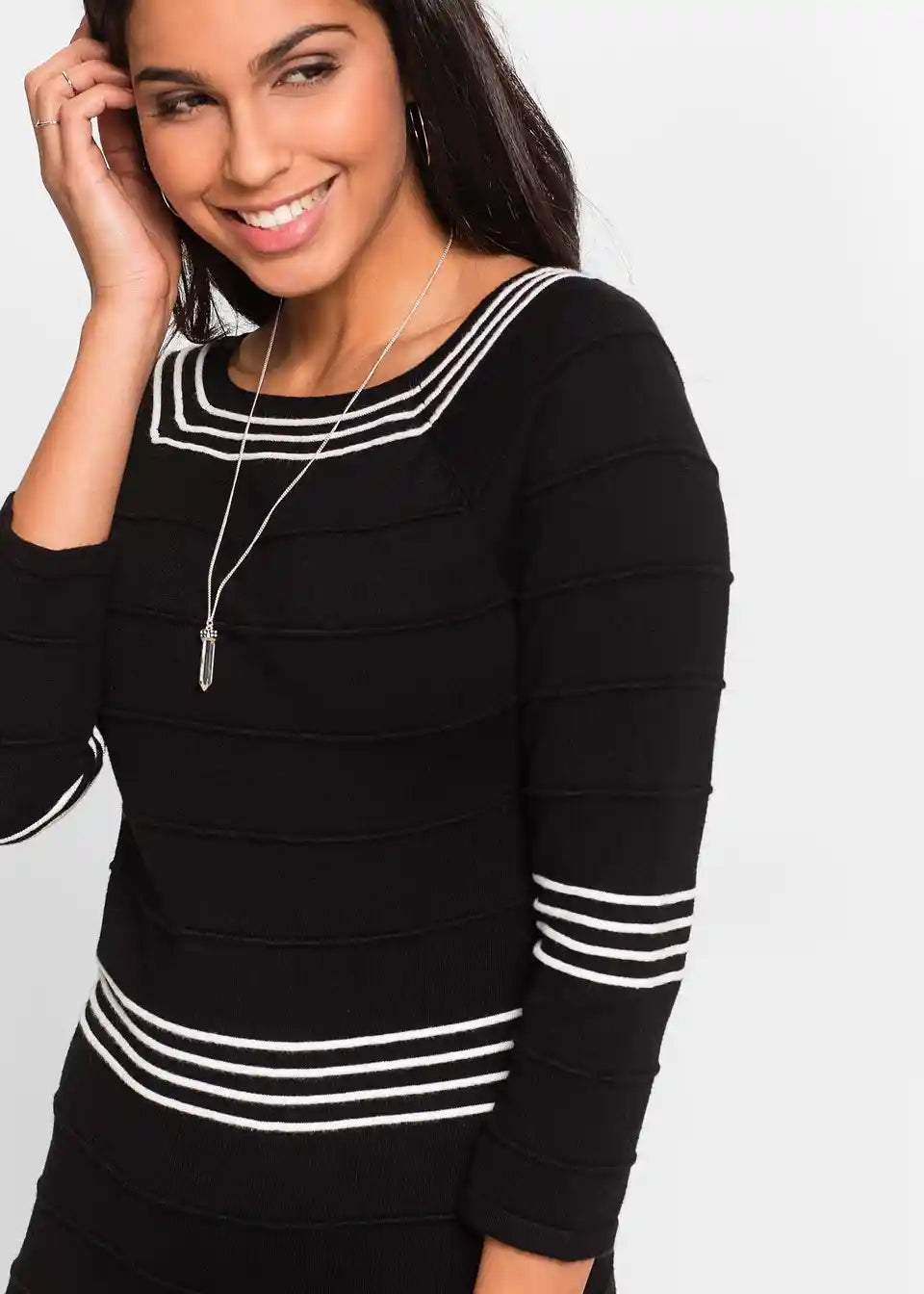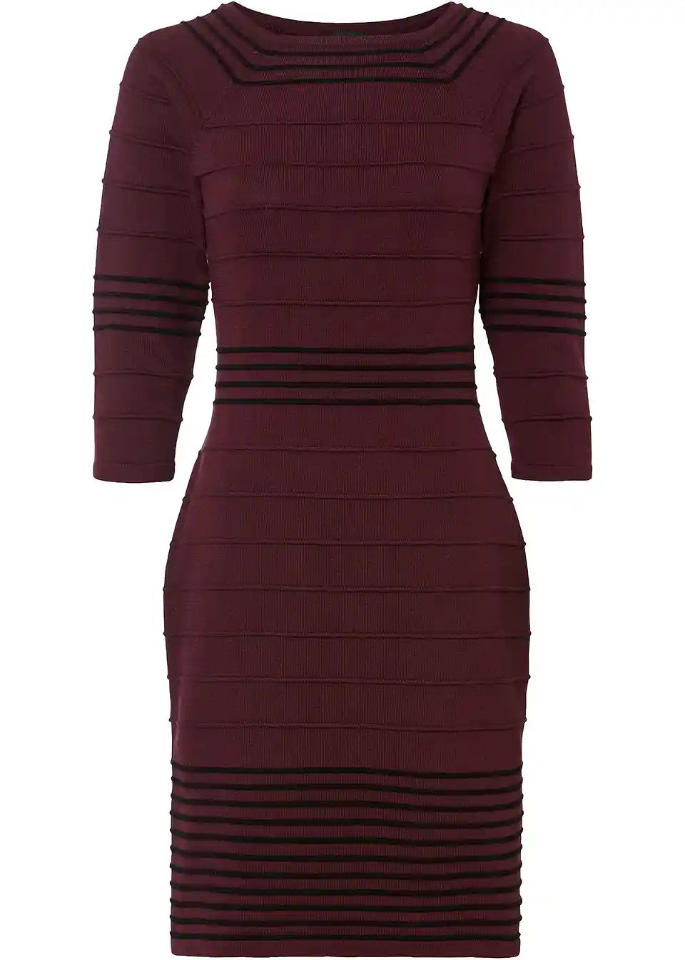 Ova pletena haljina marke BODYFLIRT naglašava ženstveni izgled. Kratka haljina s 3/4 rukavima od udobnog mekog pletiva ističe žensku siluetu. Prugice na Carmen izrezu te na struku, rukavima i rubu dodaju prekrasne naglaske. Upotpunite ovu pletenu haljinu s visokim petama te elegantnim nakitom za ruke i vrat.