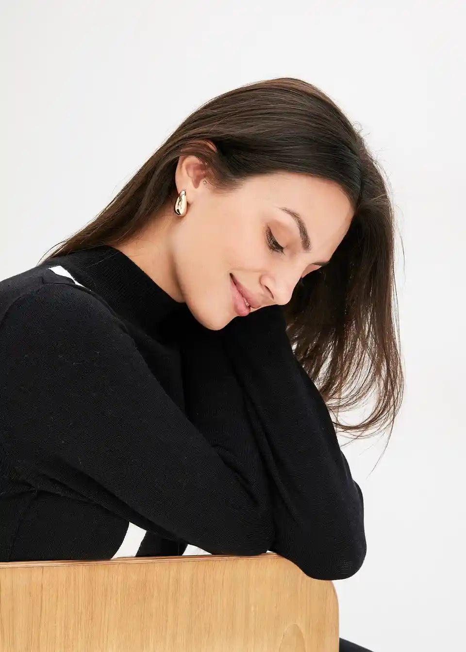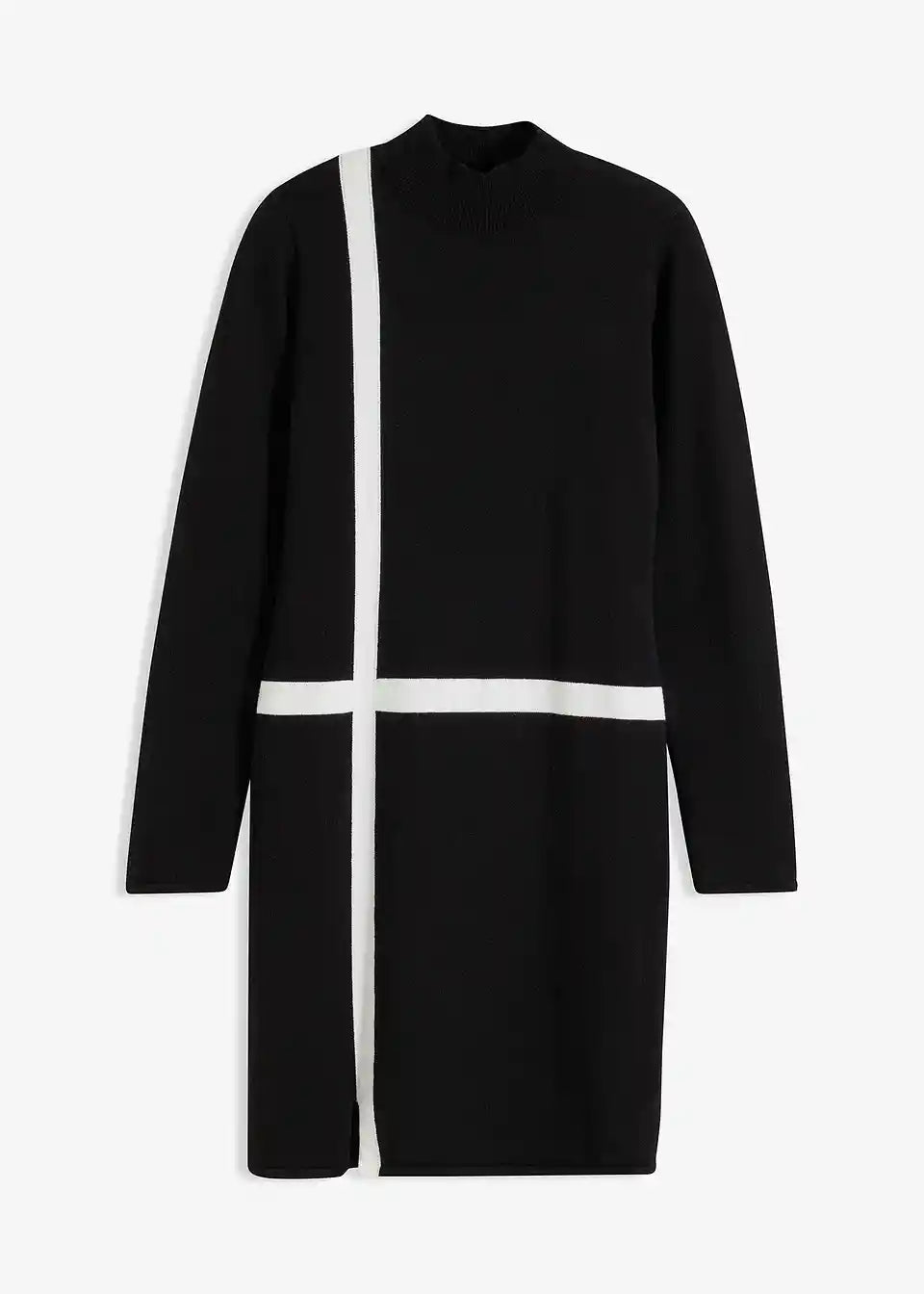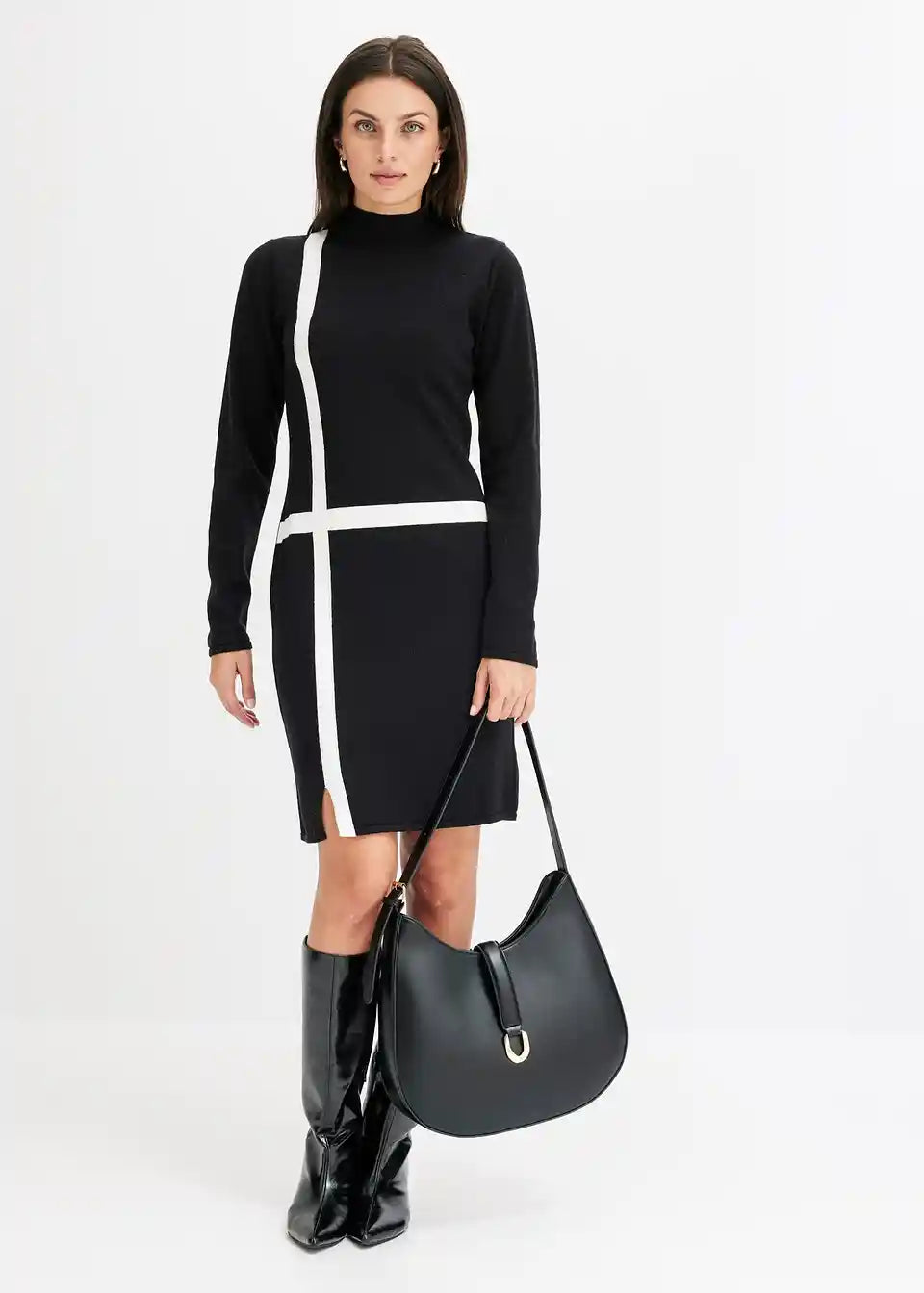 Moderna i ženstvena: Pletena haljina s visokim ovratnikom i prugastim uzorkom