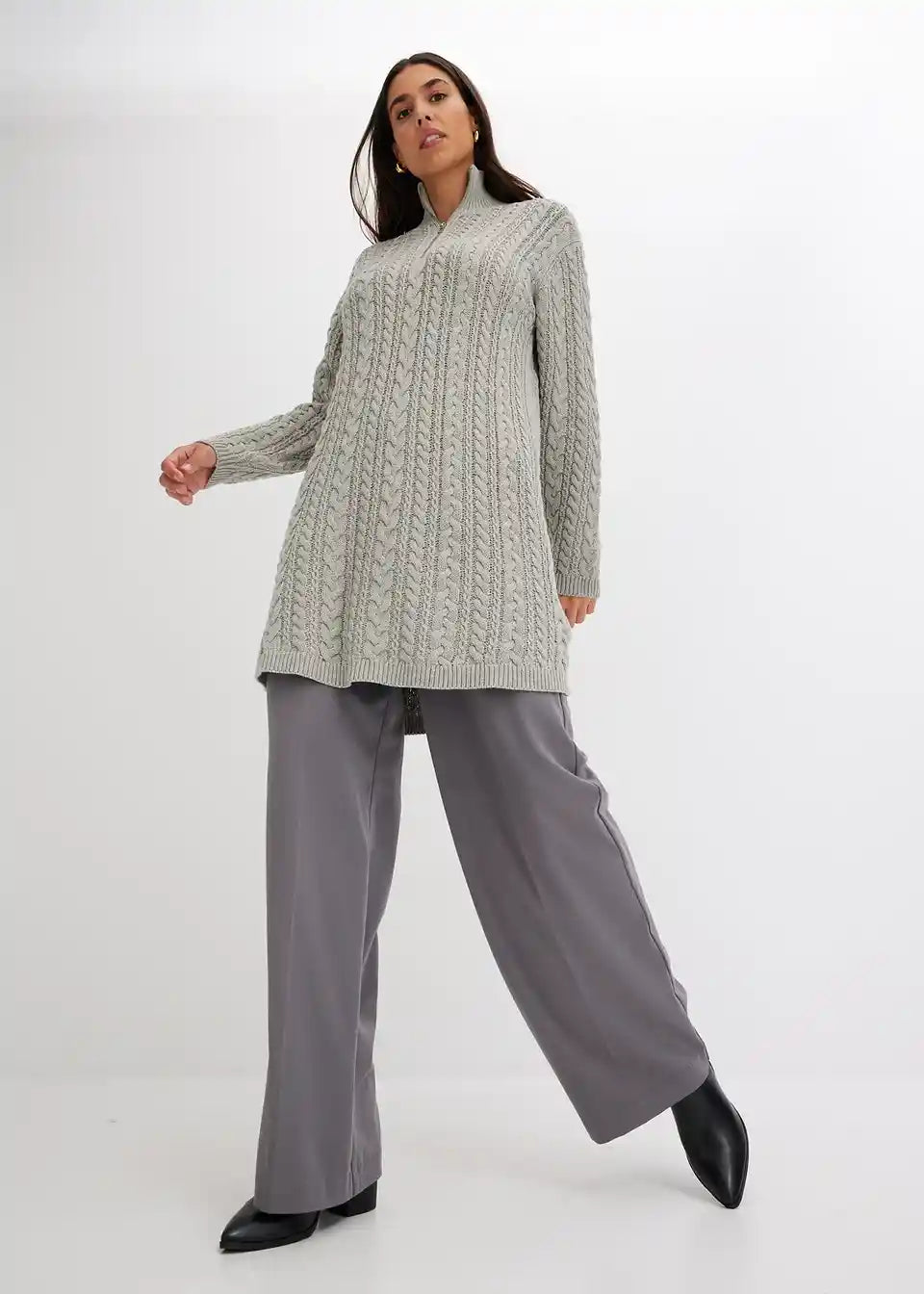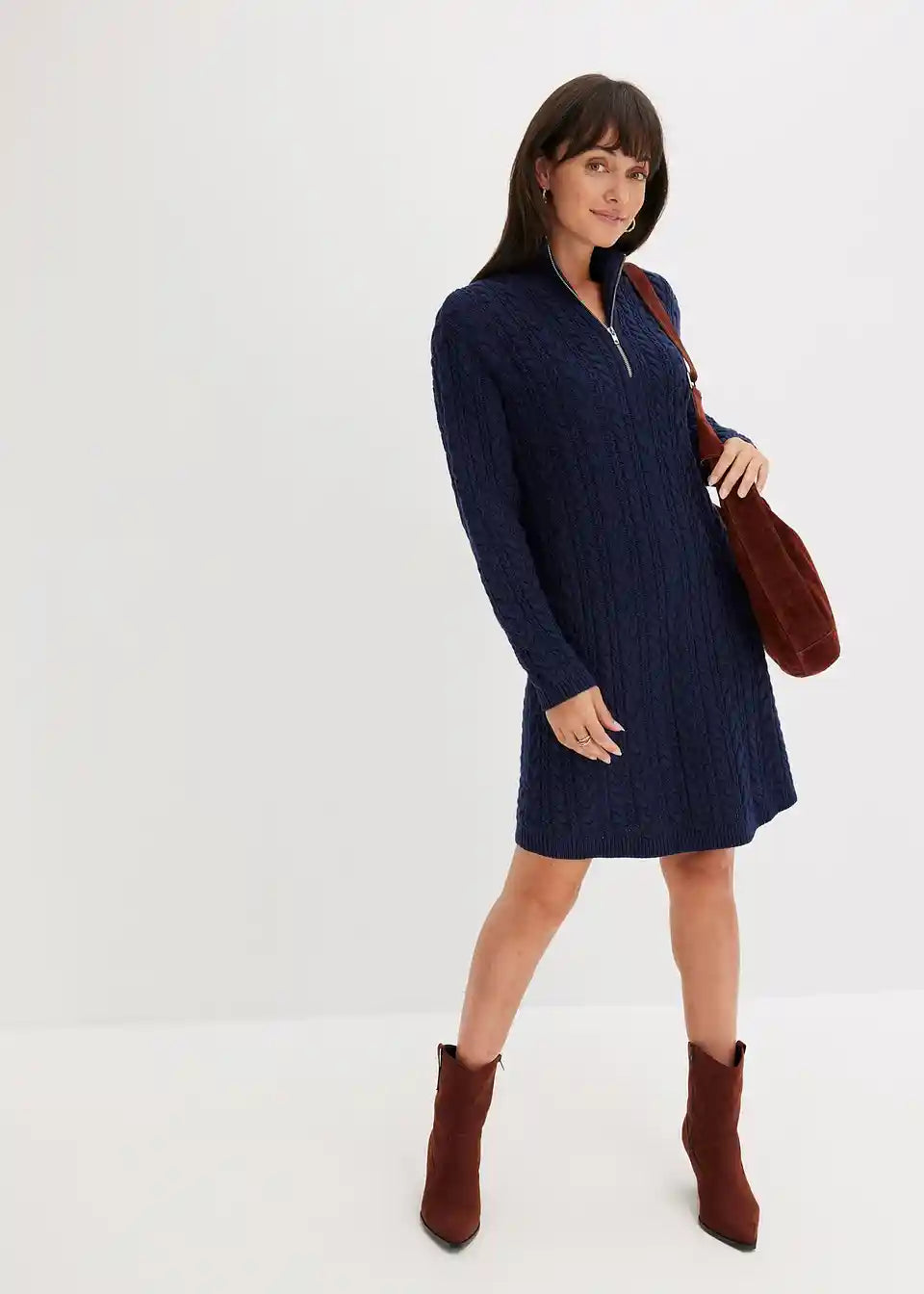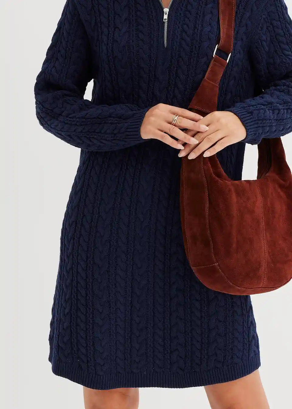 Ležerna pletena haljina sa uzorkom pletenica