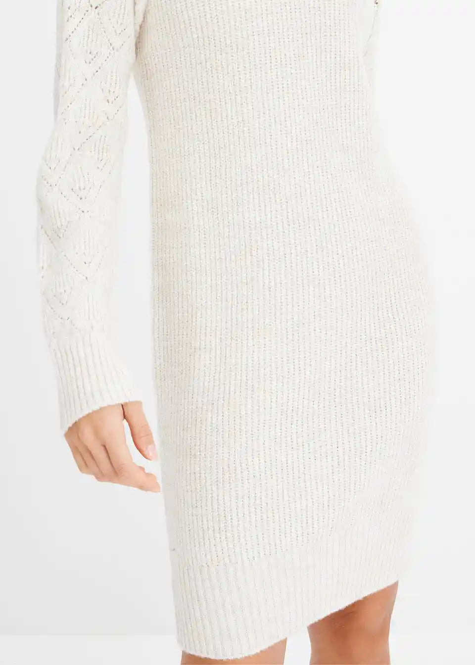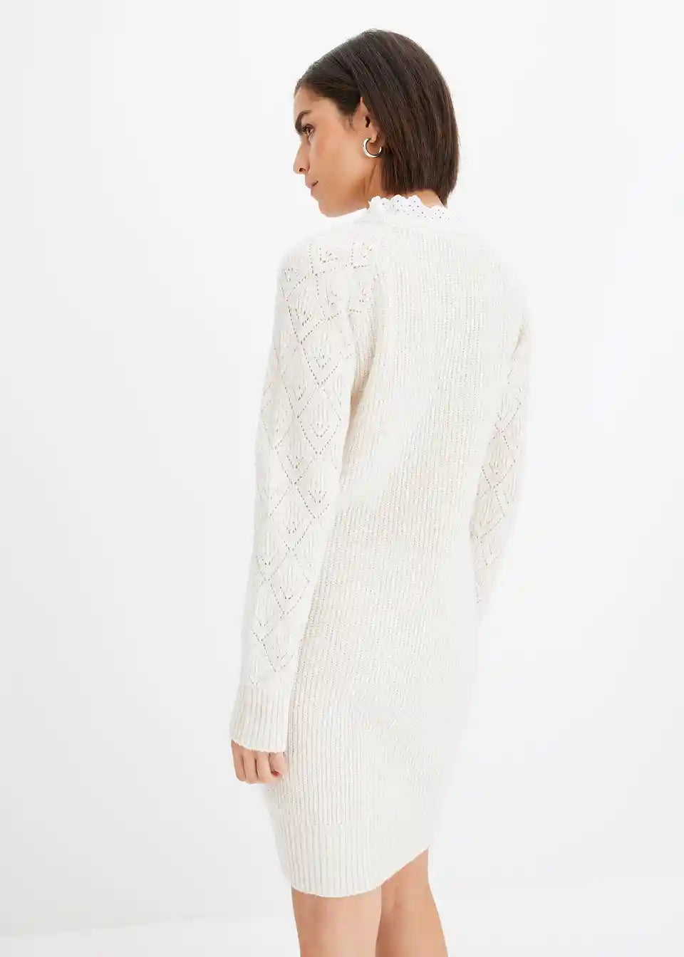 ženstvena pletena haljina s dekorativnim gumbima