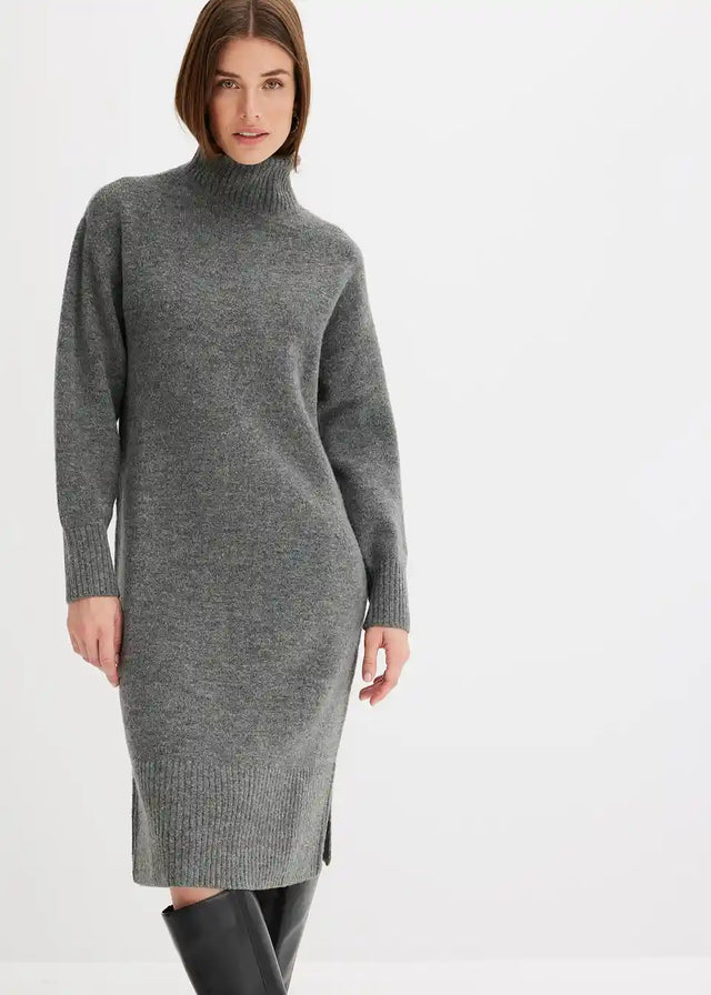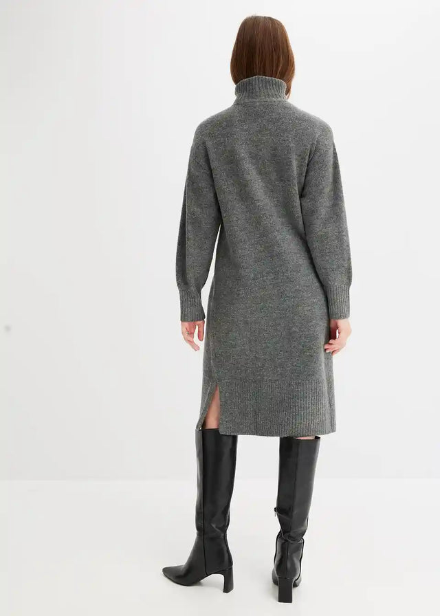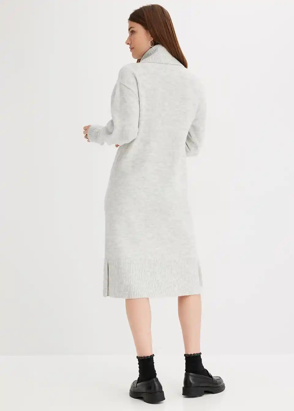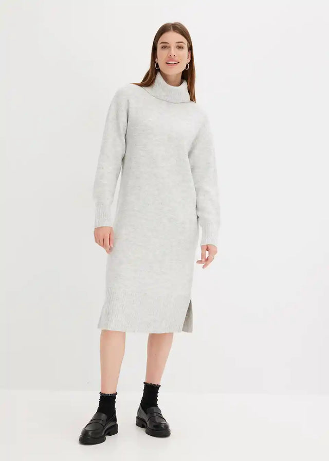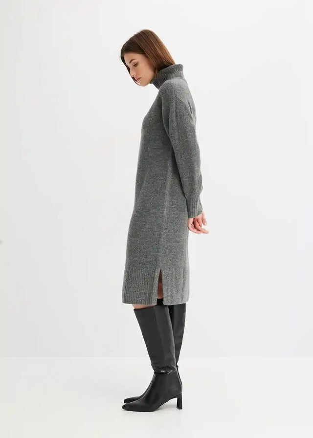 Prekrasna pletena haljina midi dužine s dolčevitom i prorezom