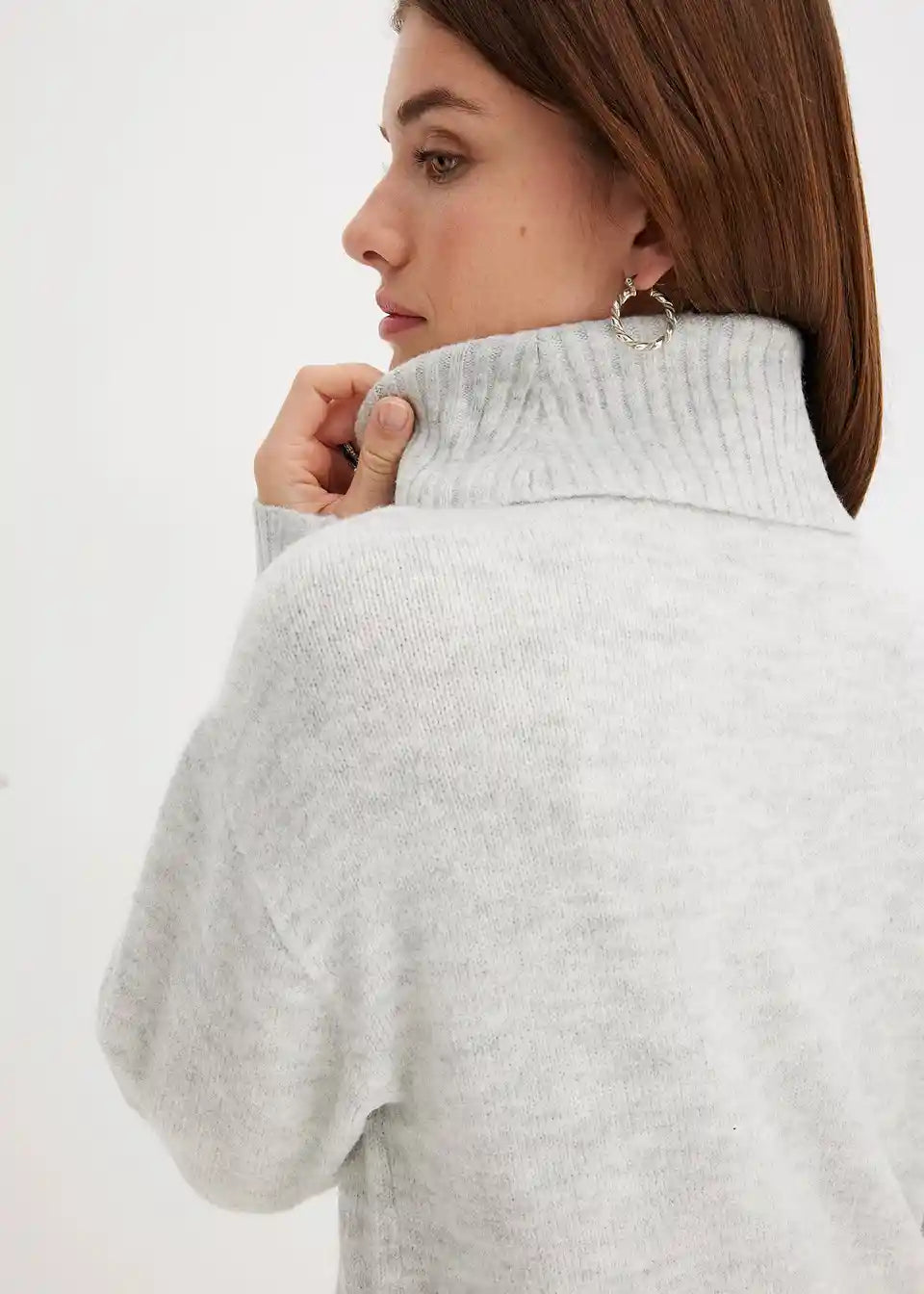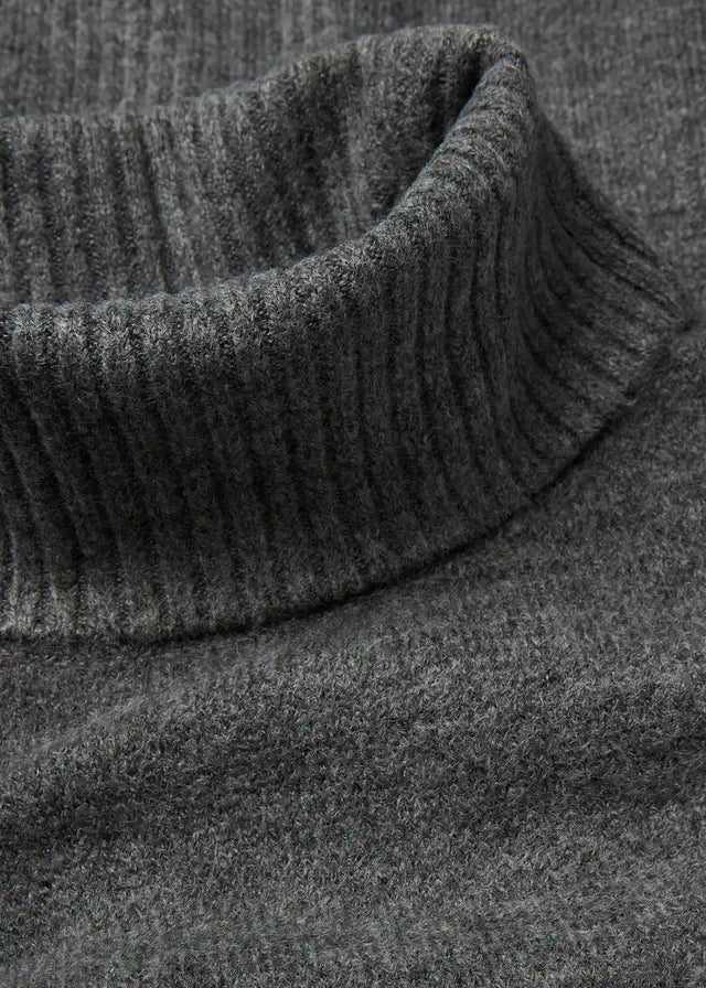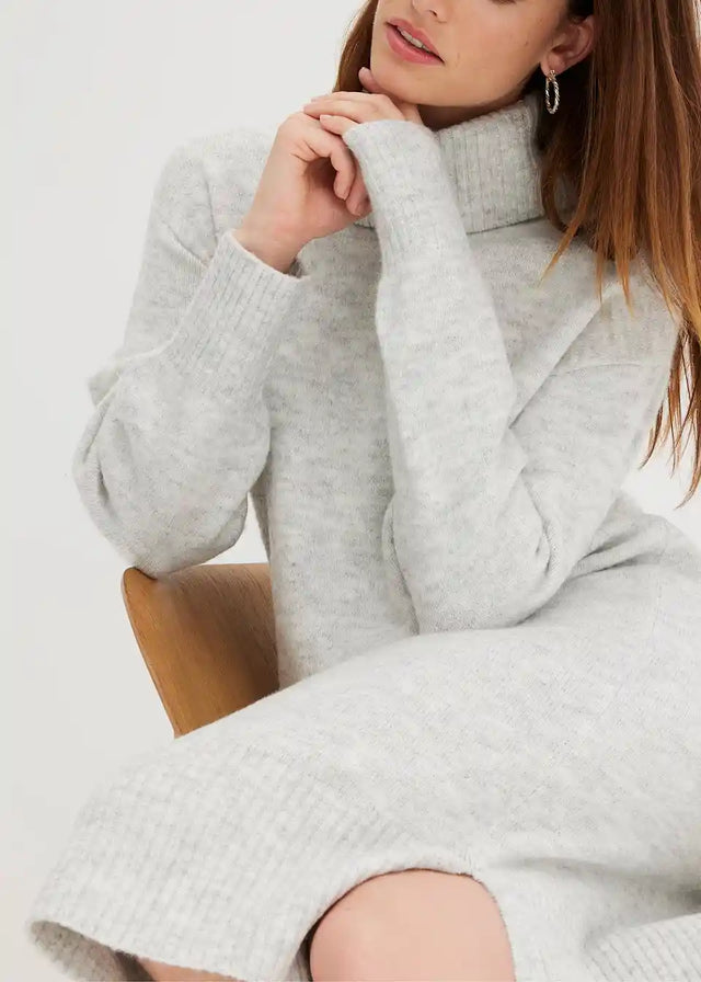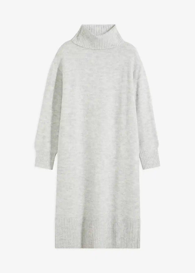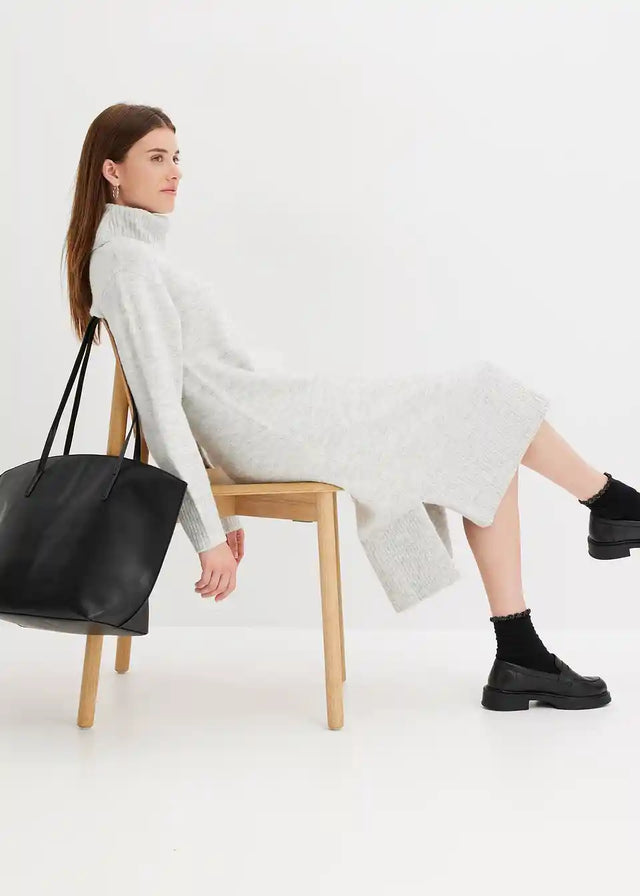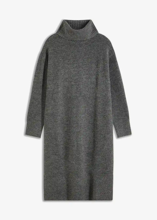 Prekrasna pletena haljina midi dužine s dolčevitom i prorezom
