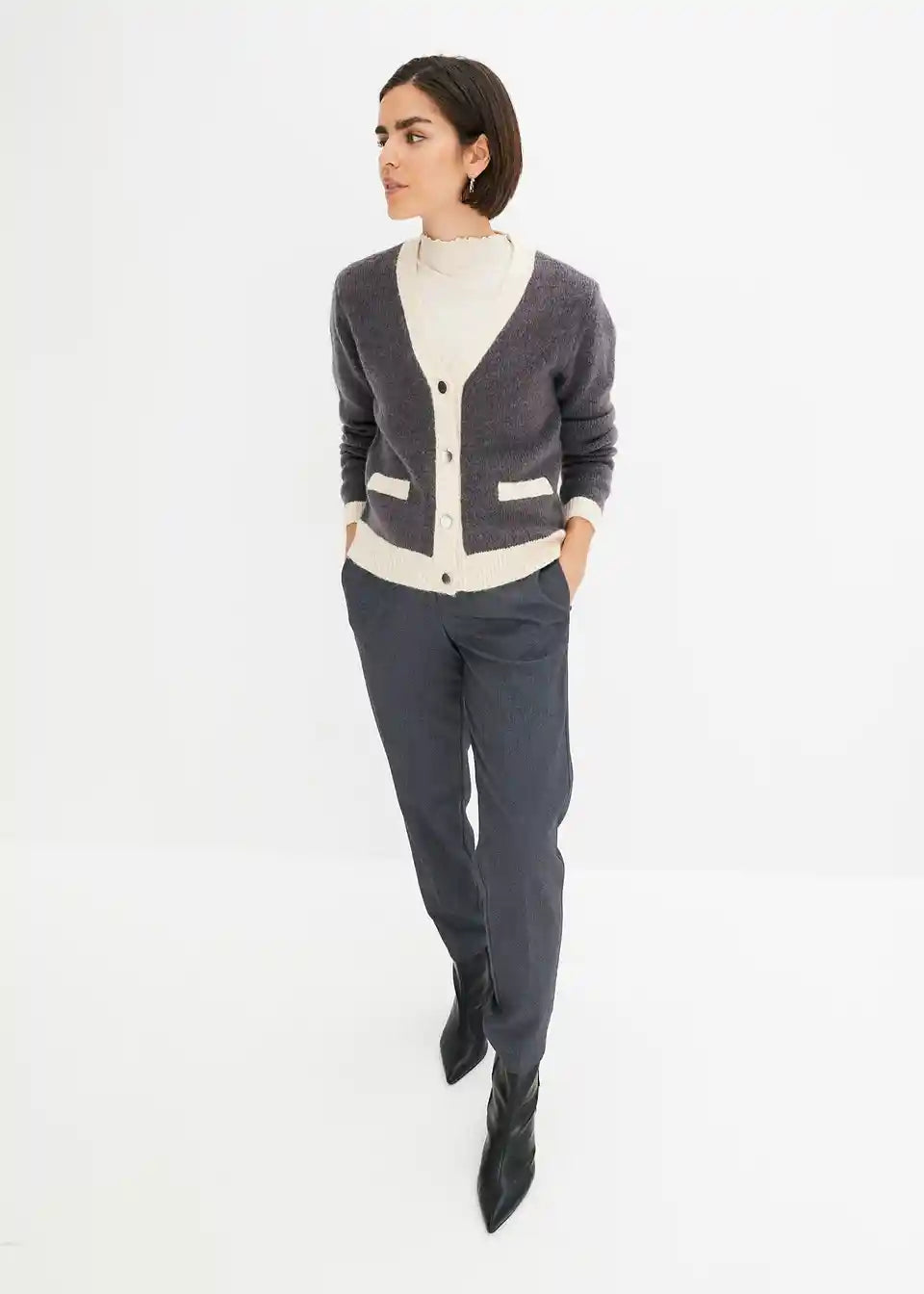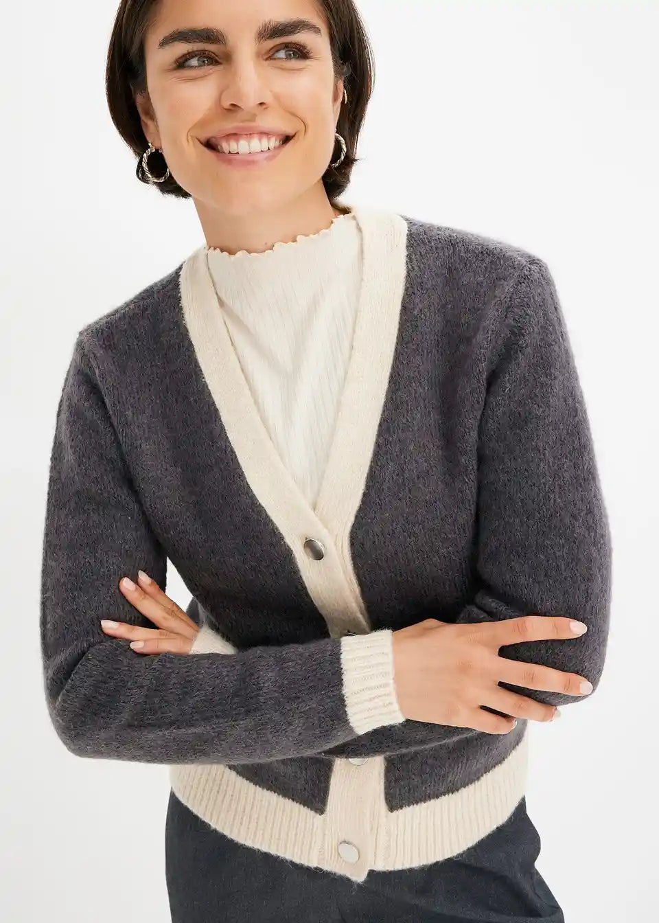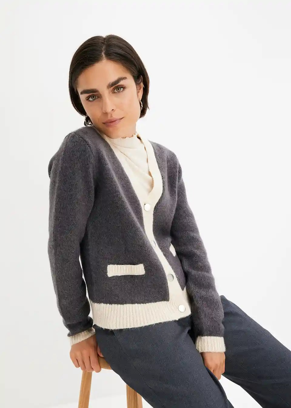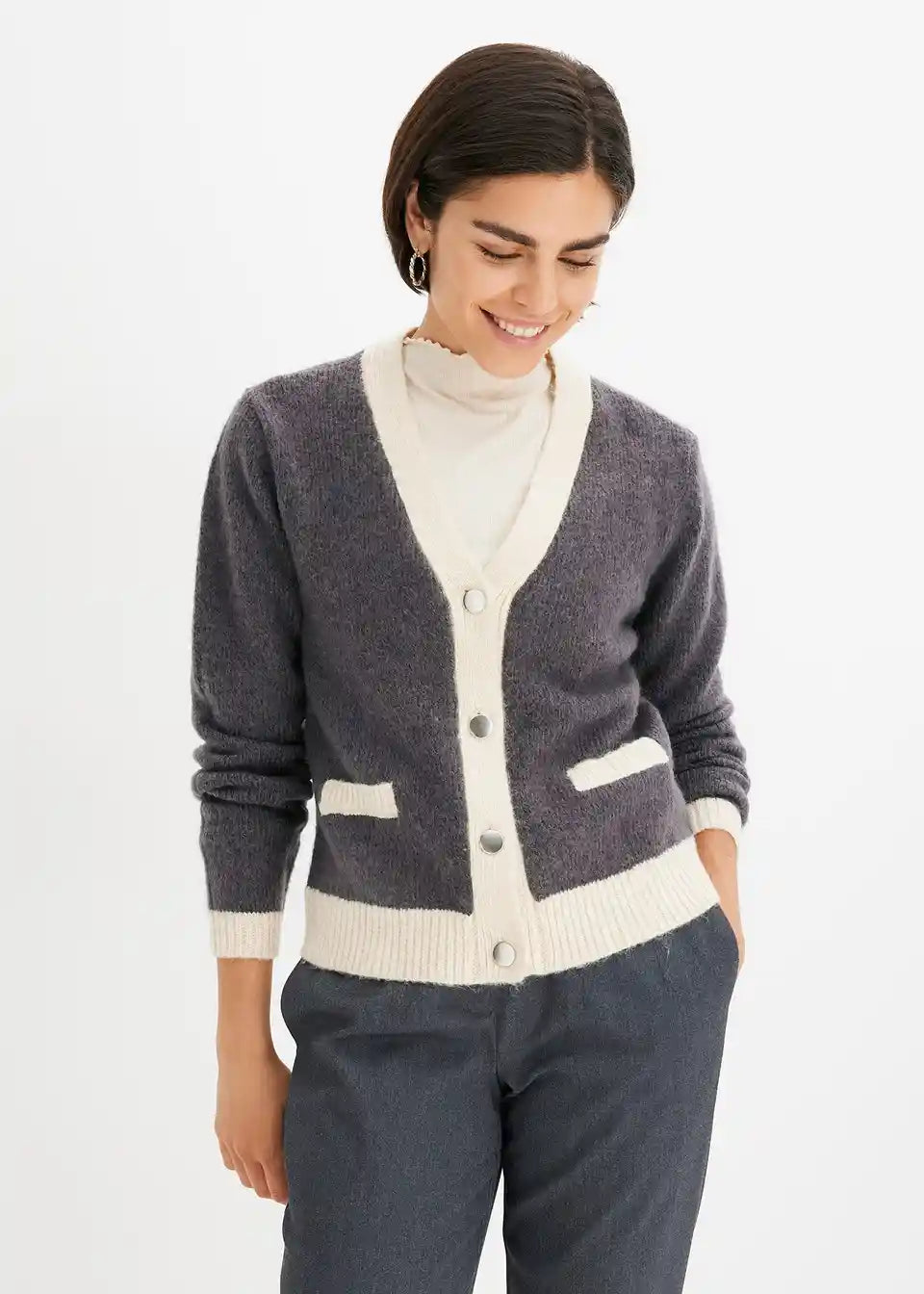moderna pletena jakna s kopčanjem sprijeda