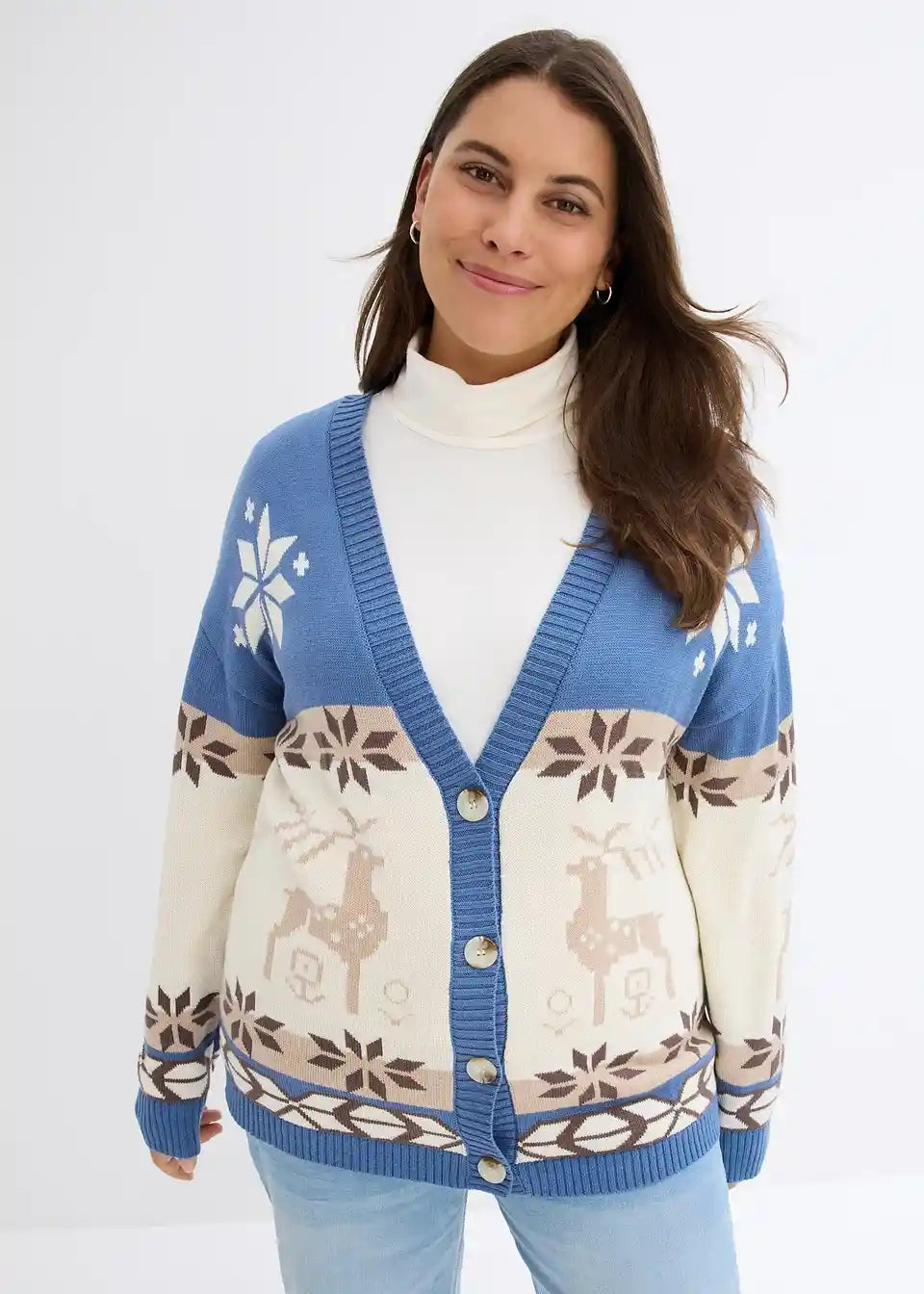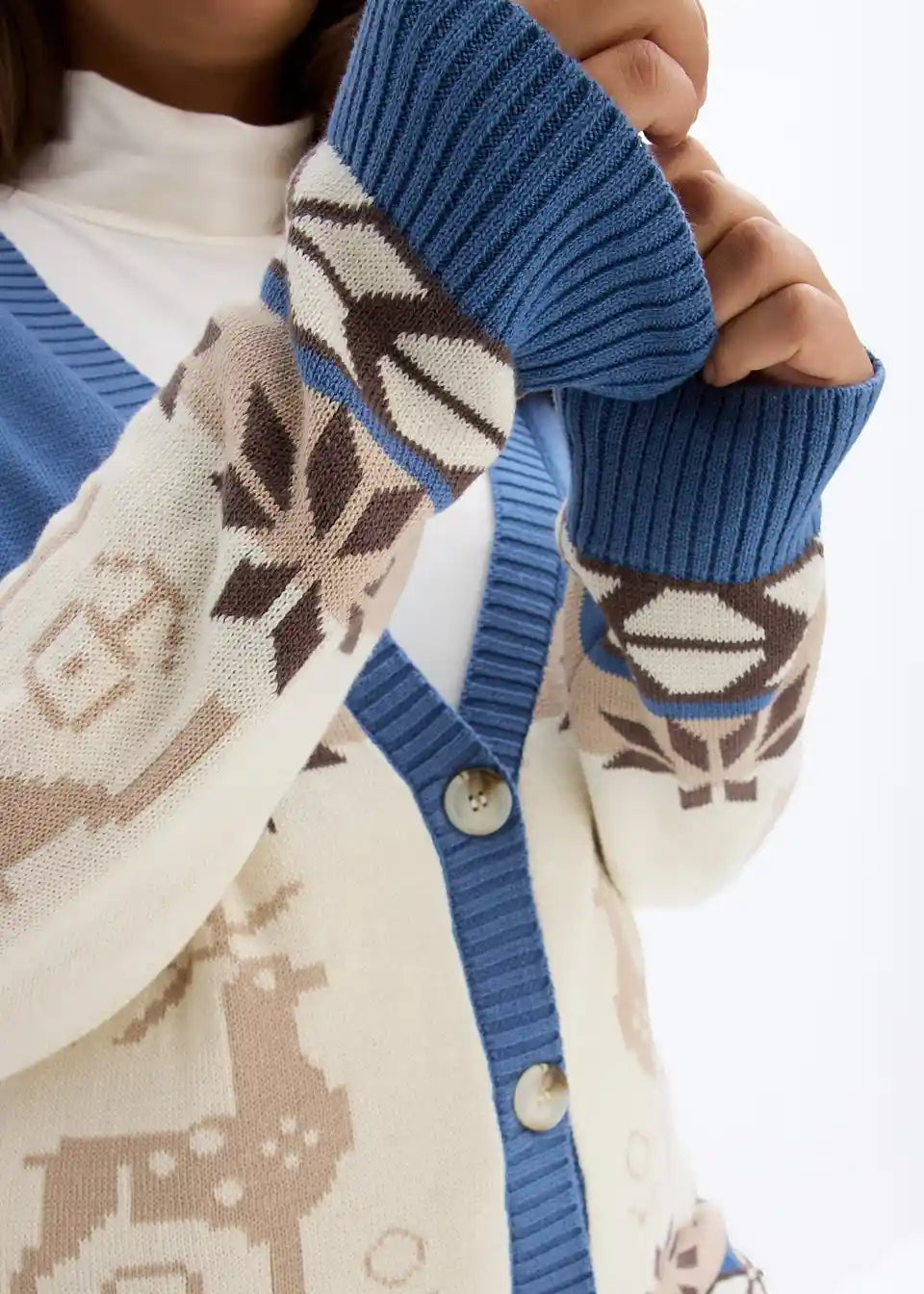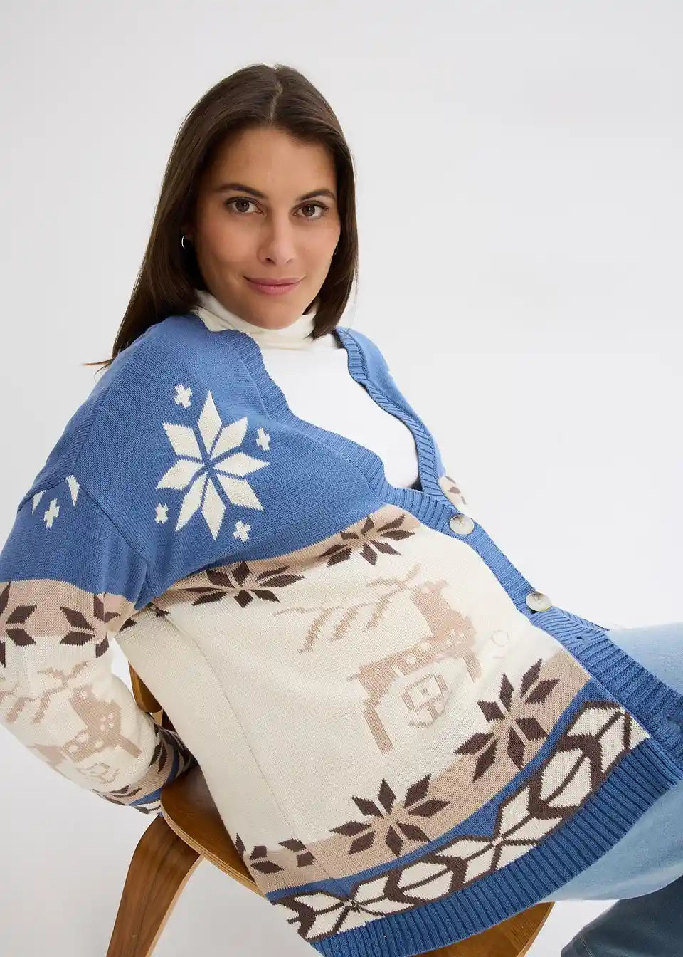 Zimska pletena jakna s kopčanjem i božićnim motivom