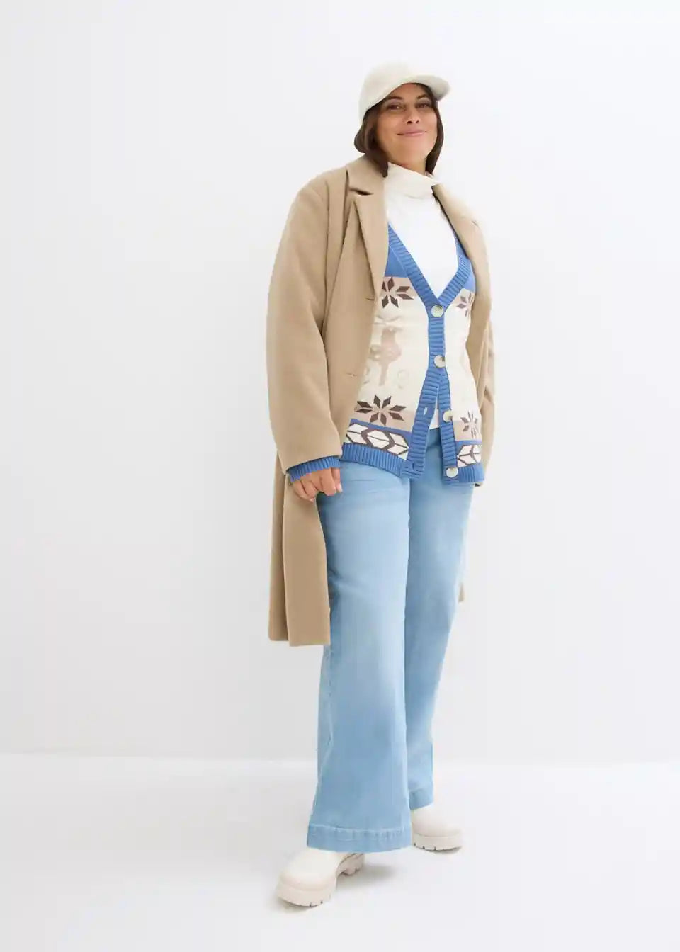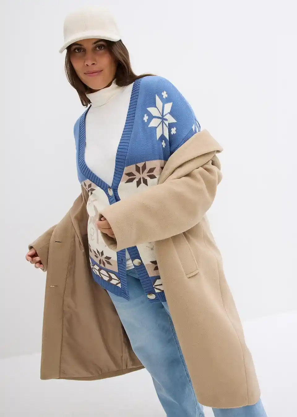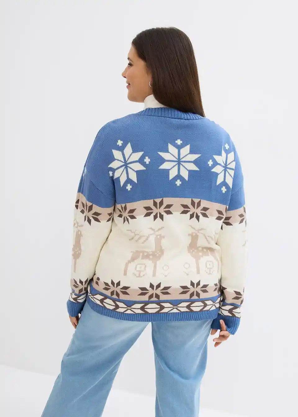 Zimska pletena jakna s kopčanjem i božićnim motivom