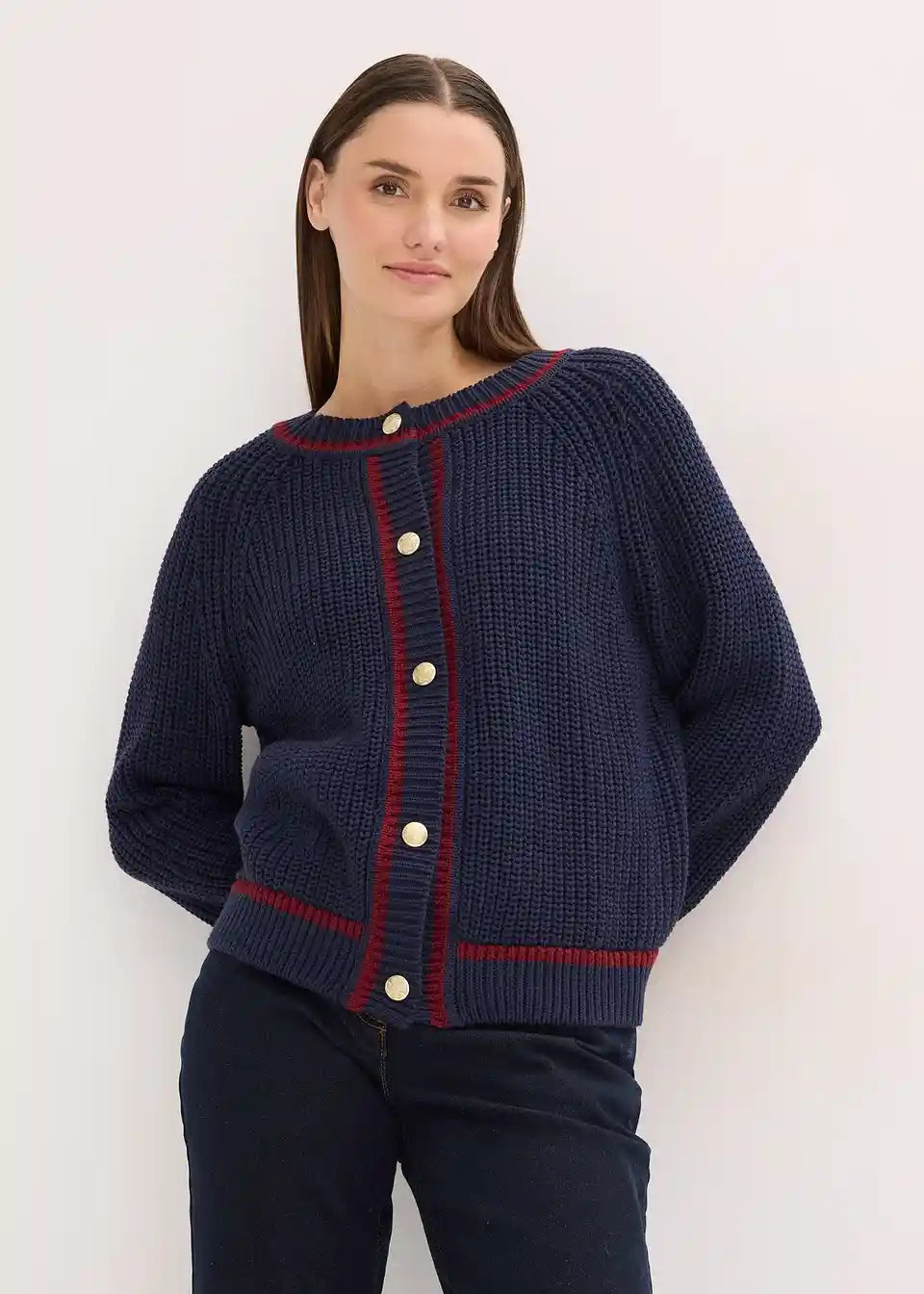 Pletena vesta s kontrastnim prugama