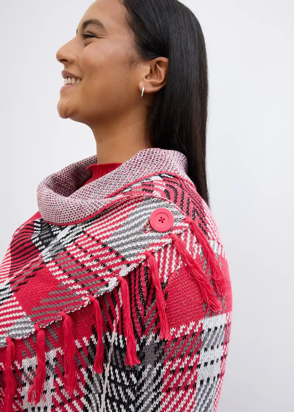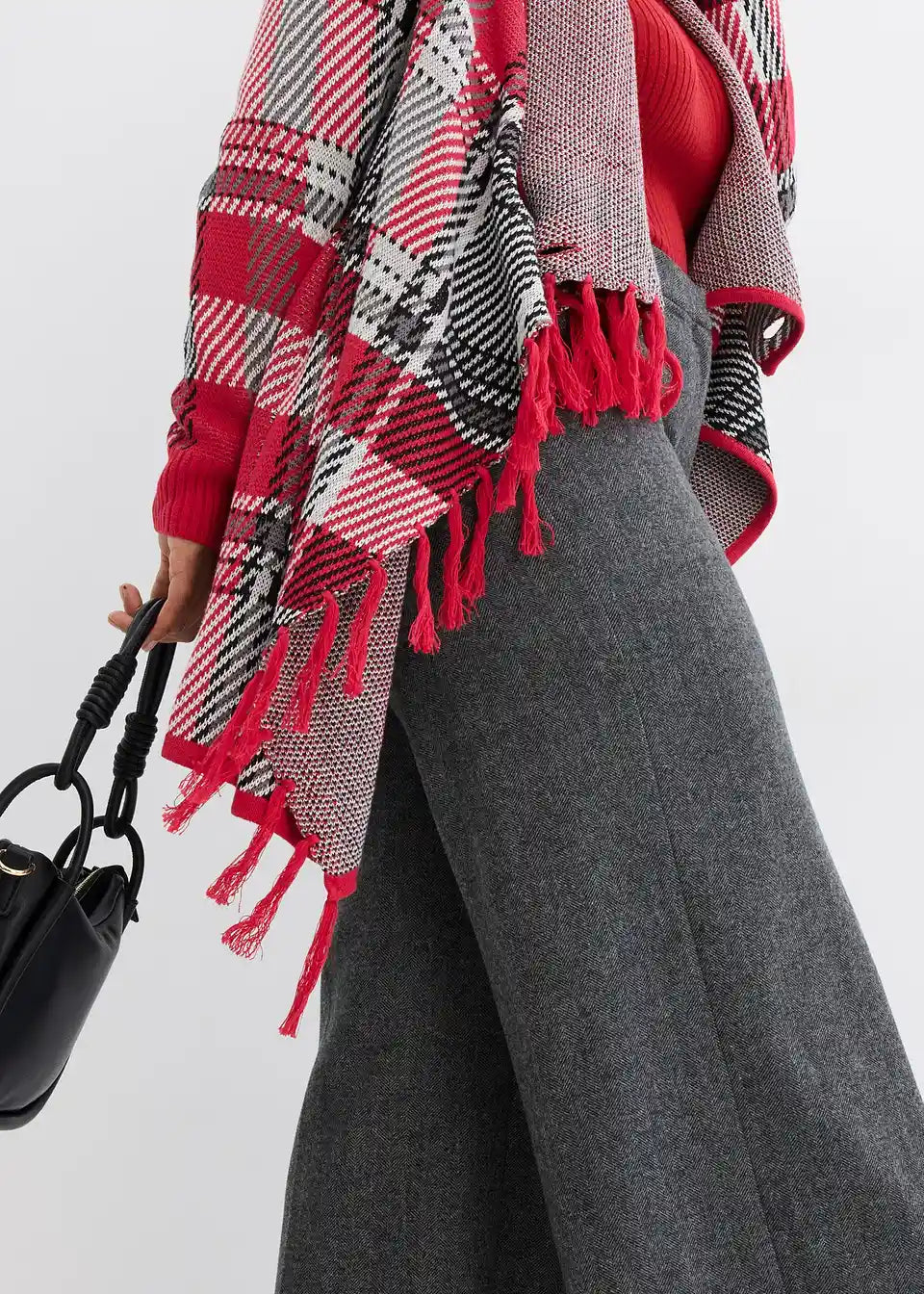 Udobna pletena jakna asimetričnog kroja s resama