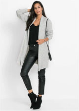 Fino rebrasta pletena jakna sa šal ovratnikom u dugom kroju