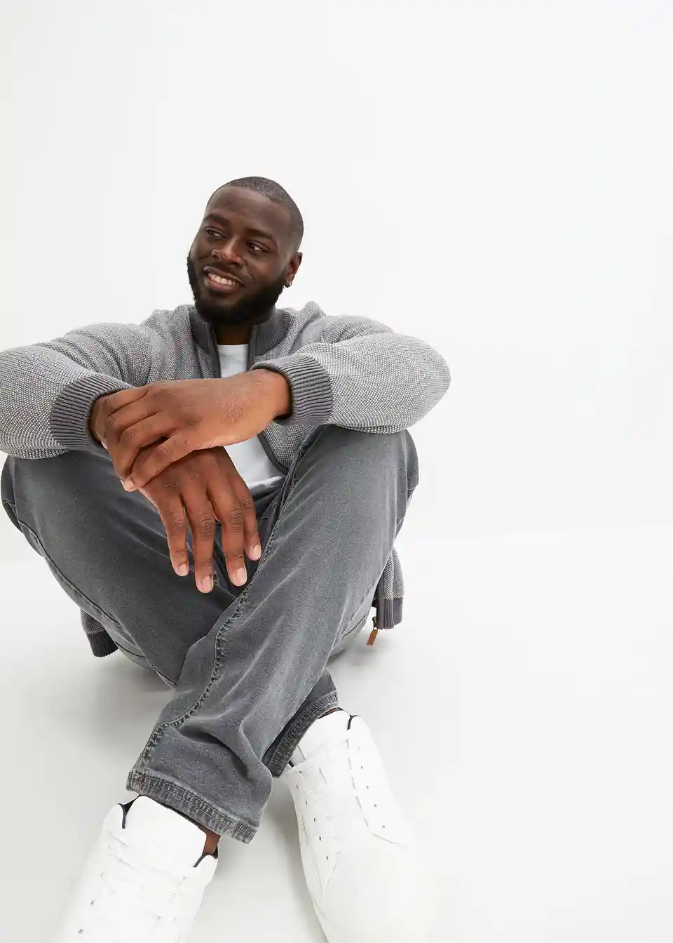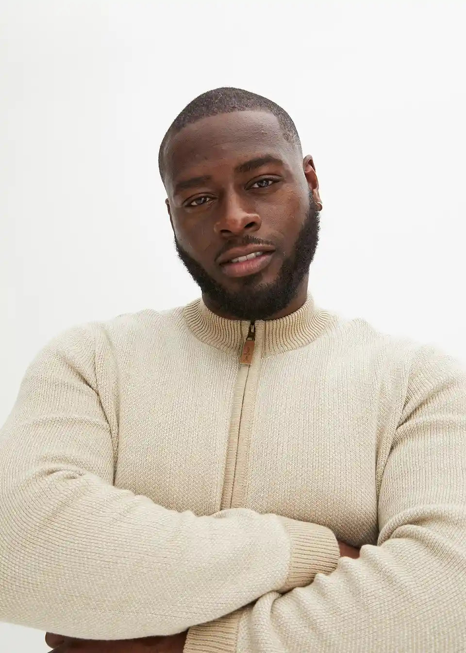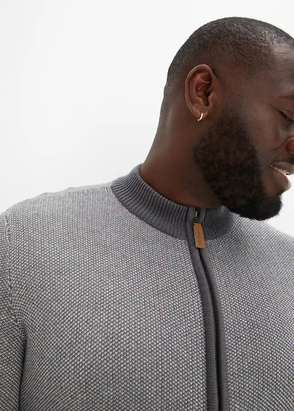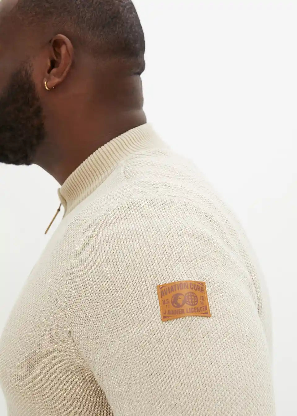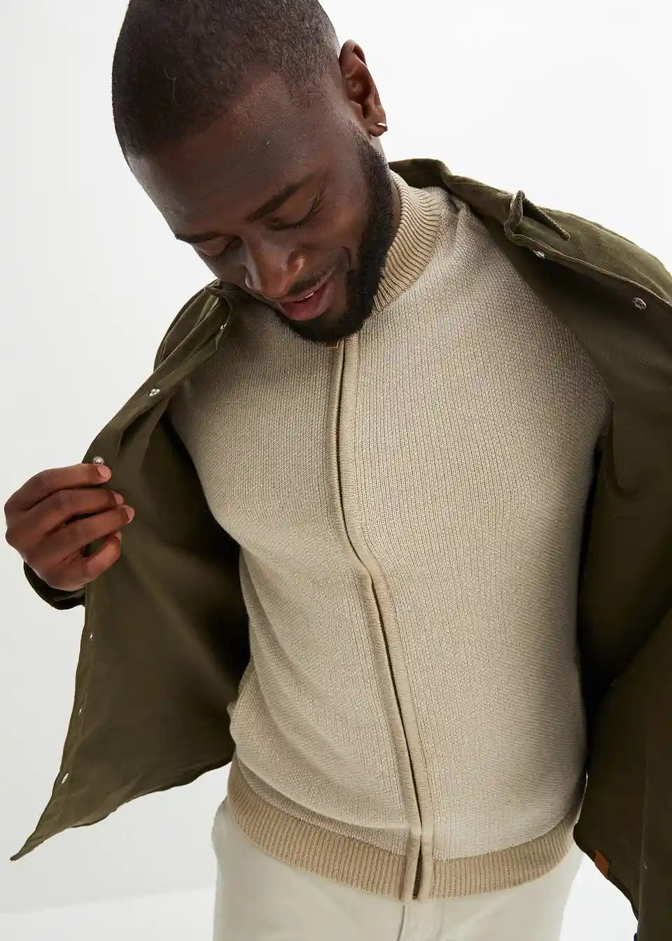 Sa stajaćim ovratnikom i patentnim zatvaračem.