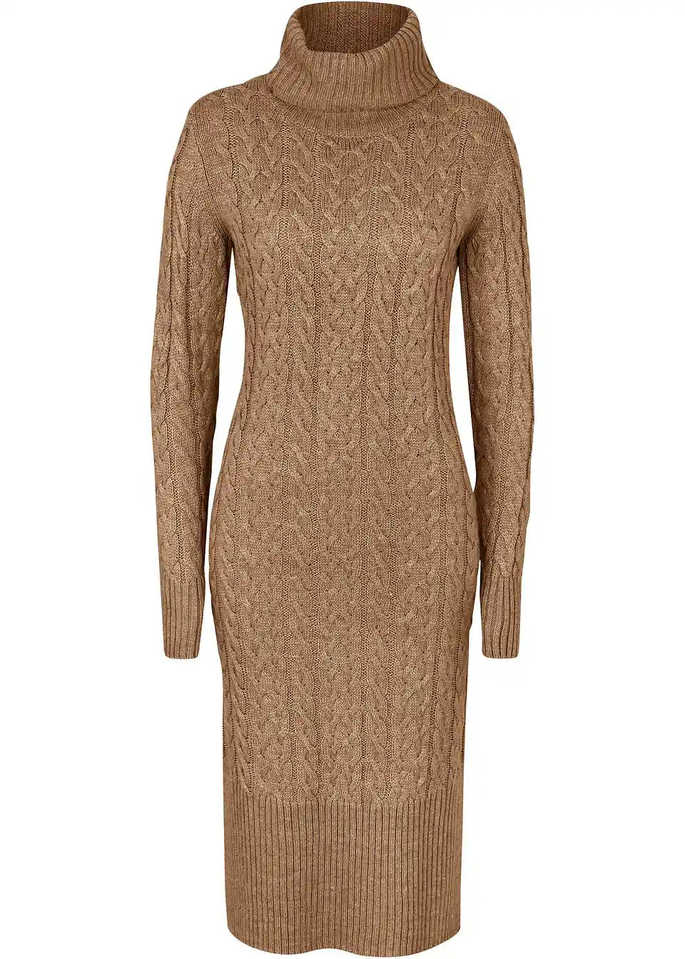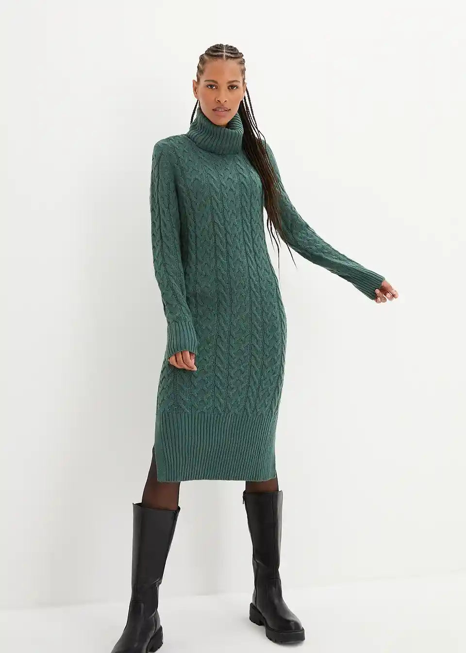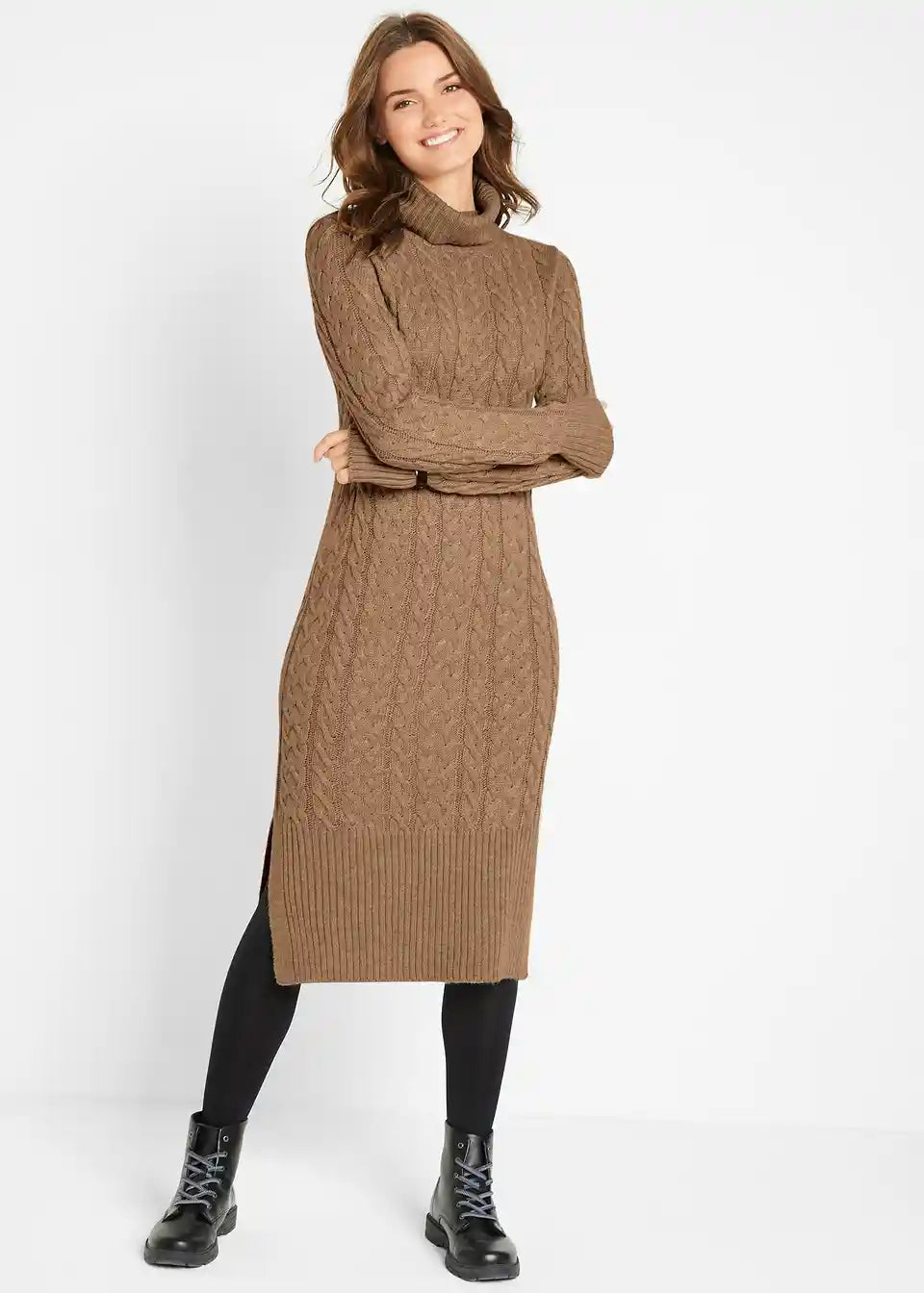Udobna haljina s rolkom od pletiva sa strukturiranim uzorkom, bočni prorez na rubu