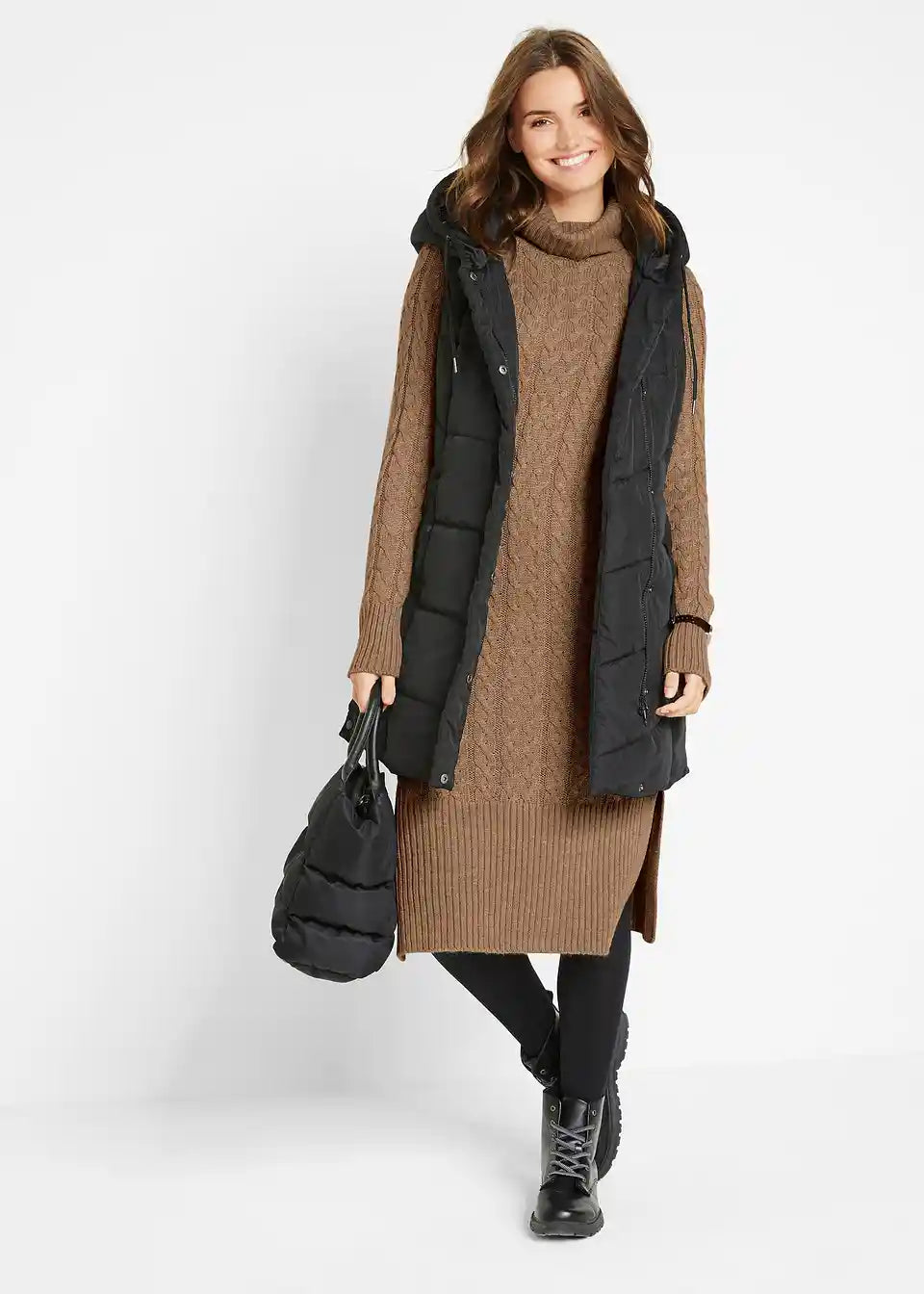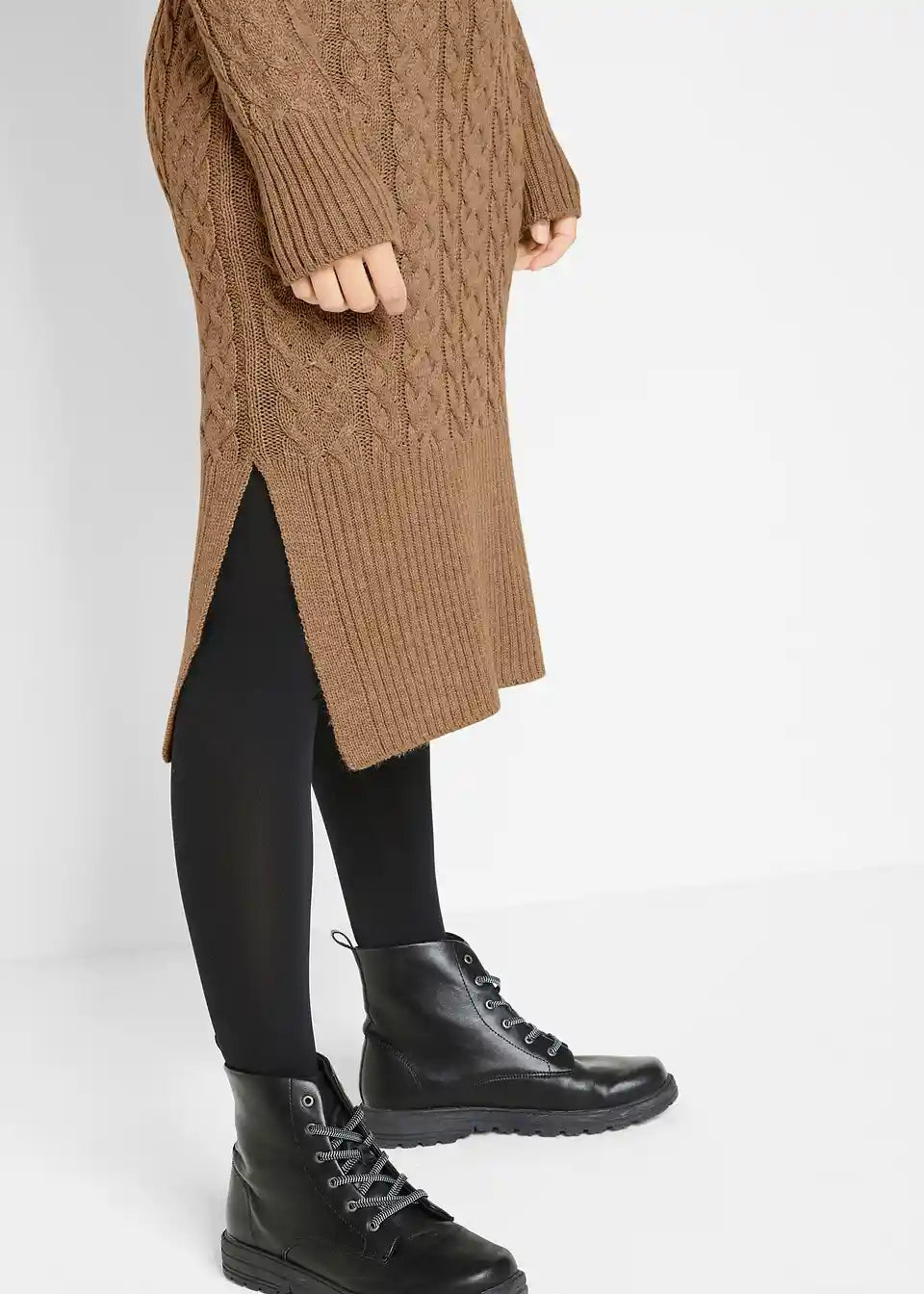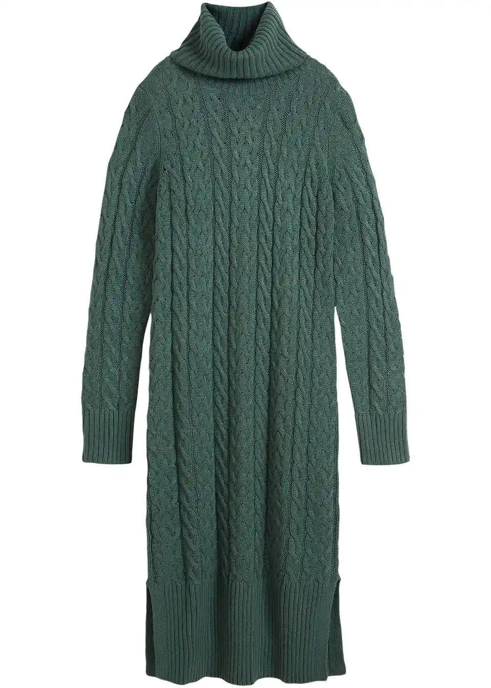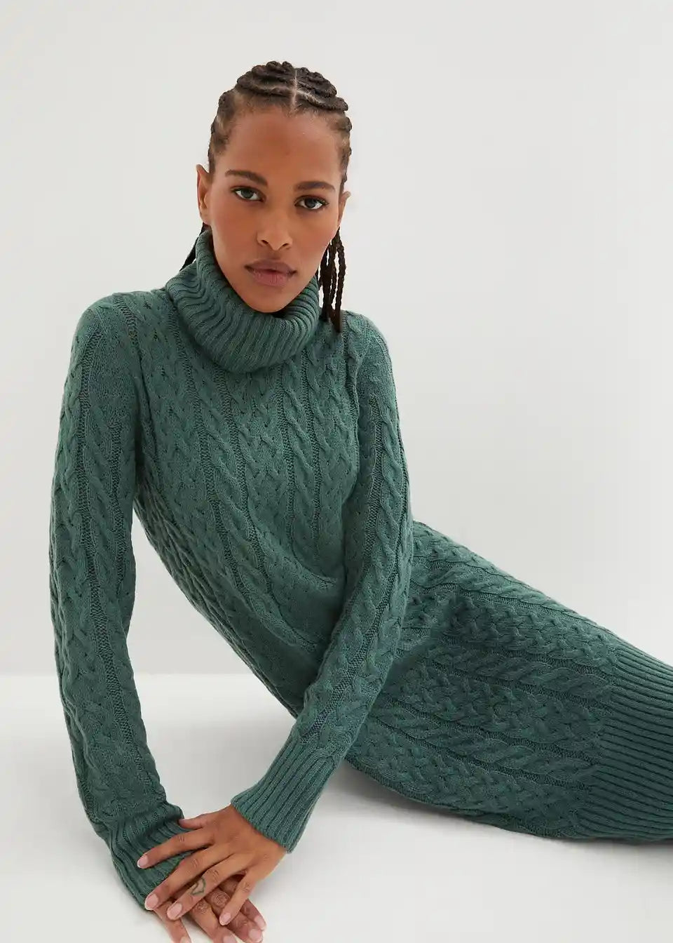 Udobna haljina s rolkom od pletiva sa strukturiranim uzorkom, bočni prorez na rubu