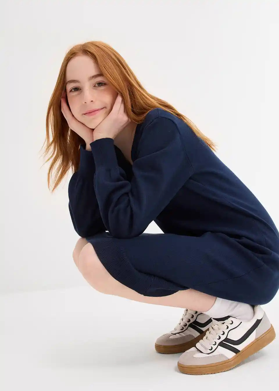 Jesenska pletena haljina za djevojčice s modernim balon rukavima
