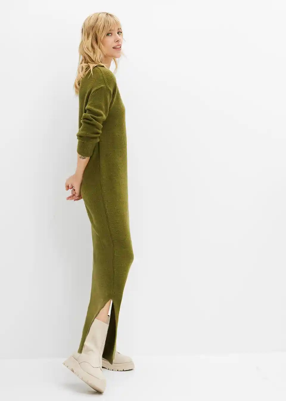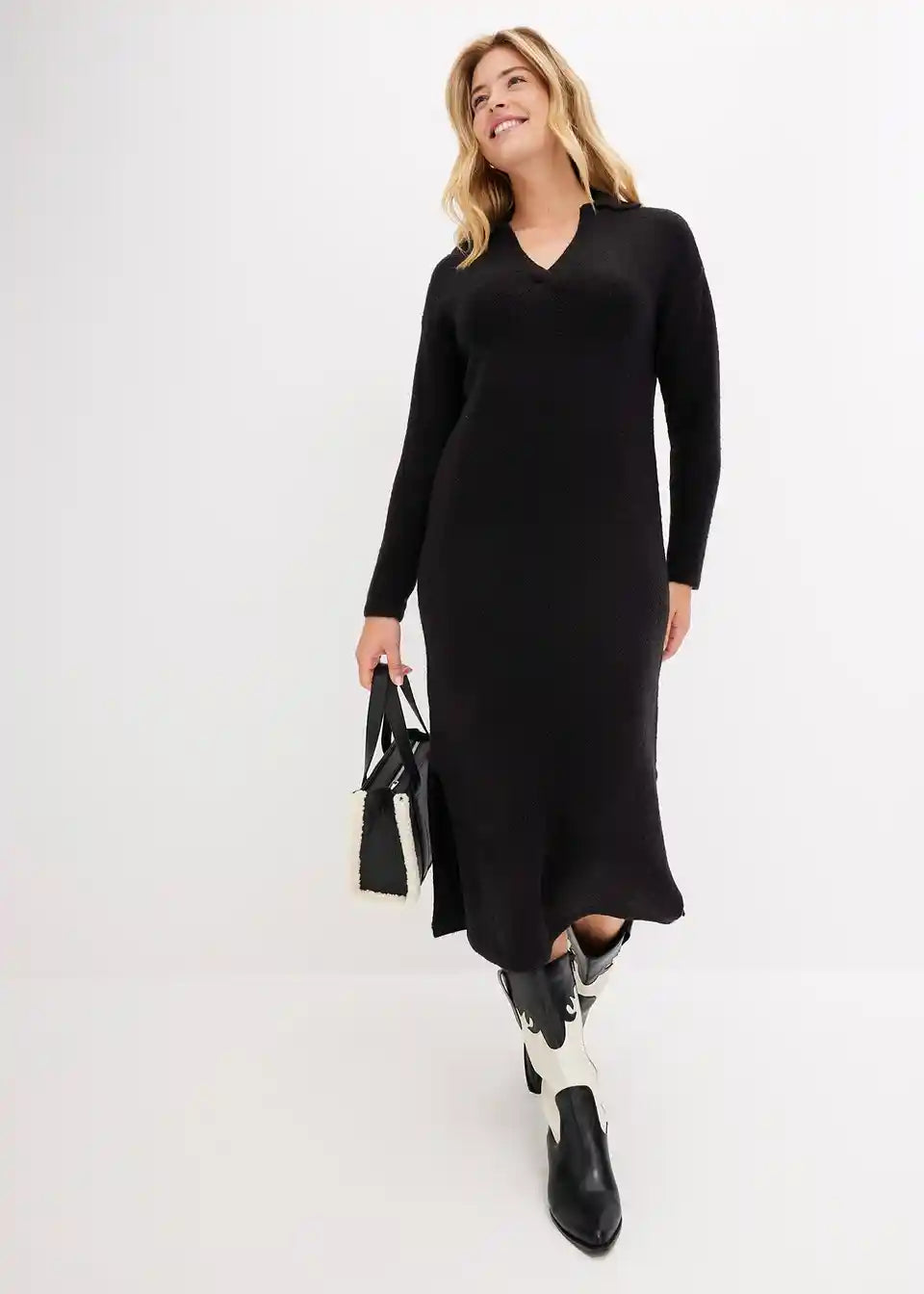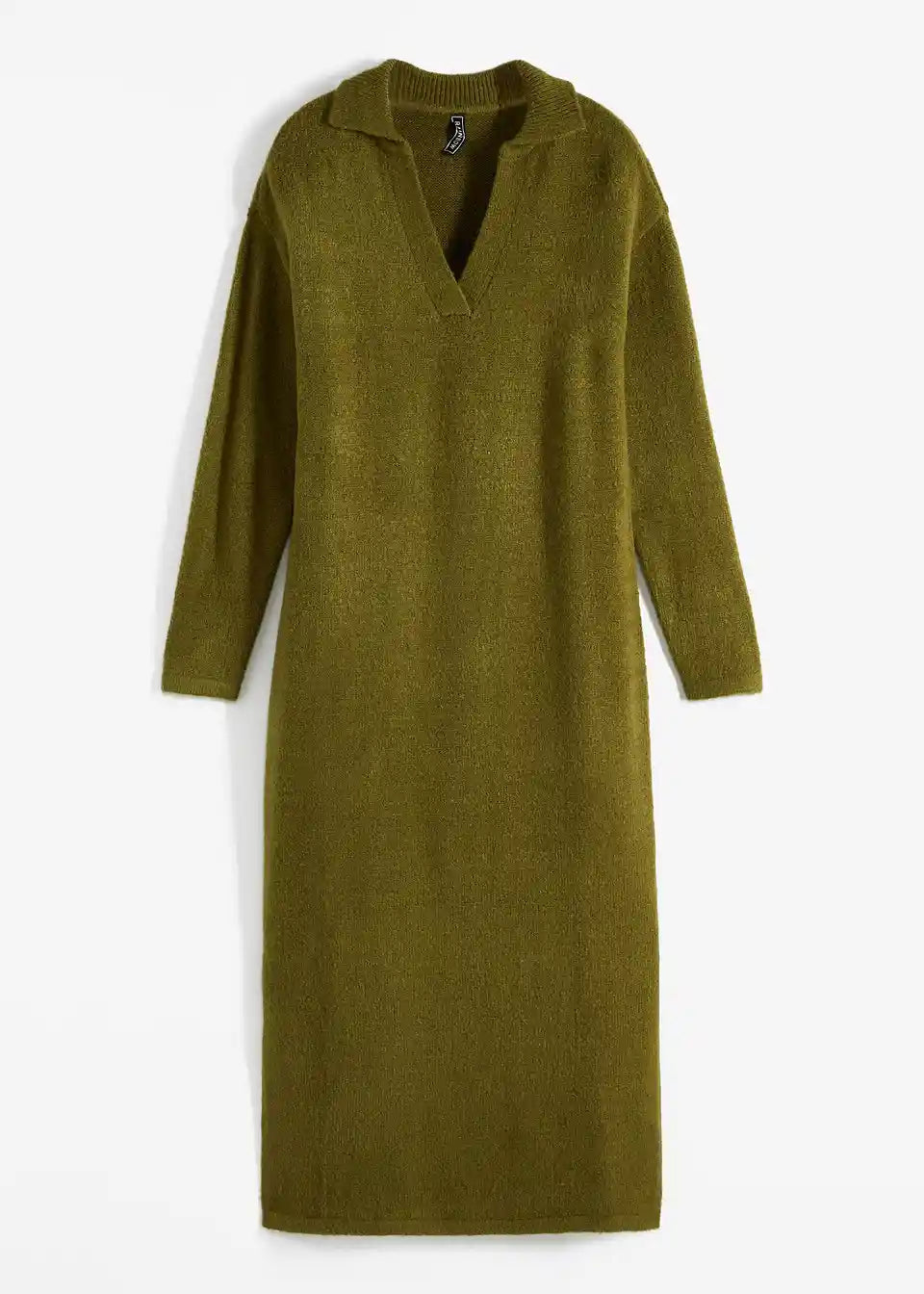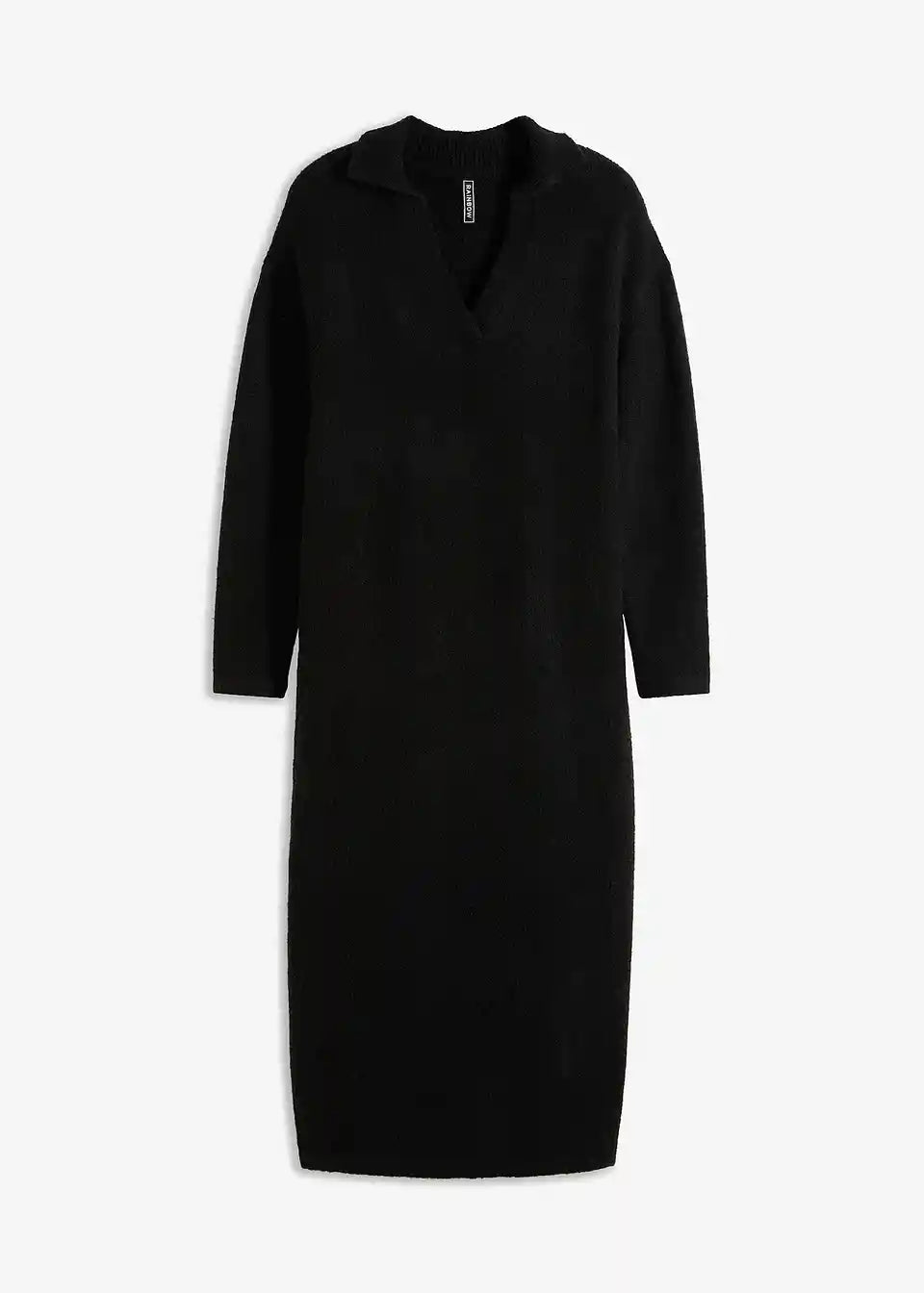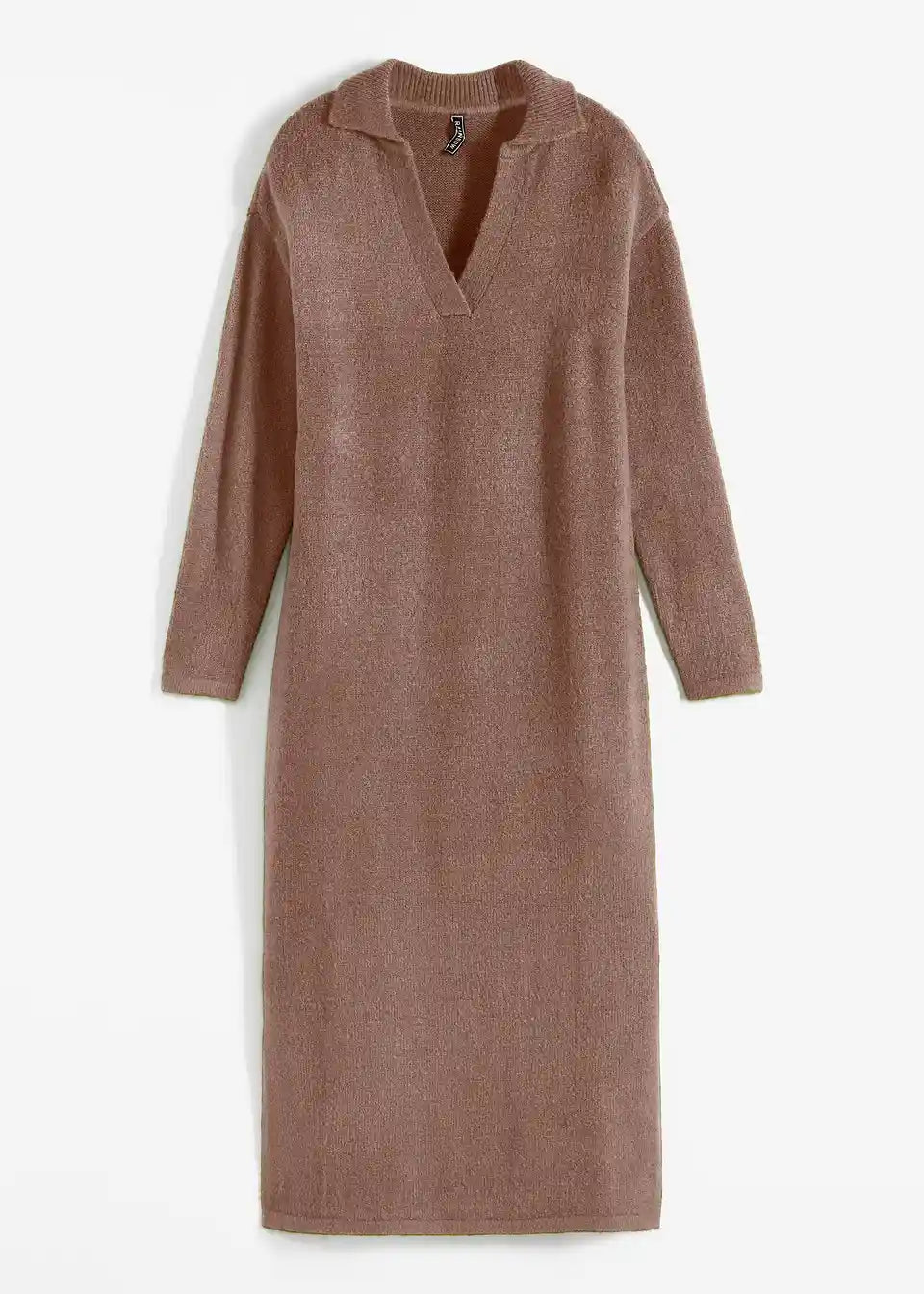 Duga pletena haljina s kragnom na košulju i prorezom na strani
