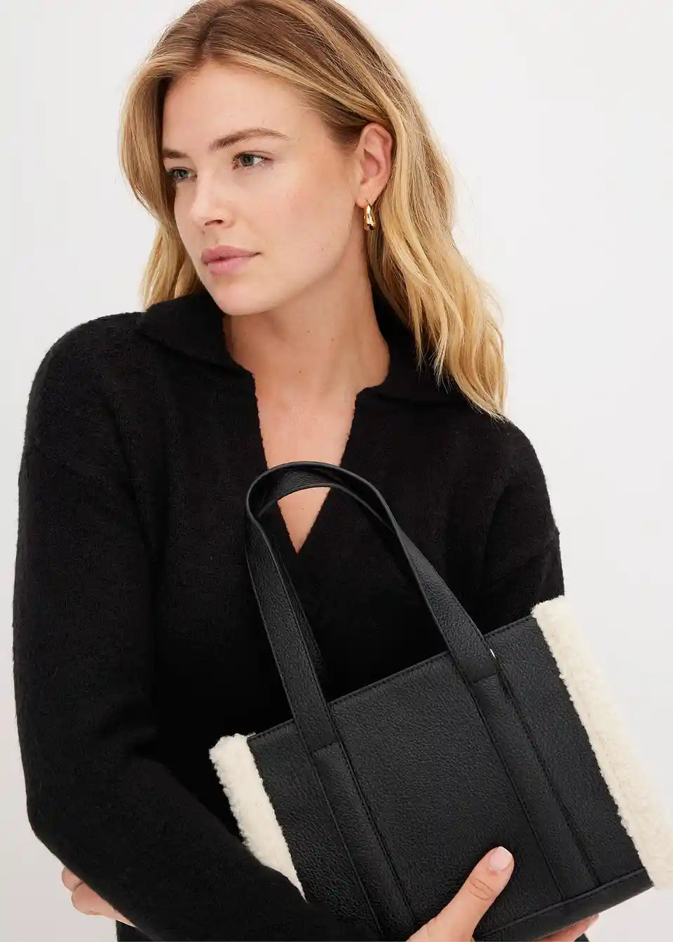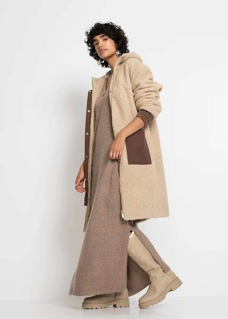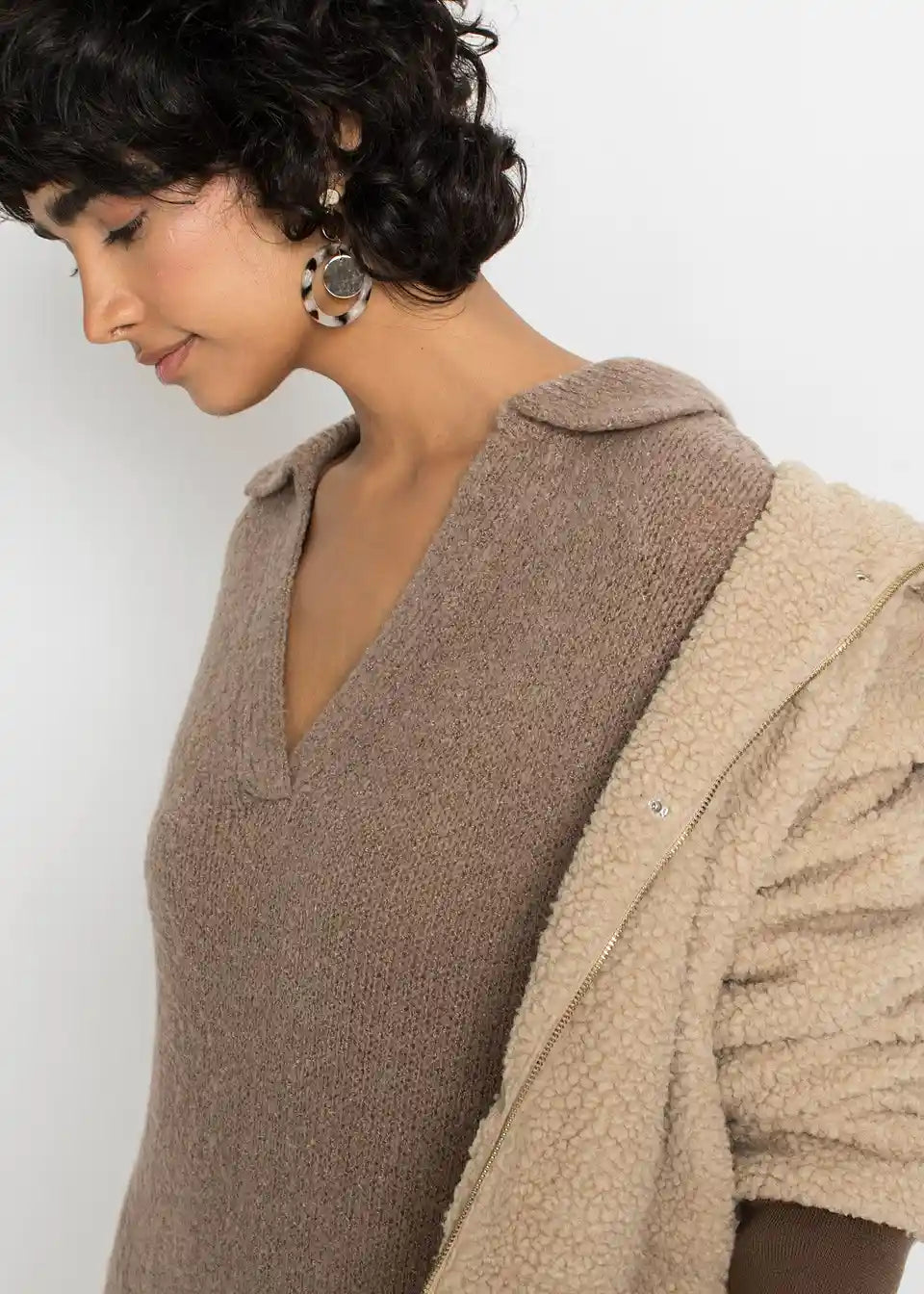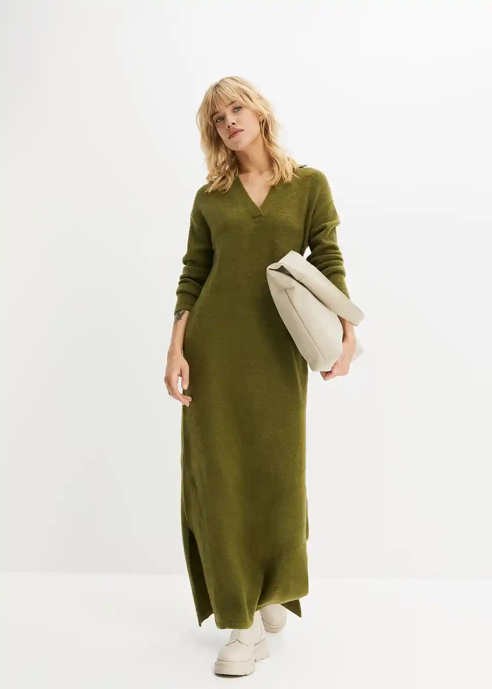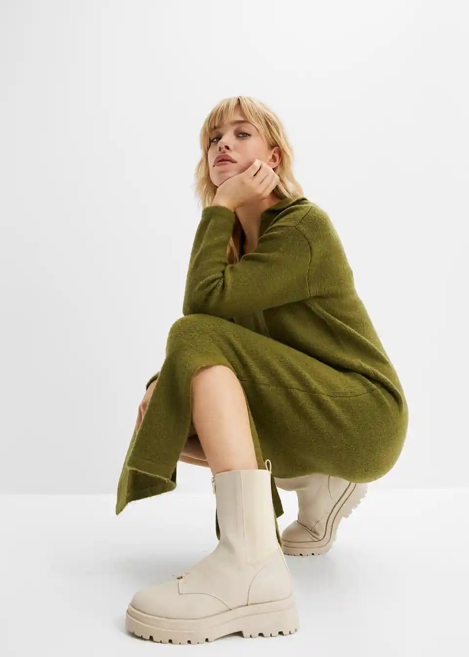 Duga pletena haljina s kragnom na košulju i prorezom na strani