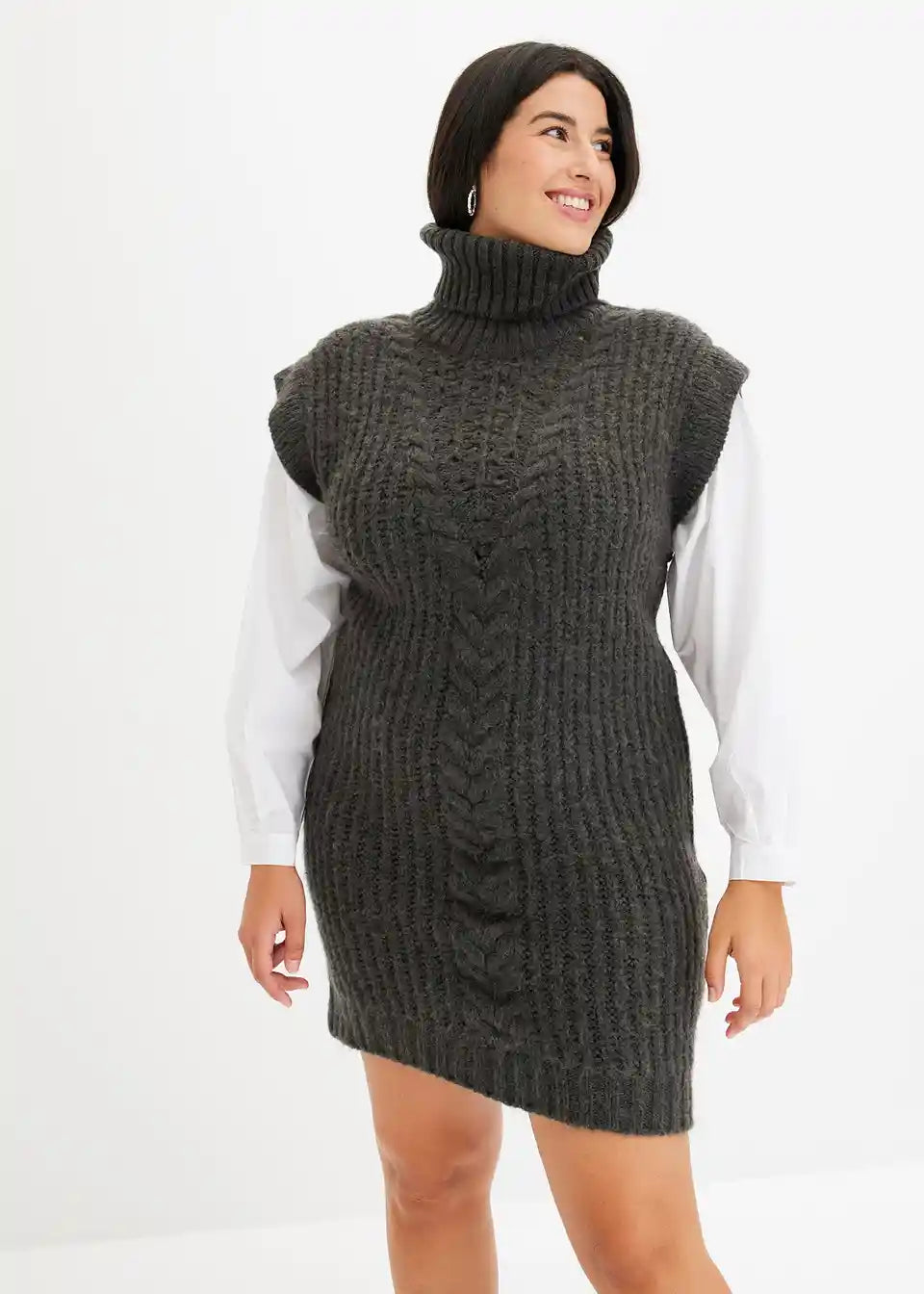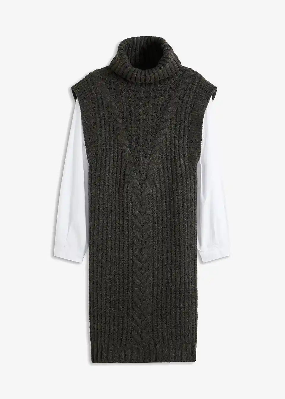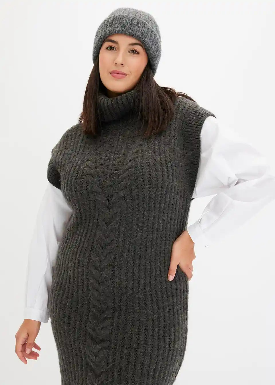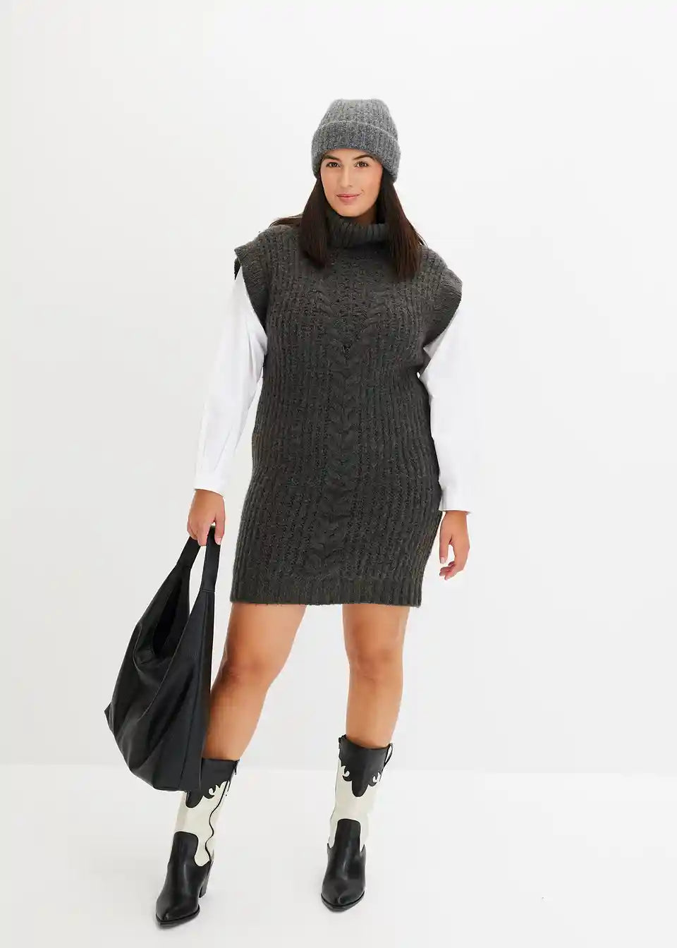 moderna pletena haljina s bluznim rukavima i pletenim uzorkom.