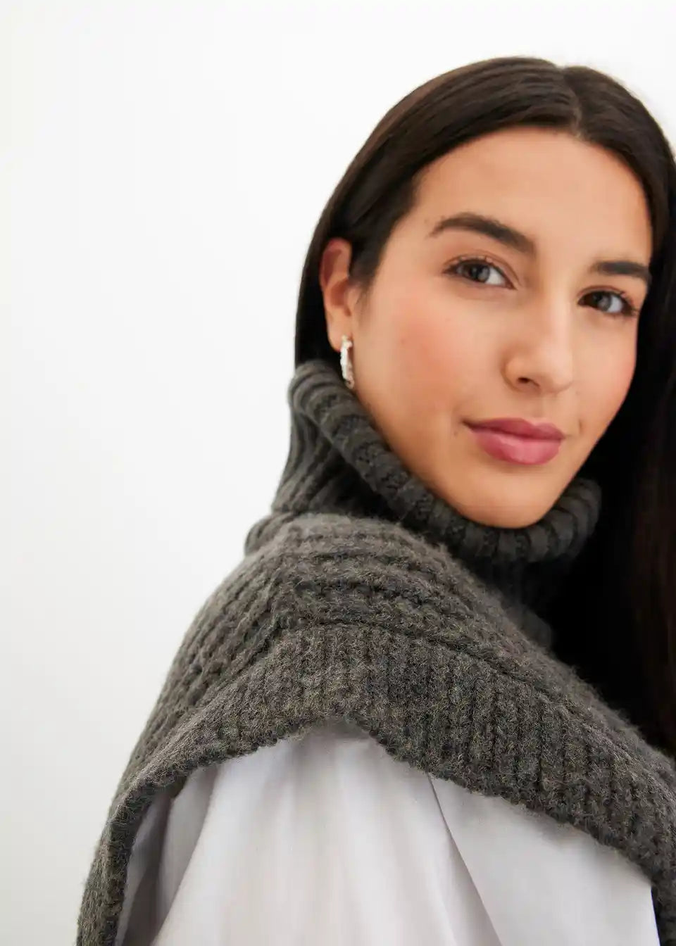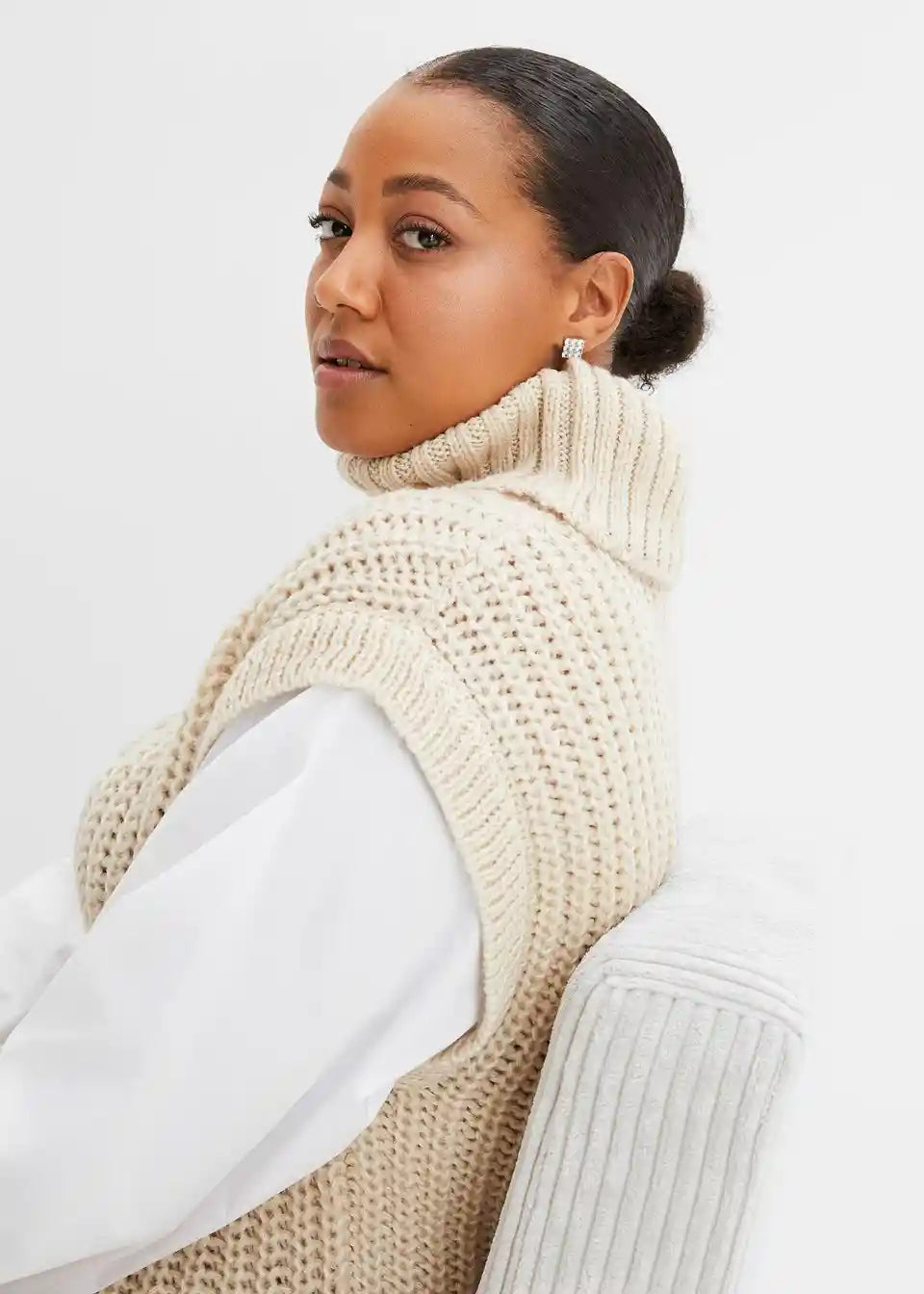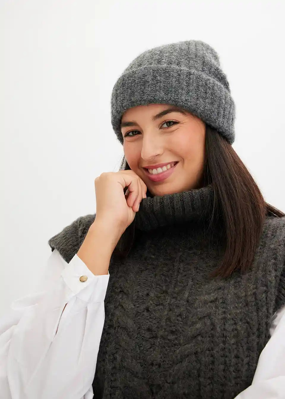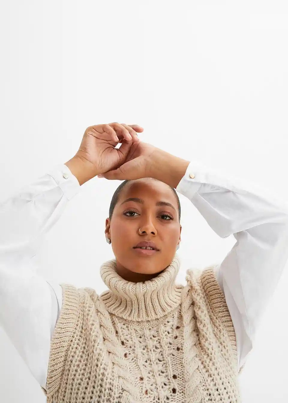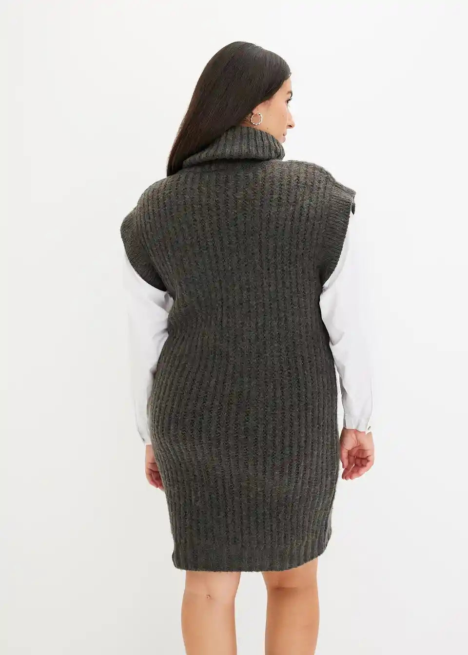 moderna pletena haljina s bluznim rukavima i pletenim uzorkom.