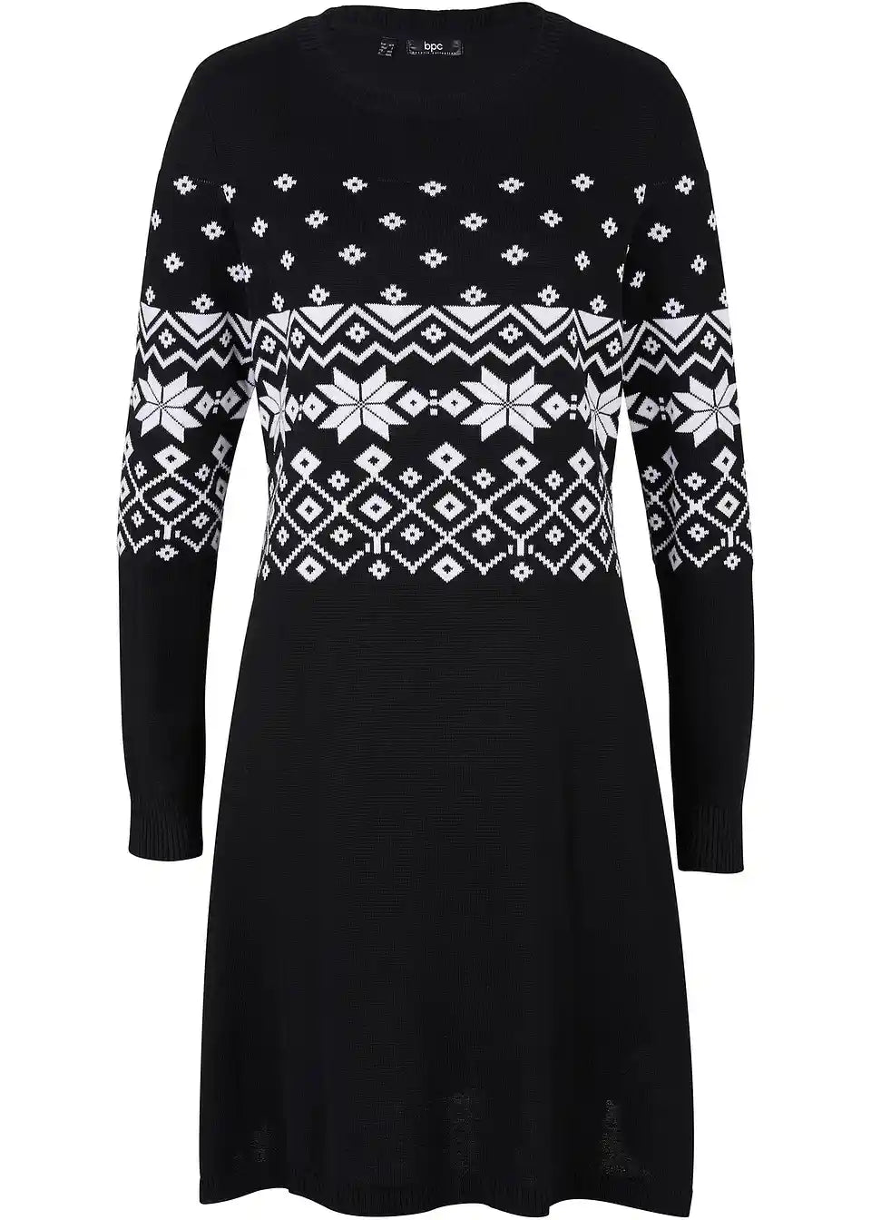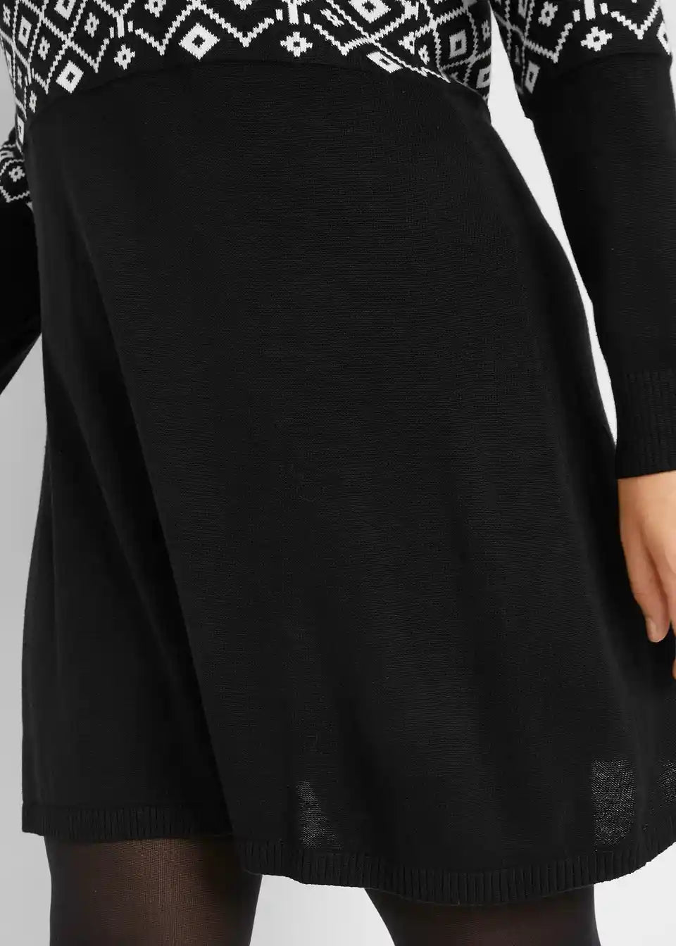 Haljina od pletiva koja laskavo oblikuje figuru s norveškim uzorkom i lepršavim donjim dijelom
