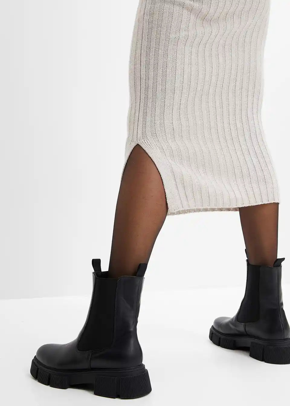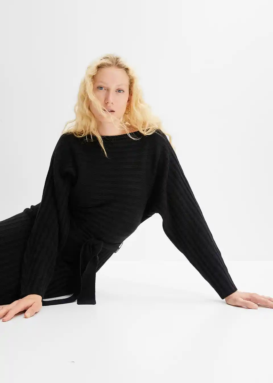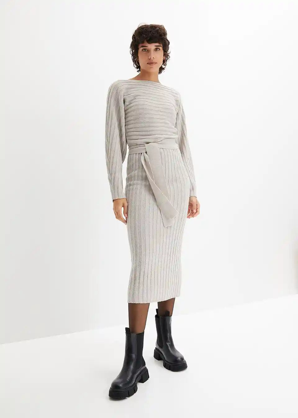 Atraktivna pletena haljina s šišmiš rukavima i širokim dekolteom