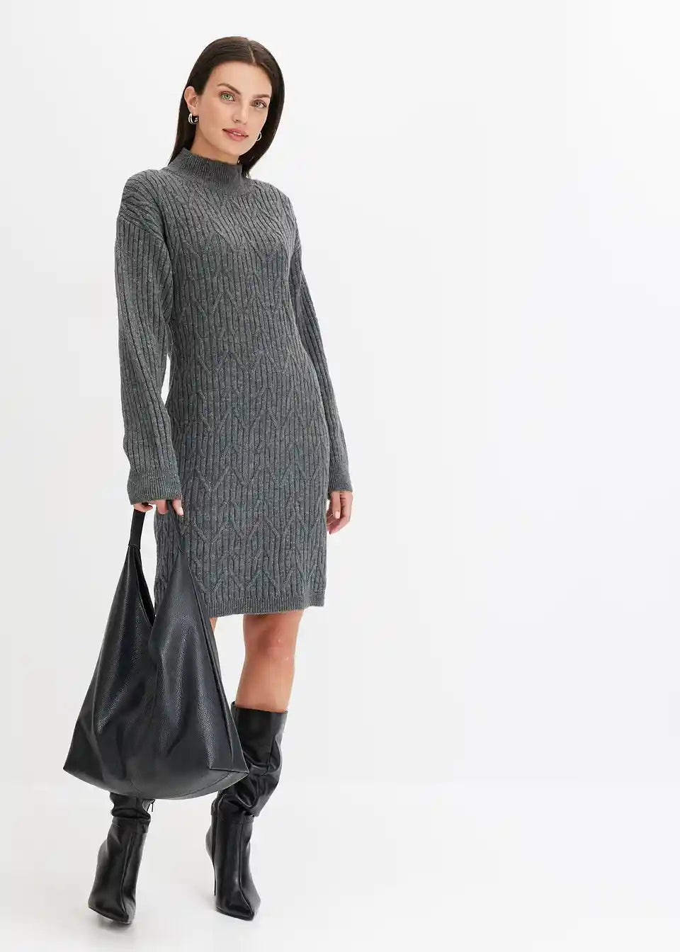 Moderno i ženstveno: Pletena haljina s uzorkom pletenica i rebrastim uzorkom