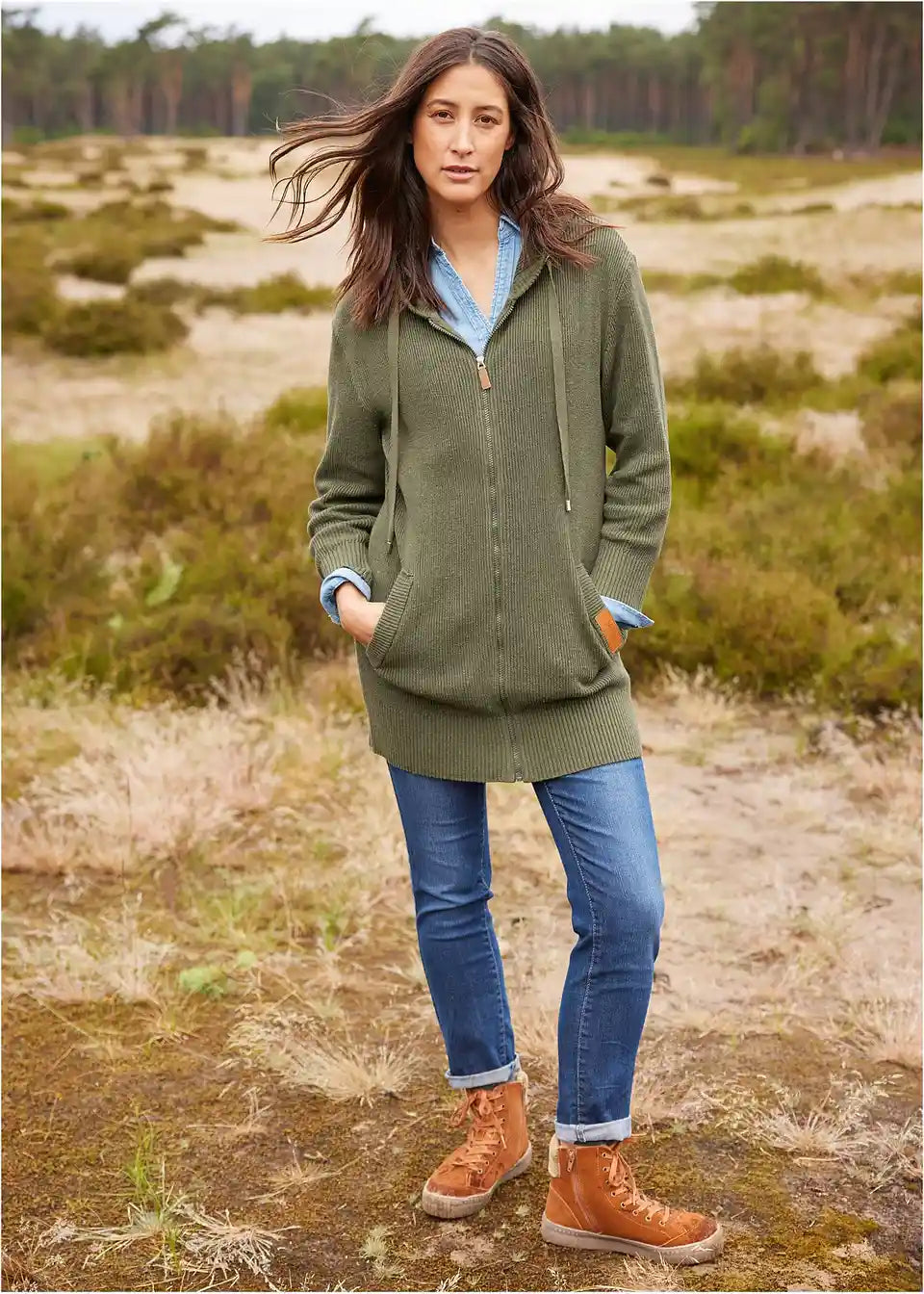 Oversized pleteni kaput s kapuljačom