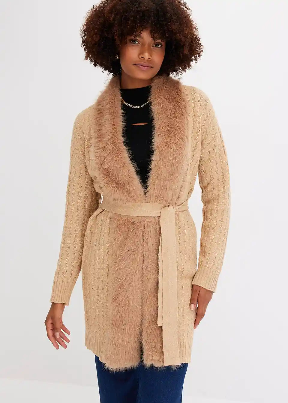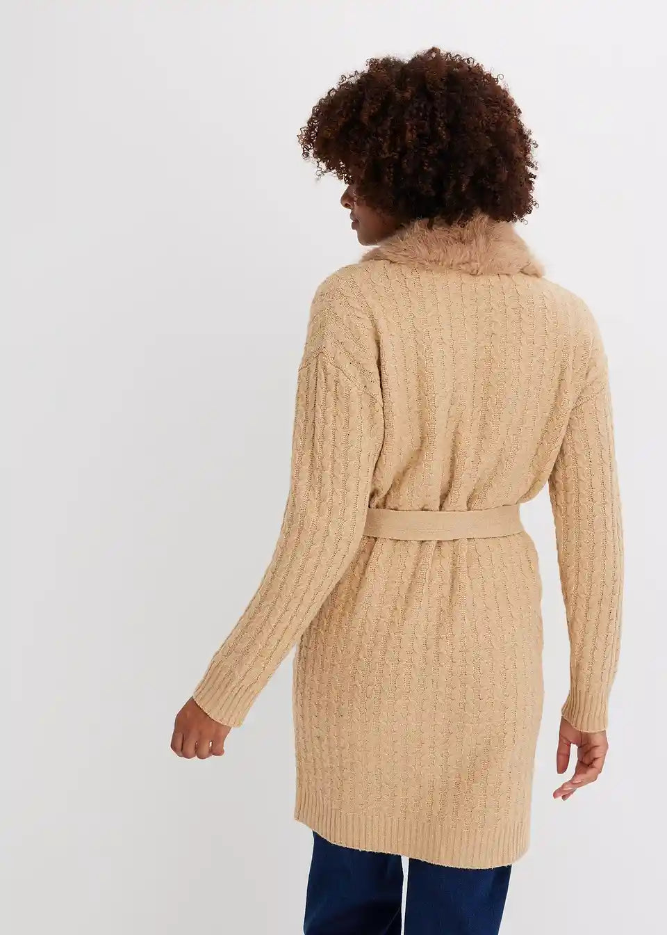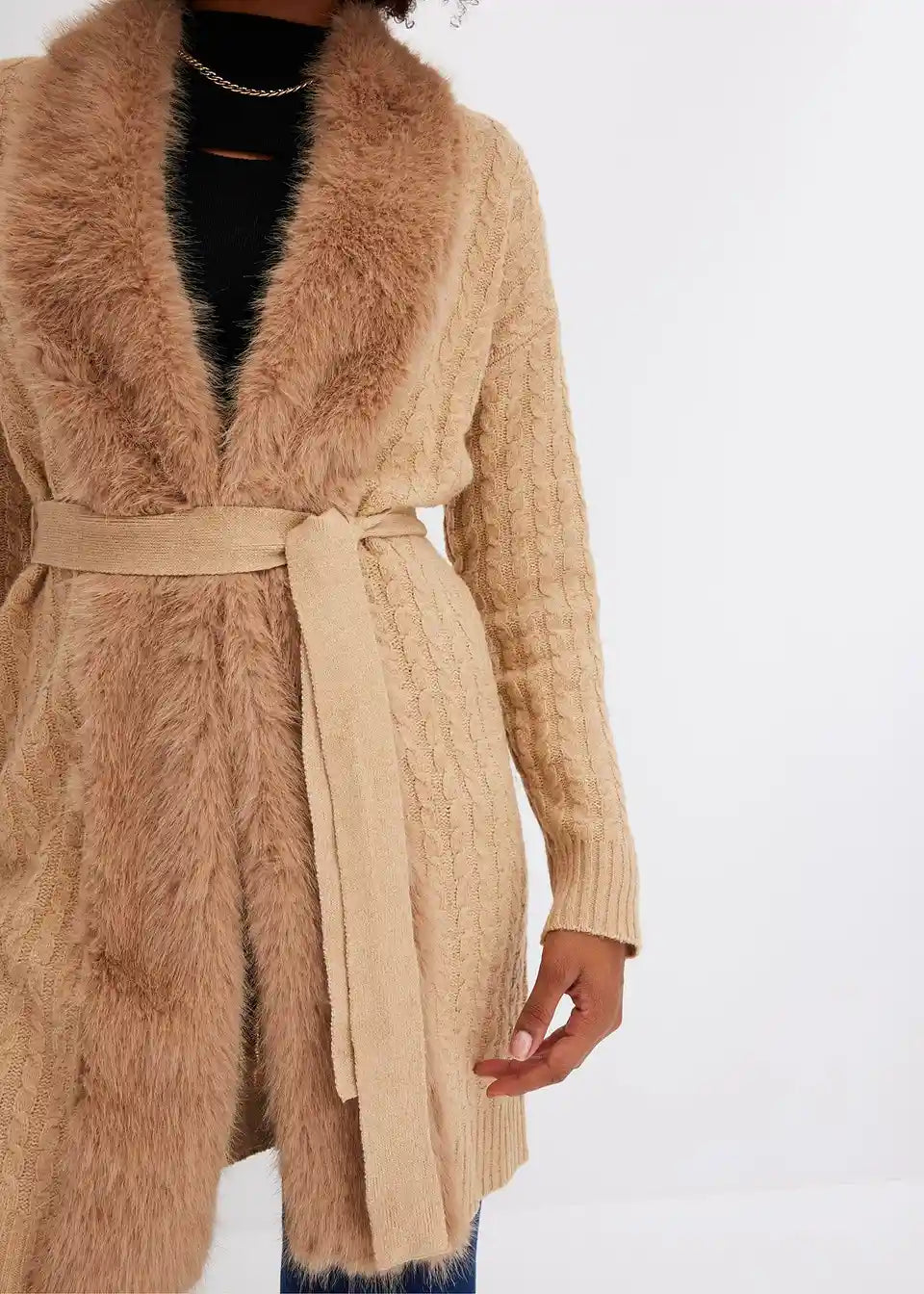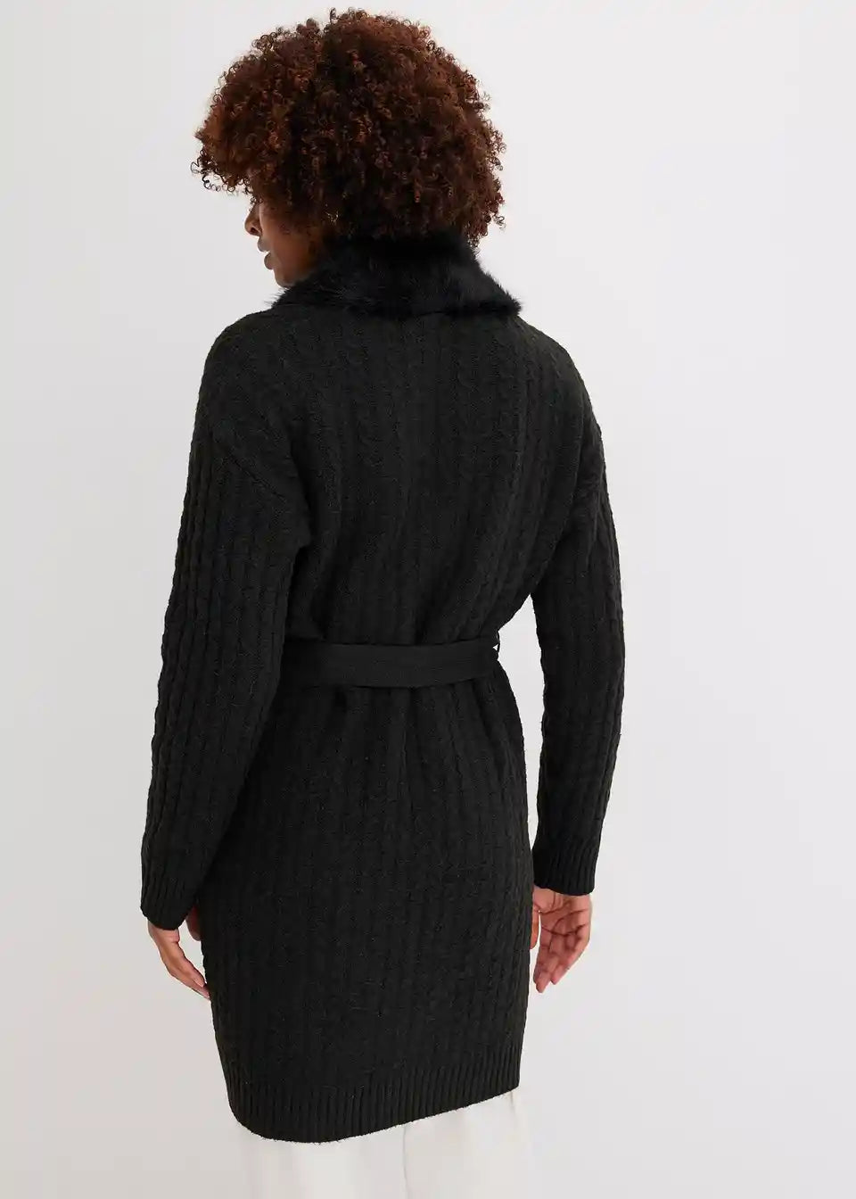 Pleteni kaput s umjetnim krznom