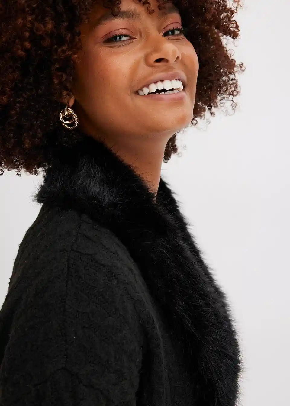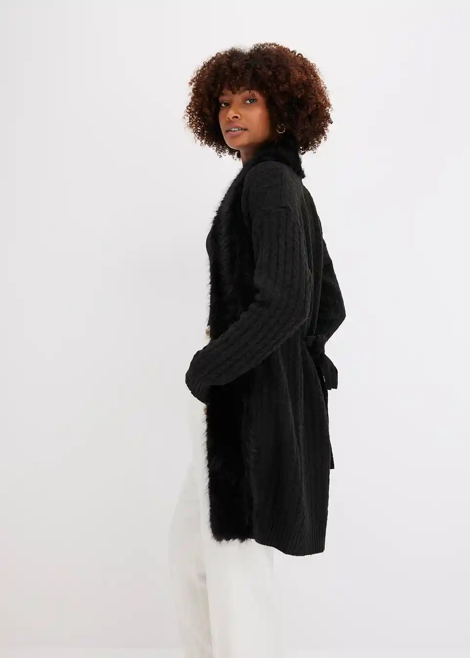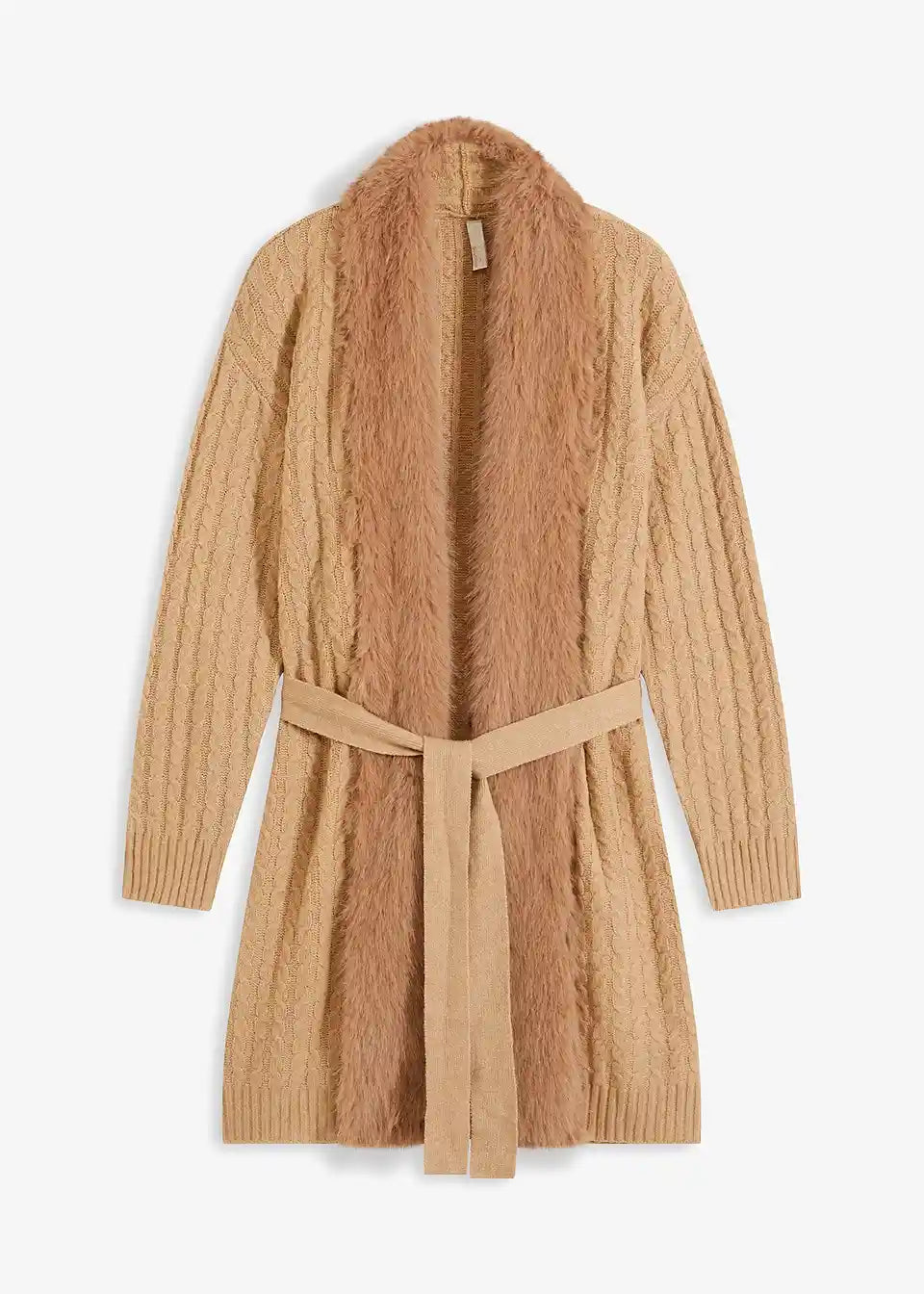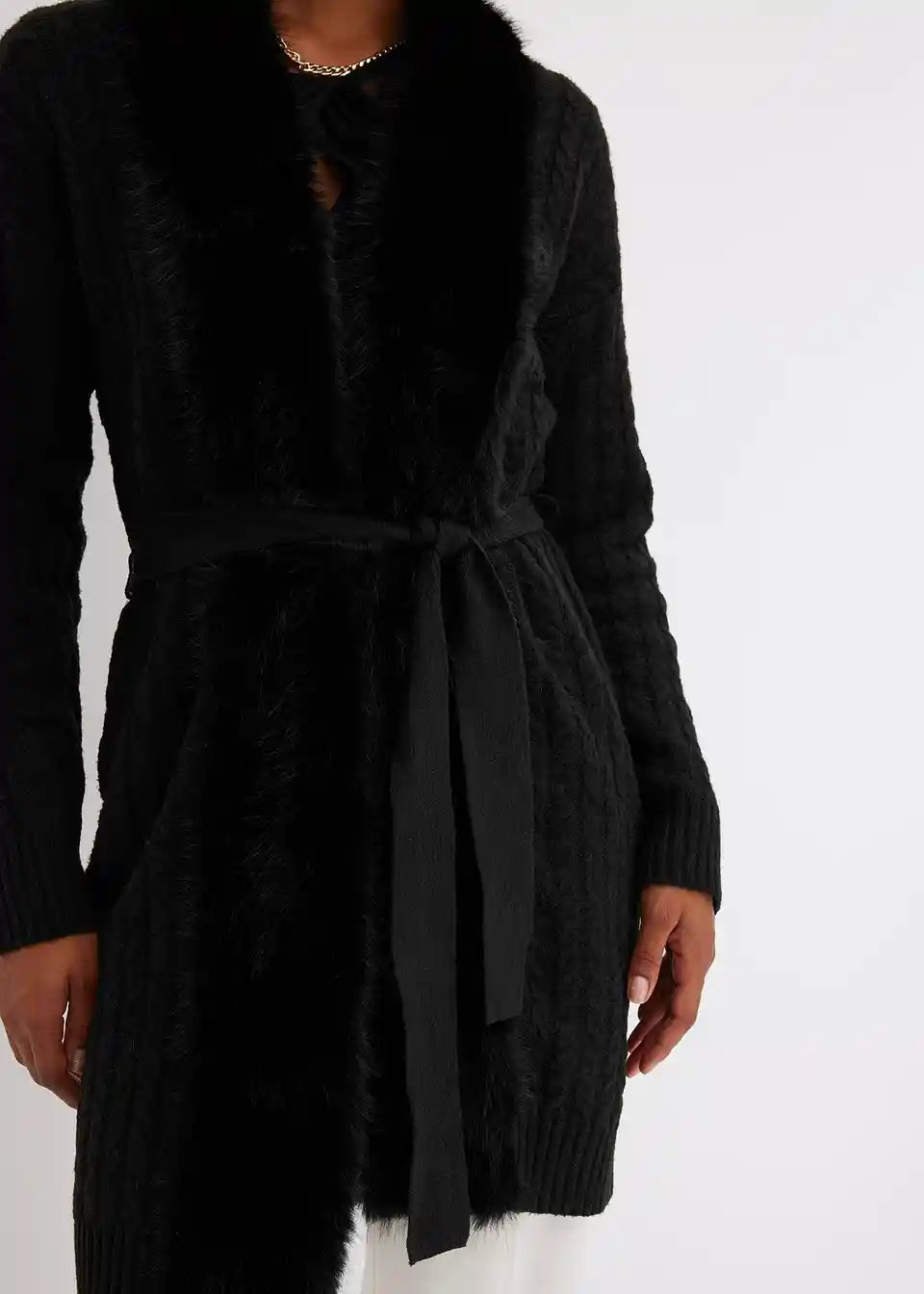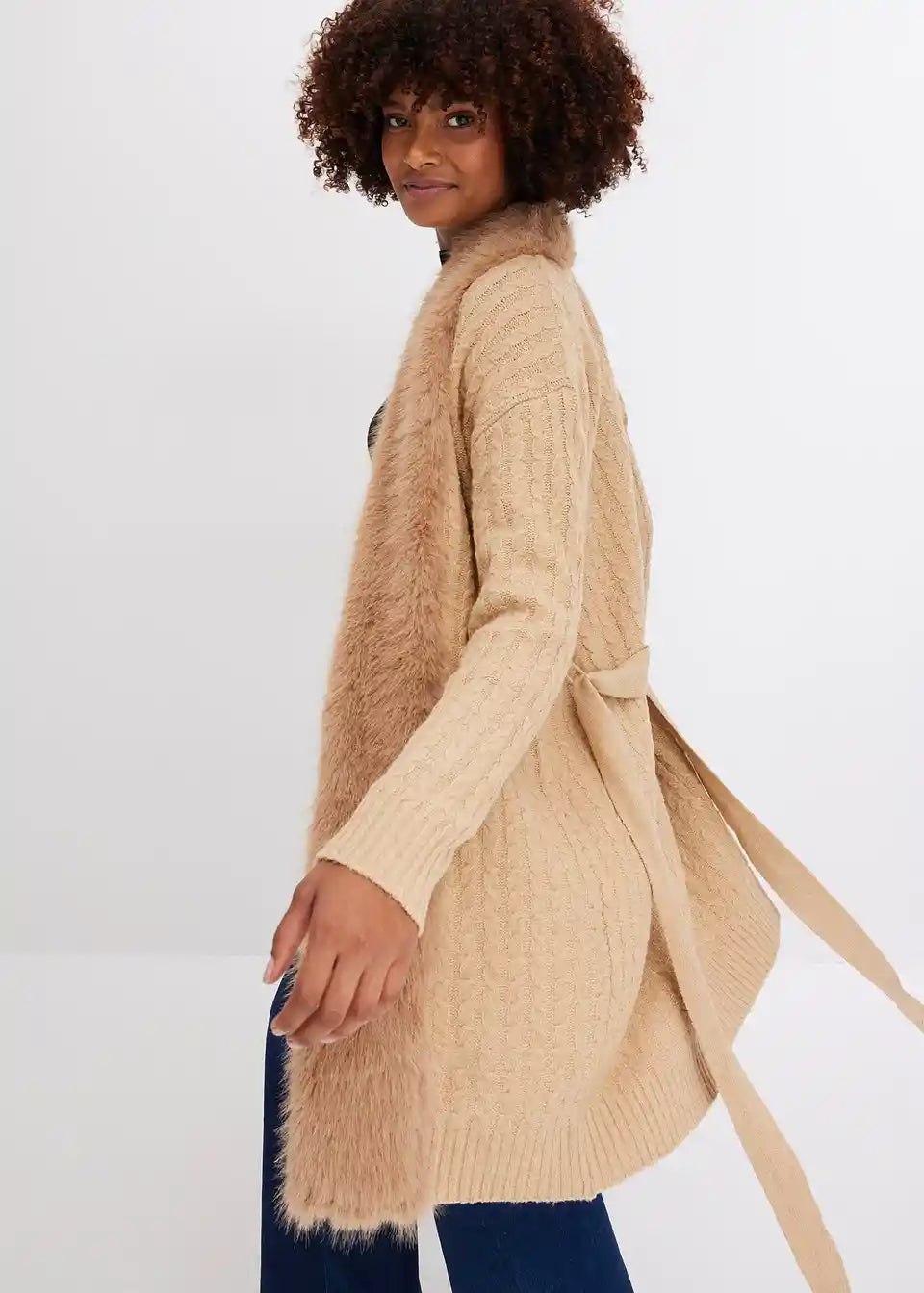 Pleteni kaput s umjetnim krznom