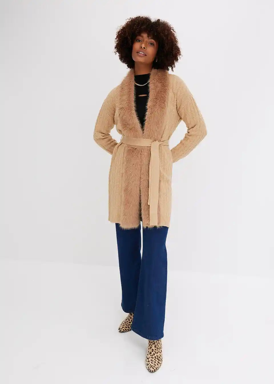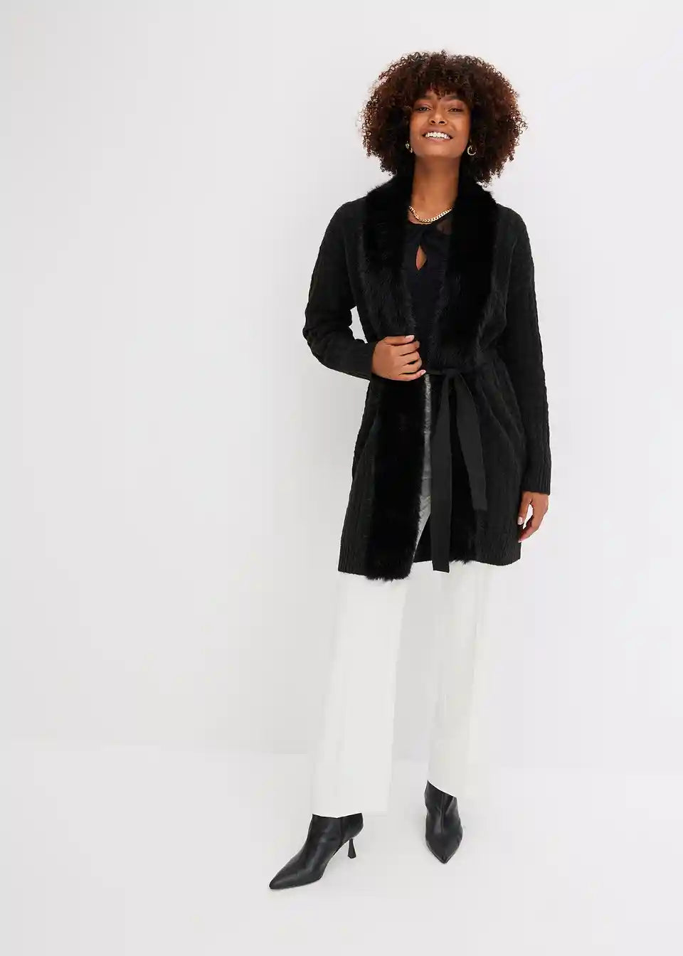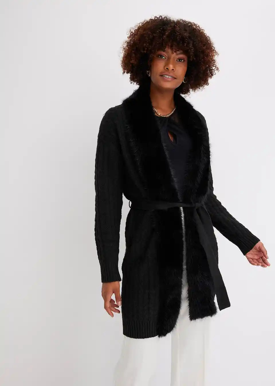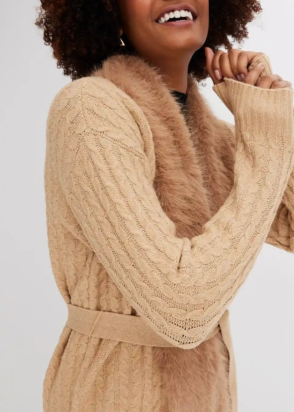 Stilski pleteni kaput s prekrasnim povezom