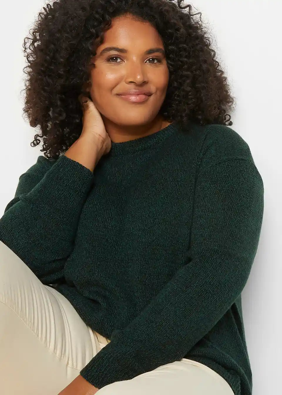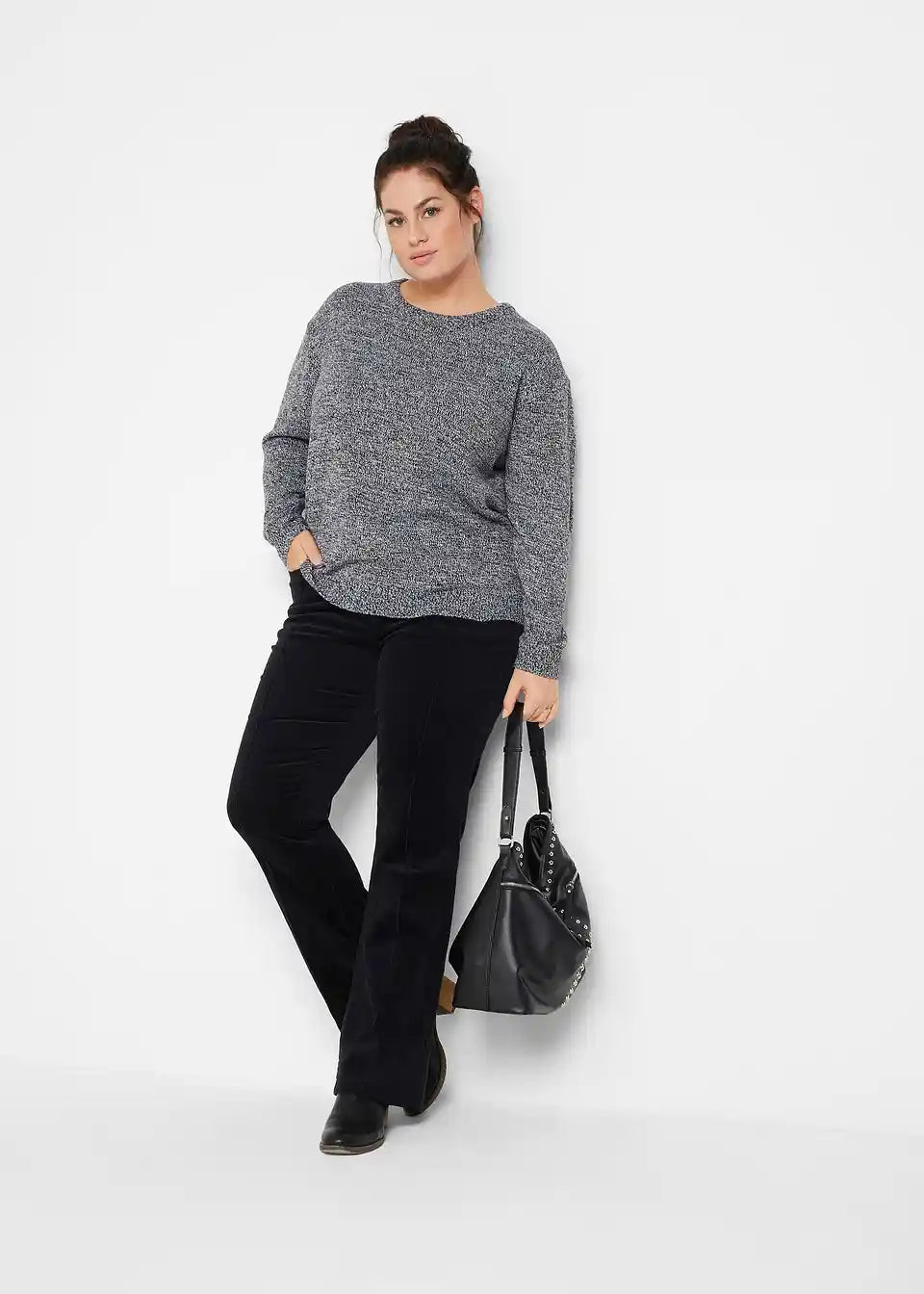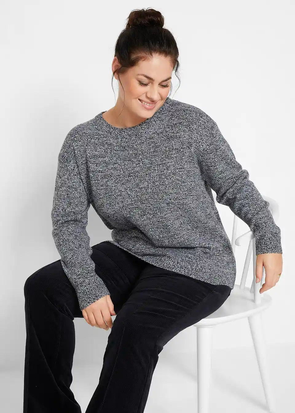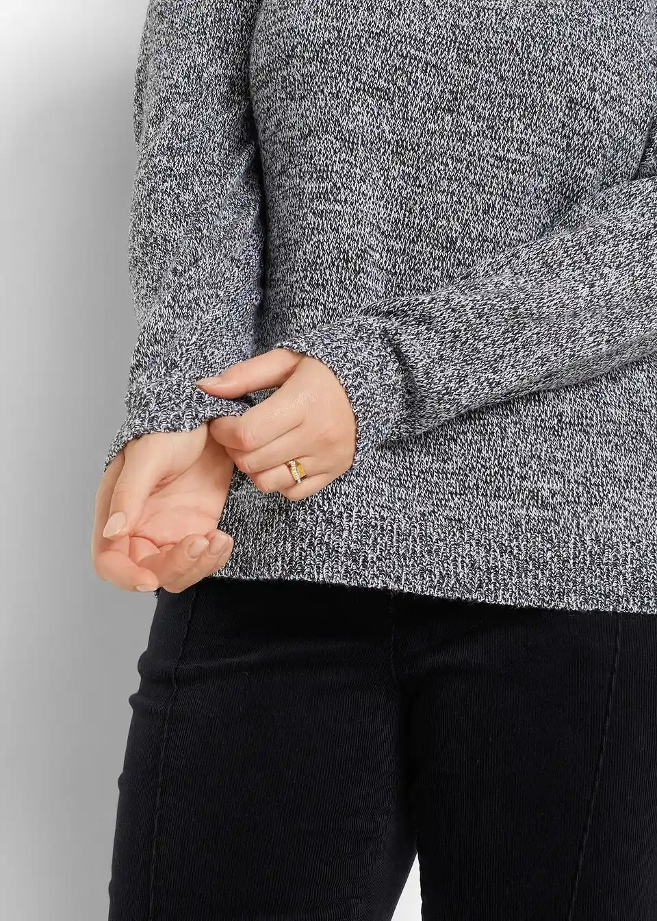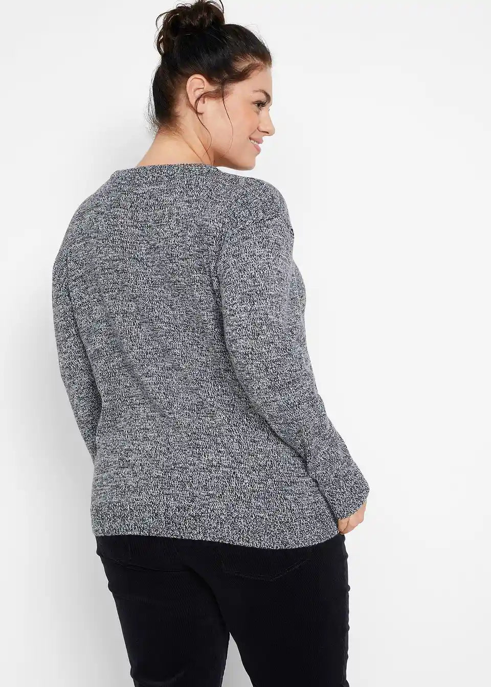 Pleteni pulover s okruglim izrezom od melanž materijala