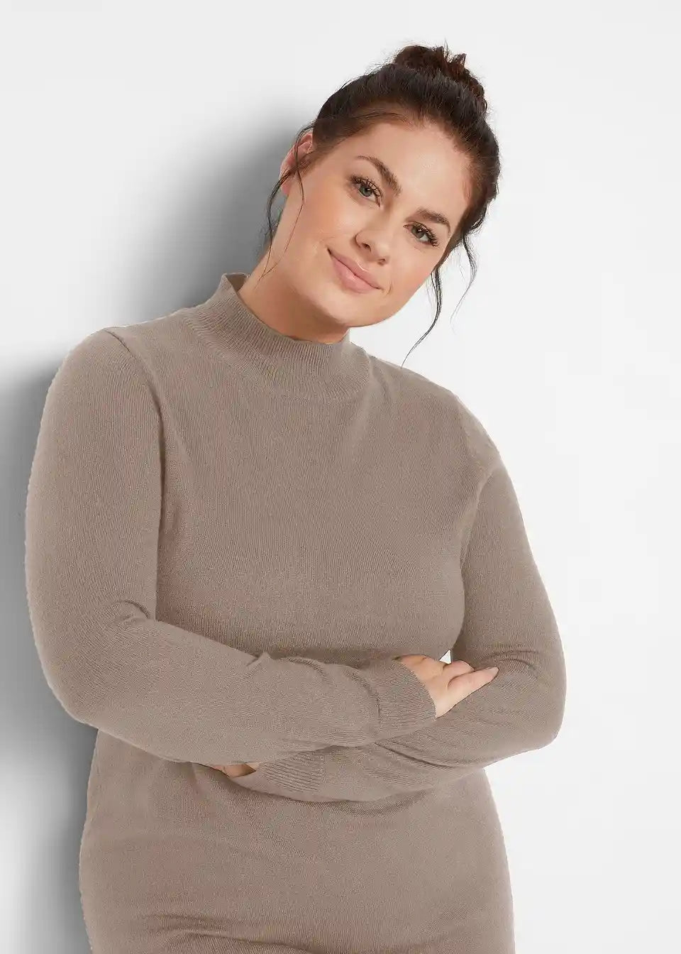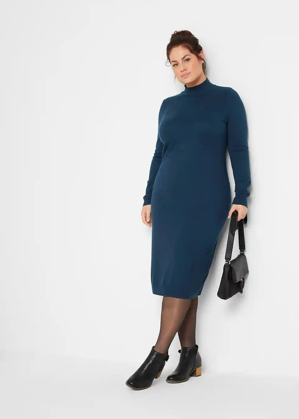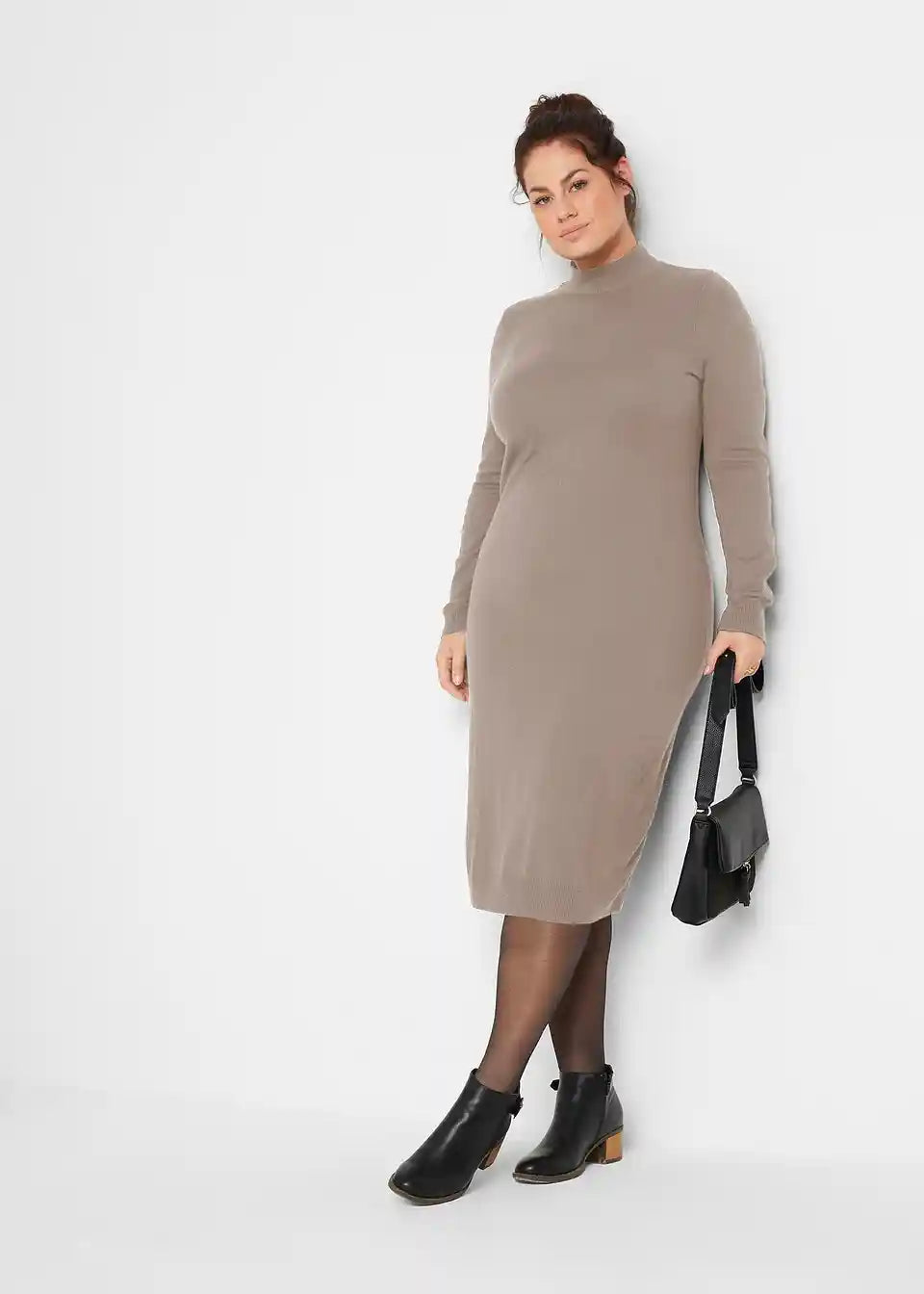 Stilsku pletenu haljinu s ovratnikom, dugih rukava