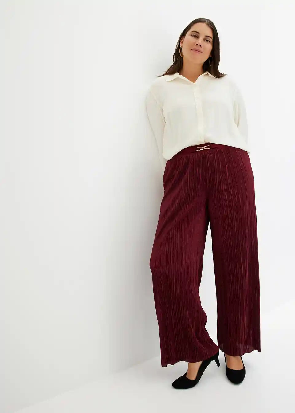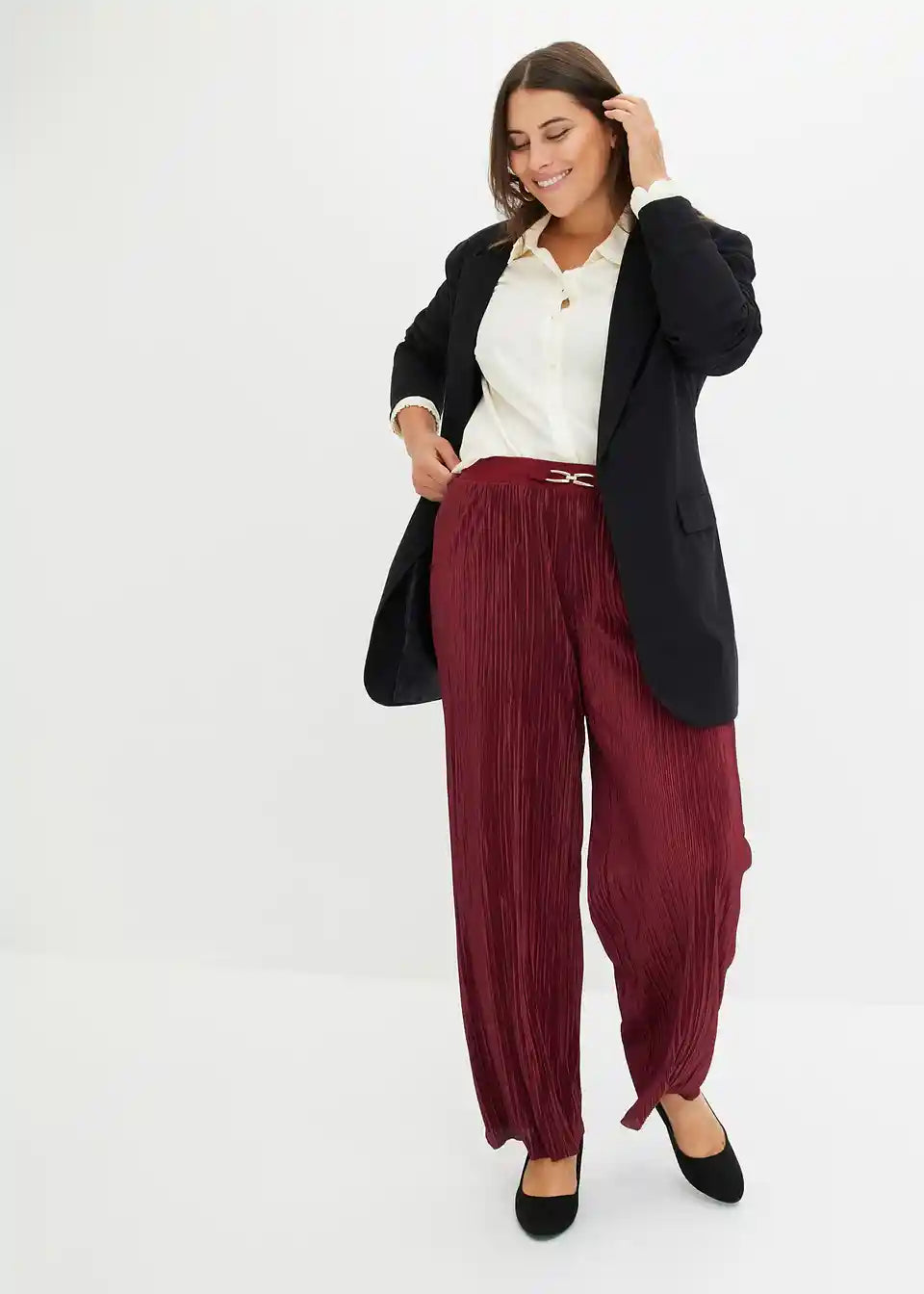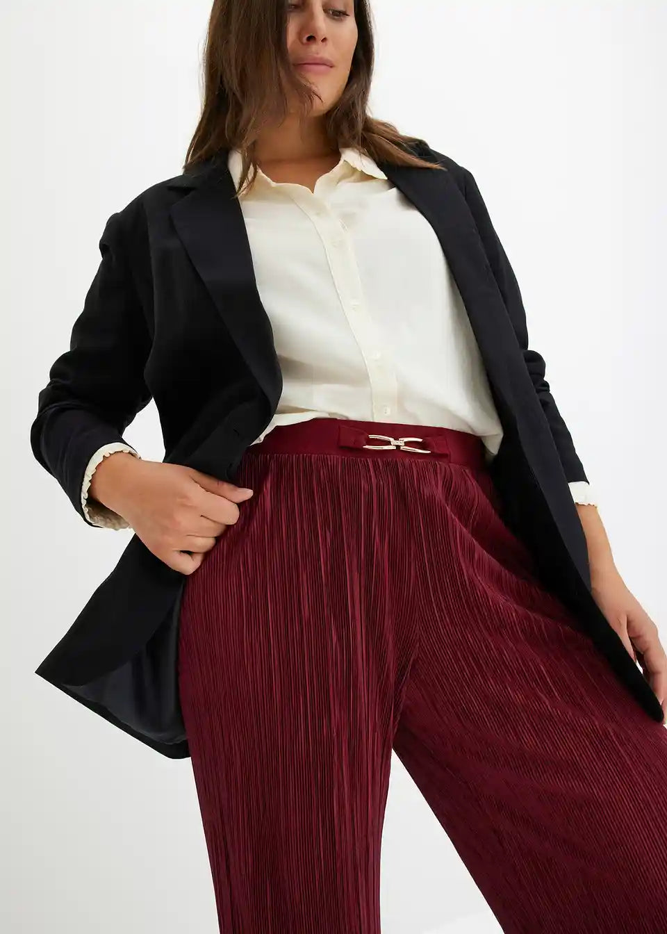 moderne plisirane hlače s dekorativnom kopčom sprijeda na pojasu