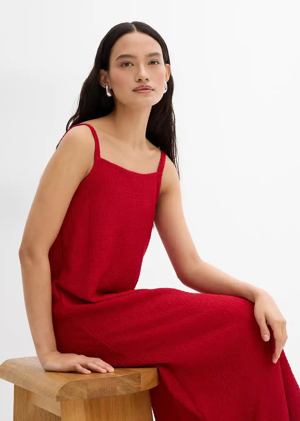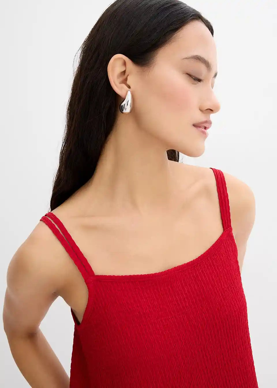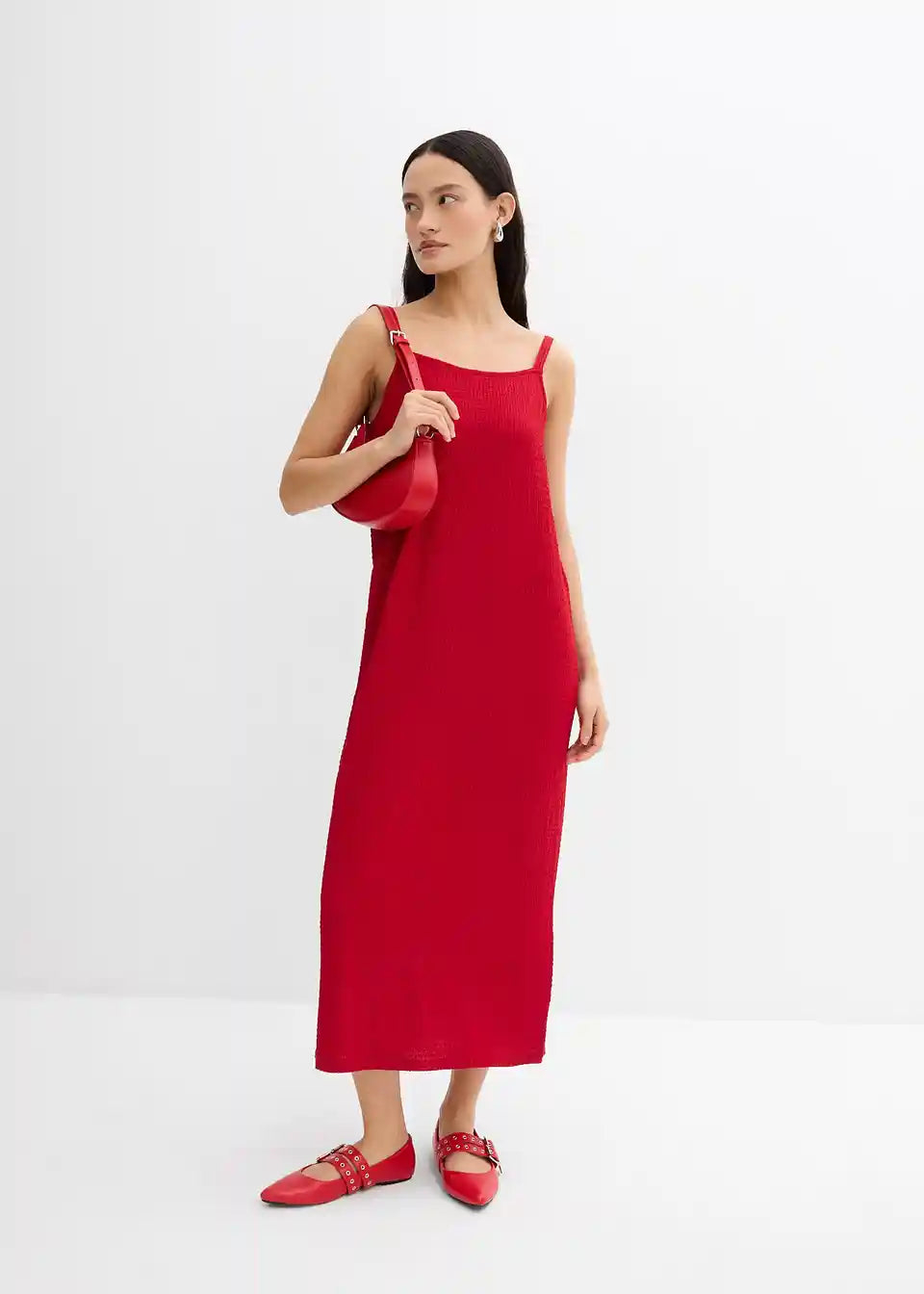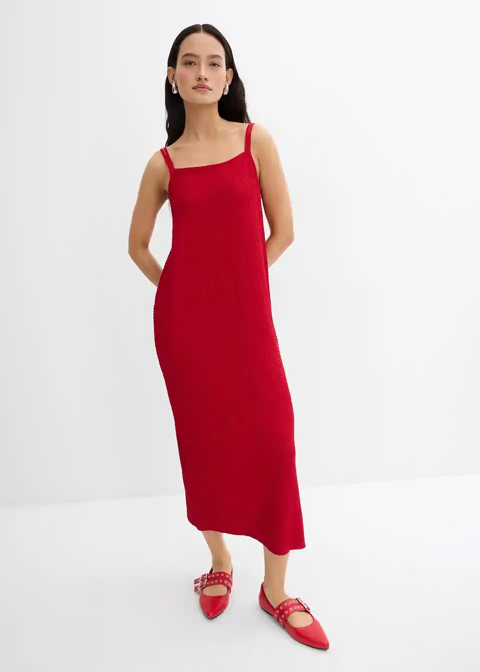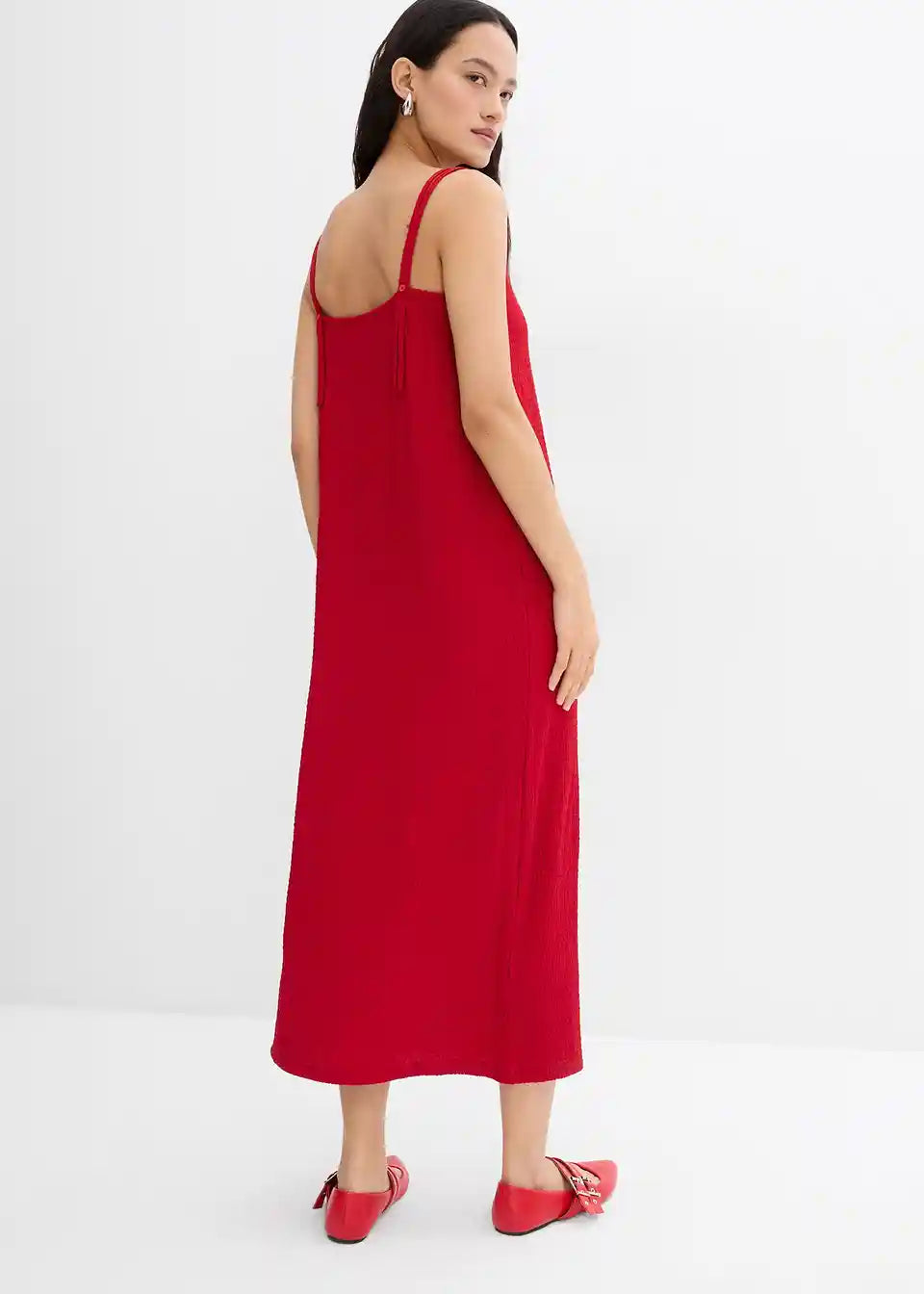 Haljina srednje dužine s podesivim tankim naramenicama od elastičnog crêpea