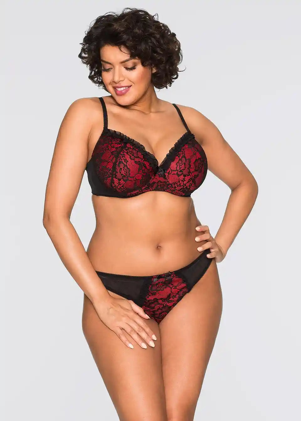 Materijal:gornji materijal: grudnjak: 83% poliamid, 17% elastan, gaćice: 83% poliamid, 17% elastan, podstava: gaćice: 83% poliamid, 17% elastan, čipka: grudnjak: 58% poliamid, 42% poliamid (reciklirani), gaćice: 58% poliamid, 42% poliamid (reciklirani)