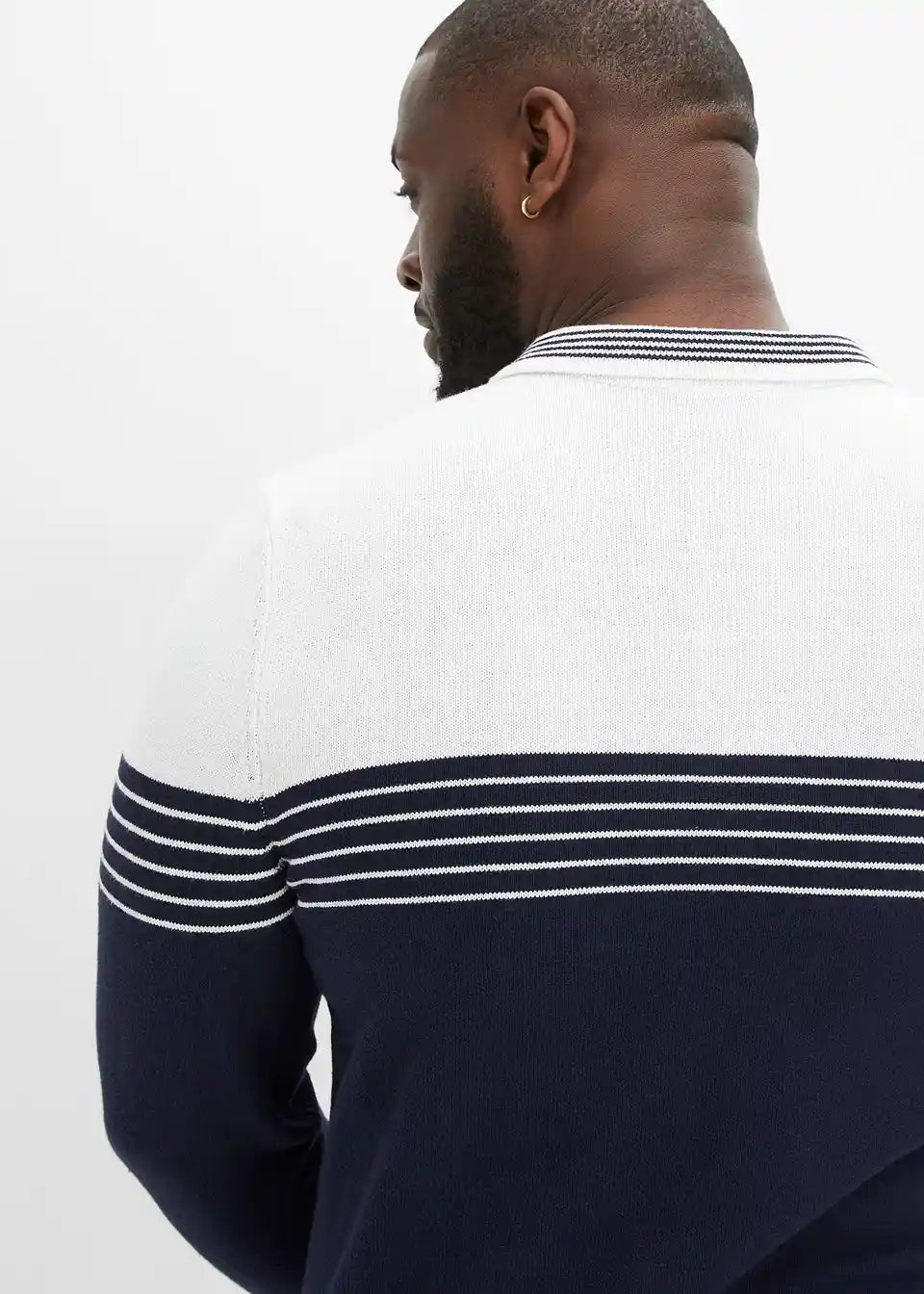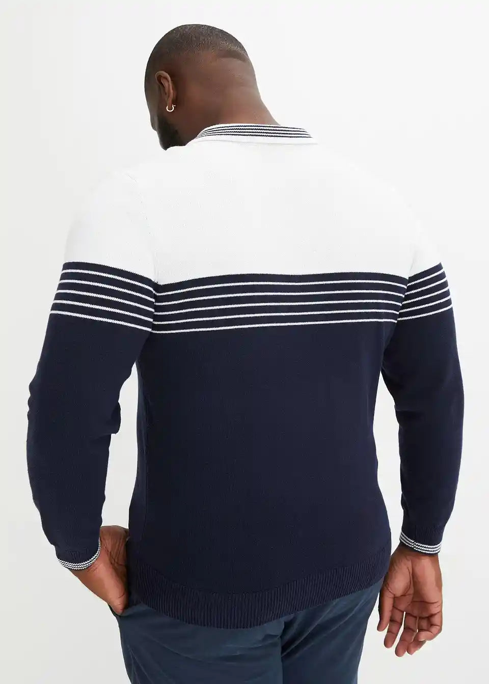 Moderan prugasti pulover s polo ovratnikom