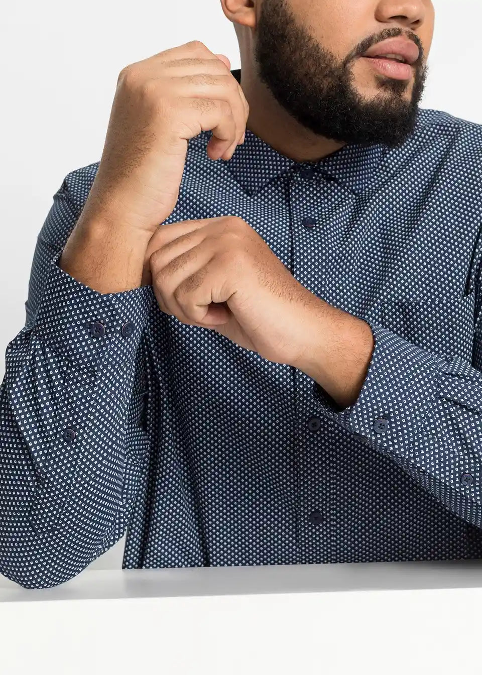 klasična bijela plus moderno tamnoplavo s uzorkom.