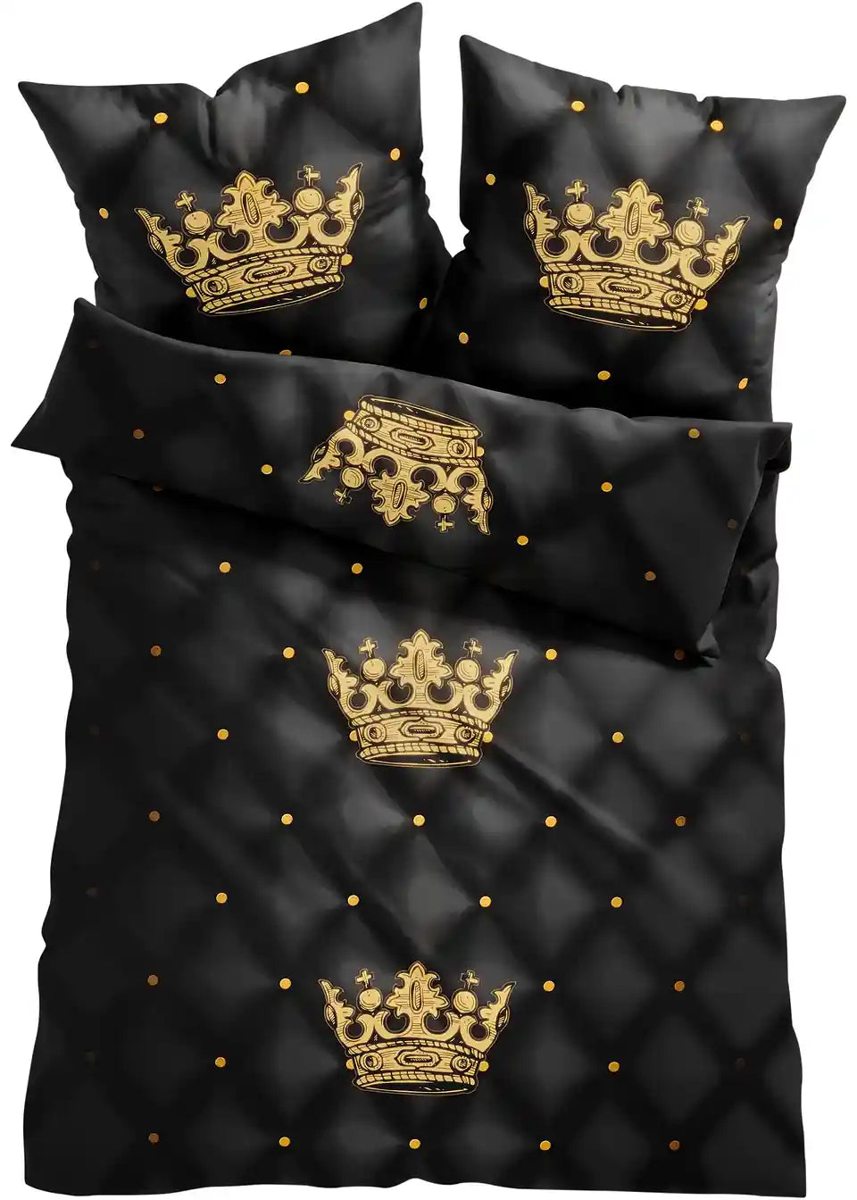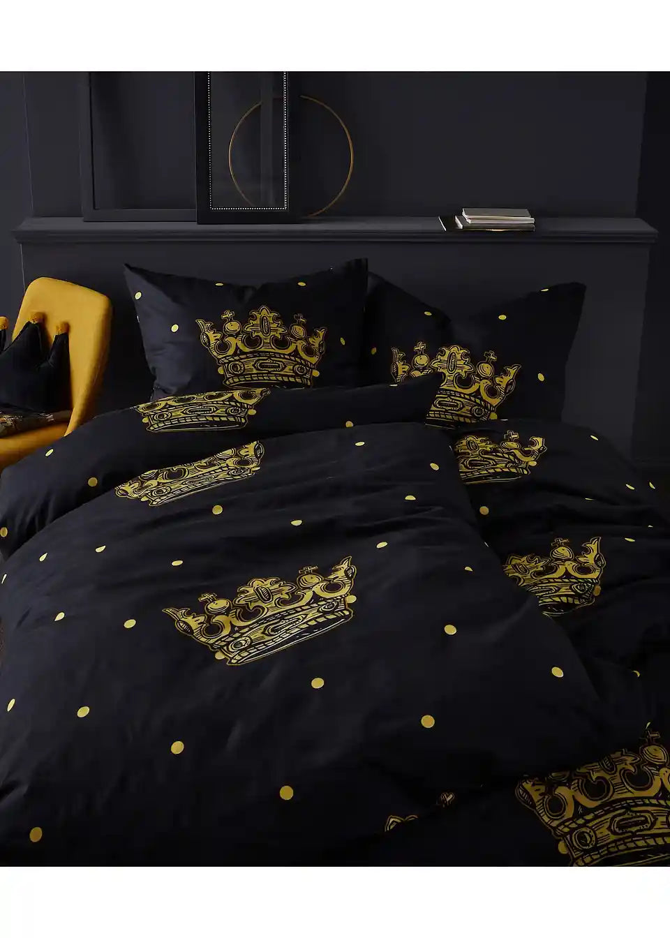 Tamna posteljina sa zlatnom krunom, elegantna, Glamour