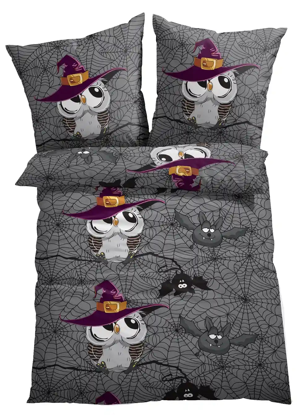 Posteljina s Sovom u Halloween dizajnu, šišmirom, paukovom mrežom
