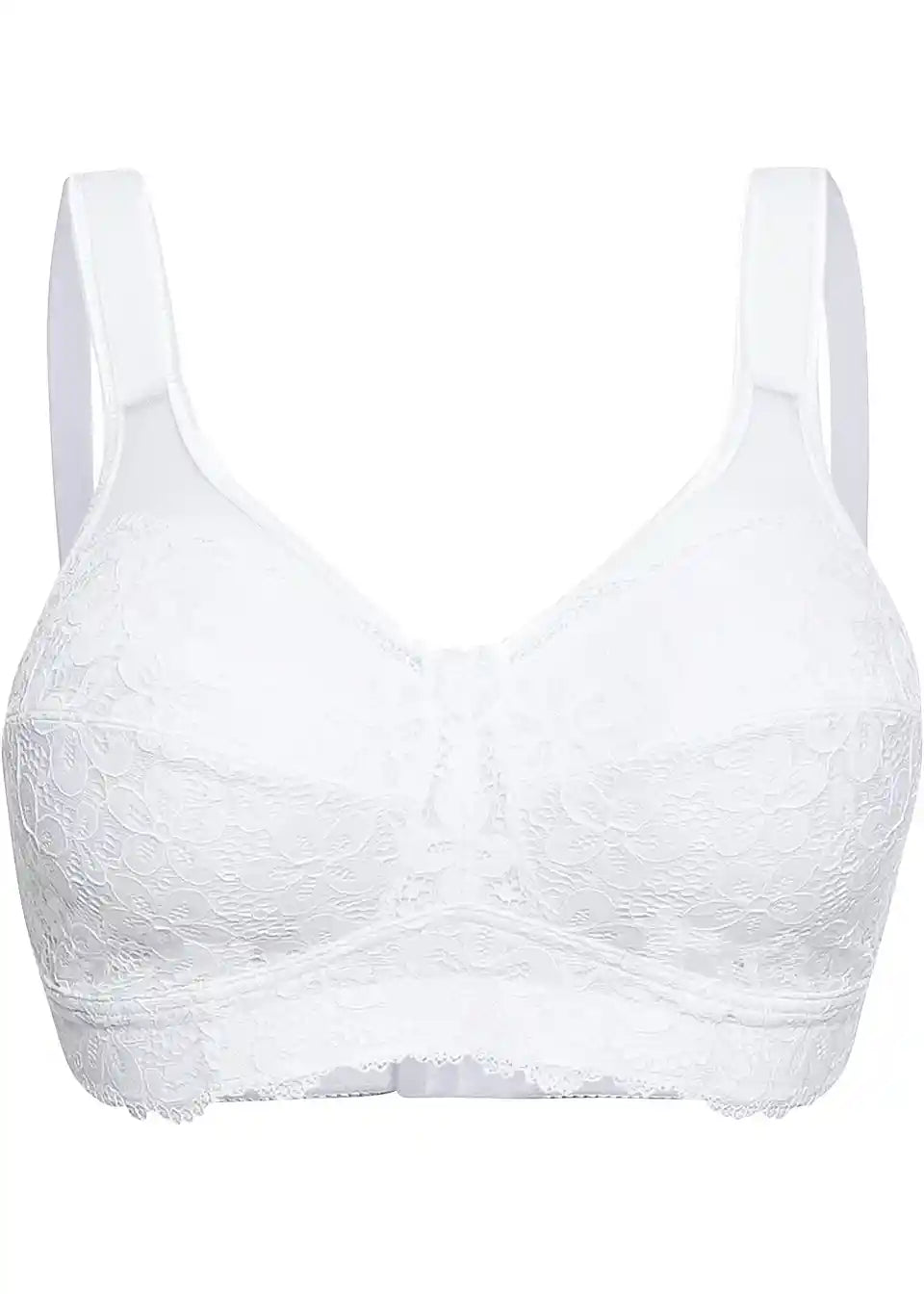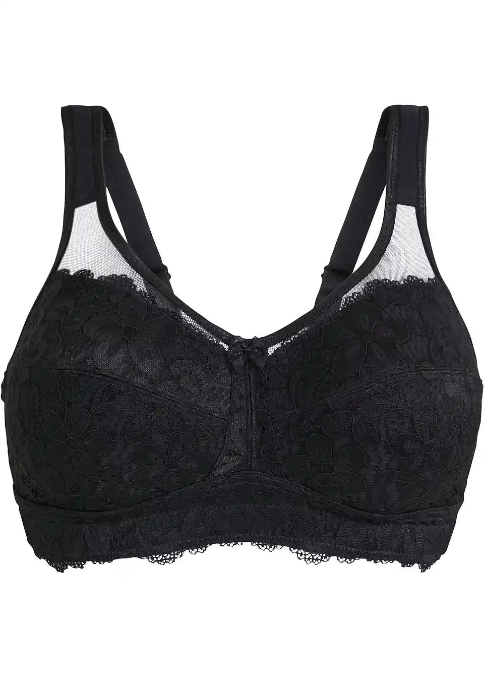 Ovaj profinjeni potporni grudnjak obećava osobito ženama s većim poprsjem olakšanje za leđa. Krojenje, kao i podstavljene naramenice i podesivi zatvarač, osmišljeni su kako bi pružili optimalnu potporu i osjećaj sigurnosti. Prekrasan dizajn od čipke i mrežastih umetaka oplemenjuje visoku udobnost nošenja.
