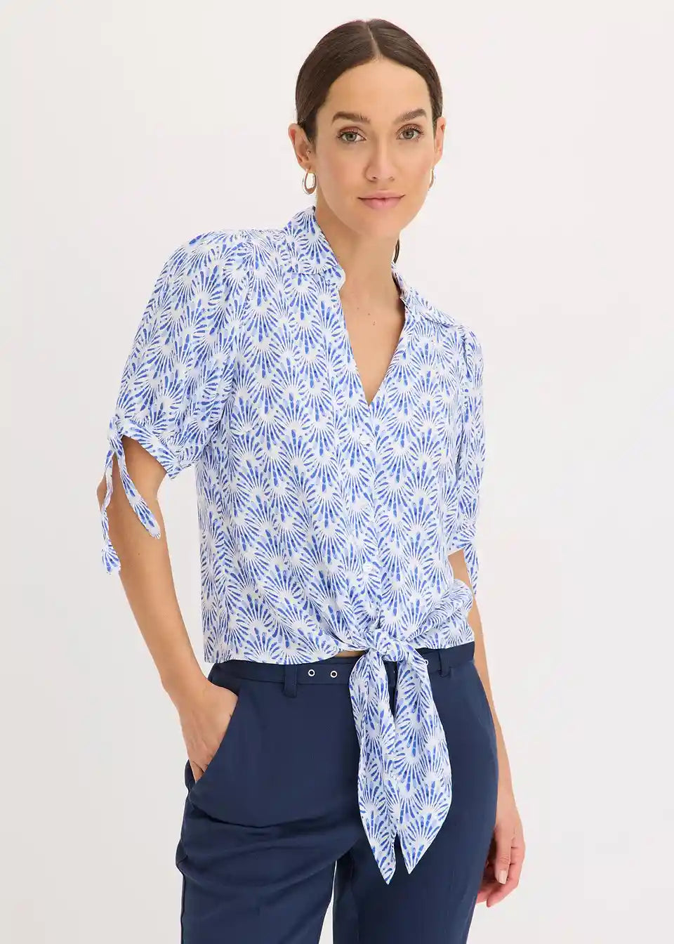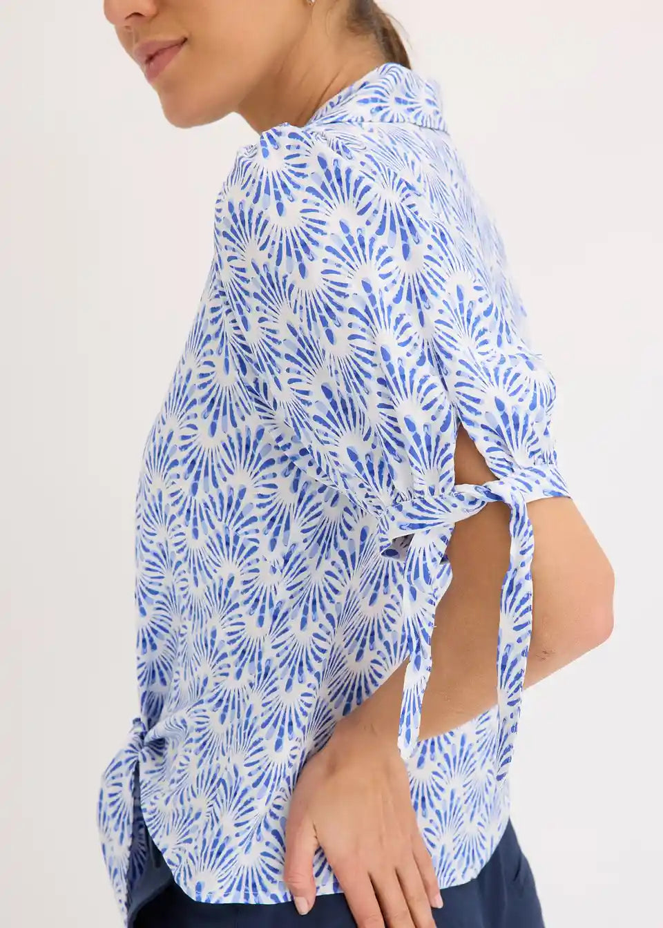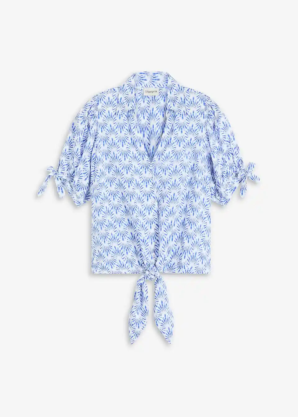 ženstvena bluza s vezanjem sprijeda na rubu i na završecima rukava.