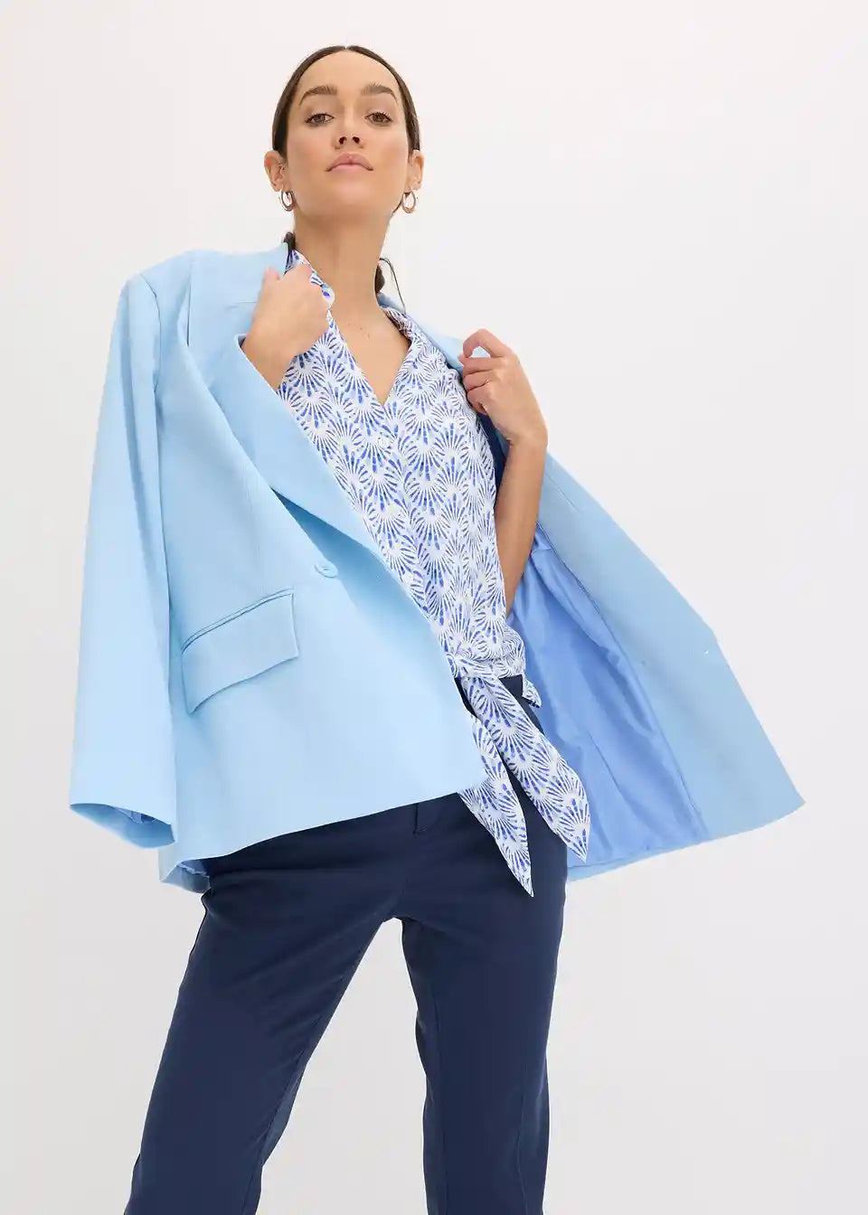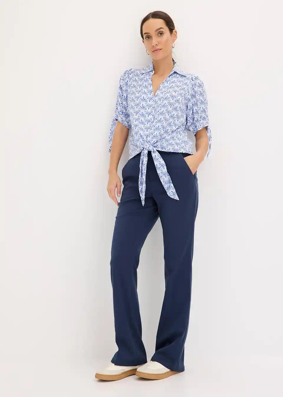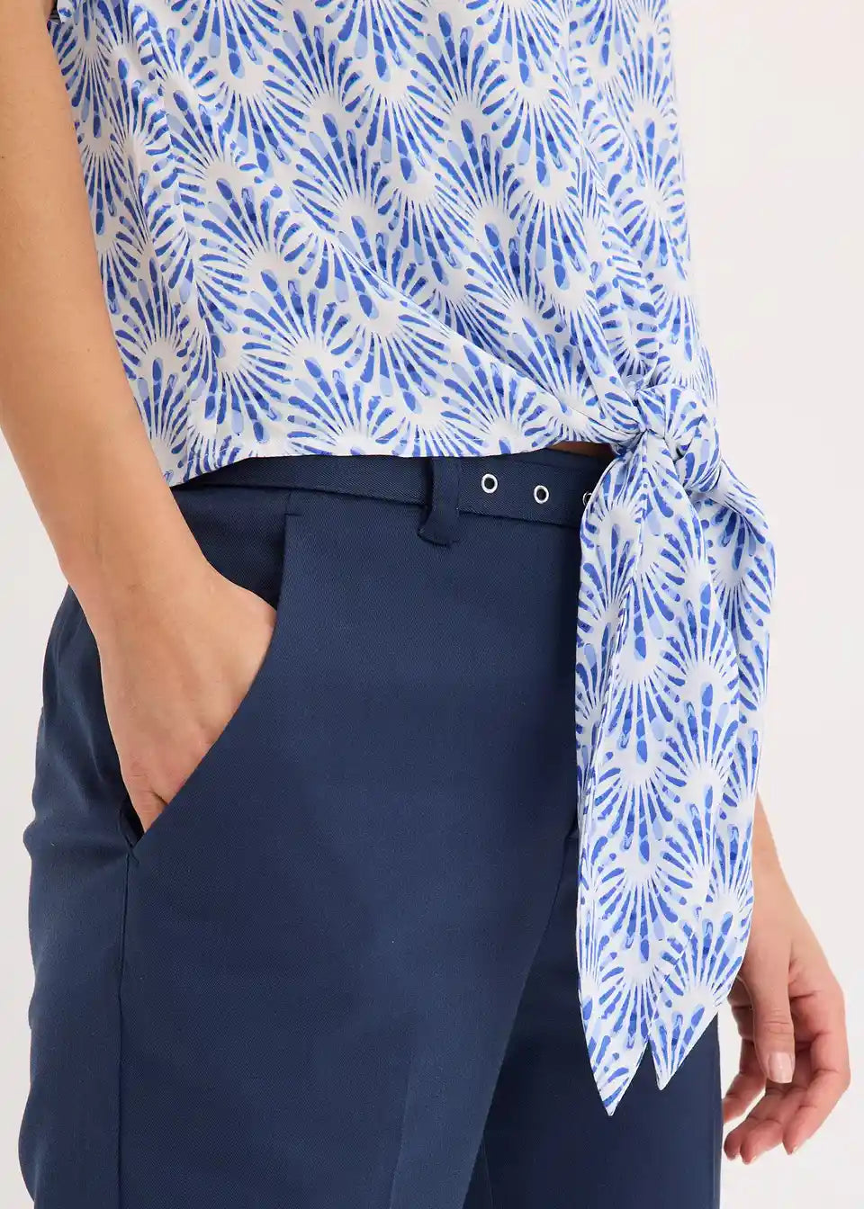 ženstvena bluza s vezanjem sprijeda na rubu i na završecima rukava.