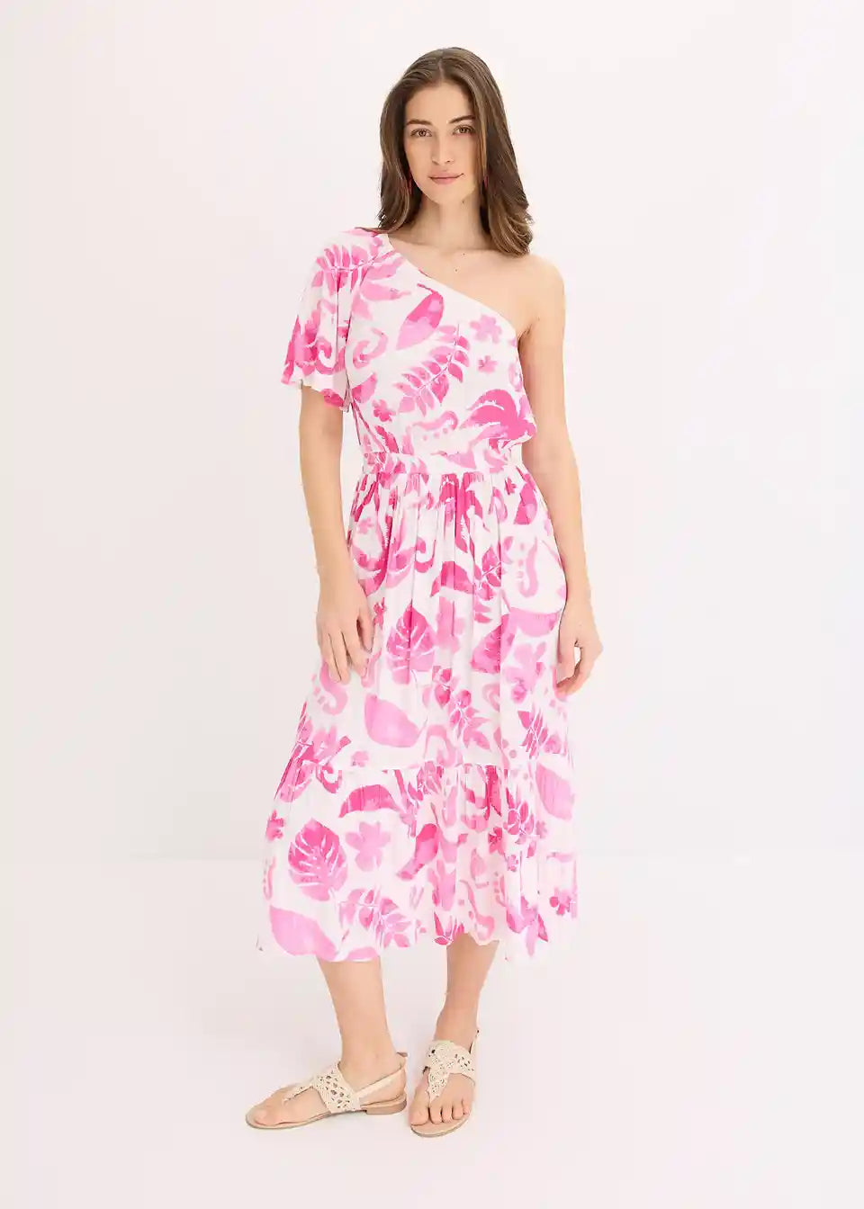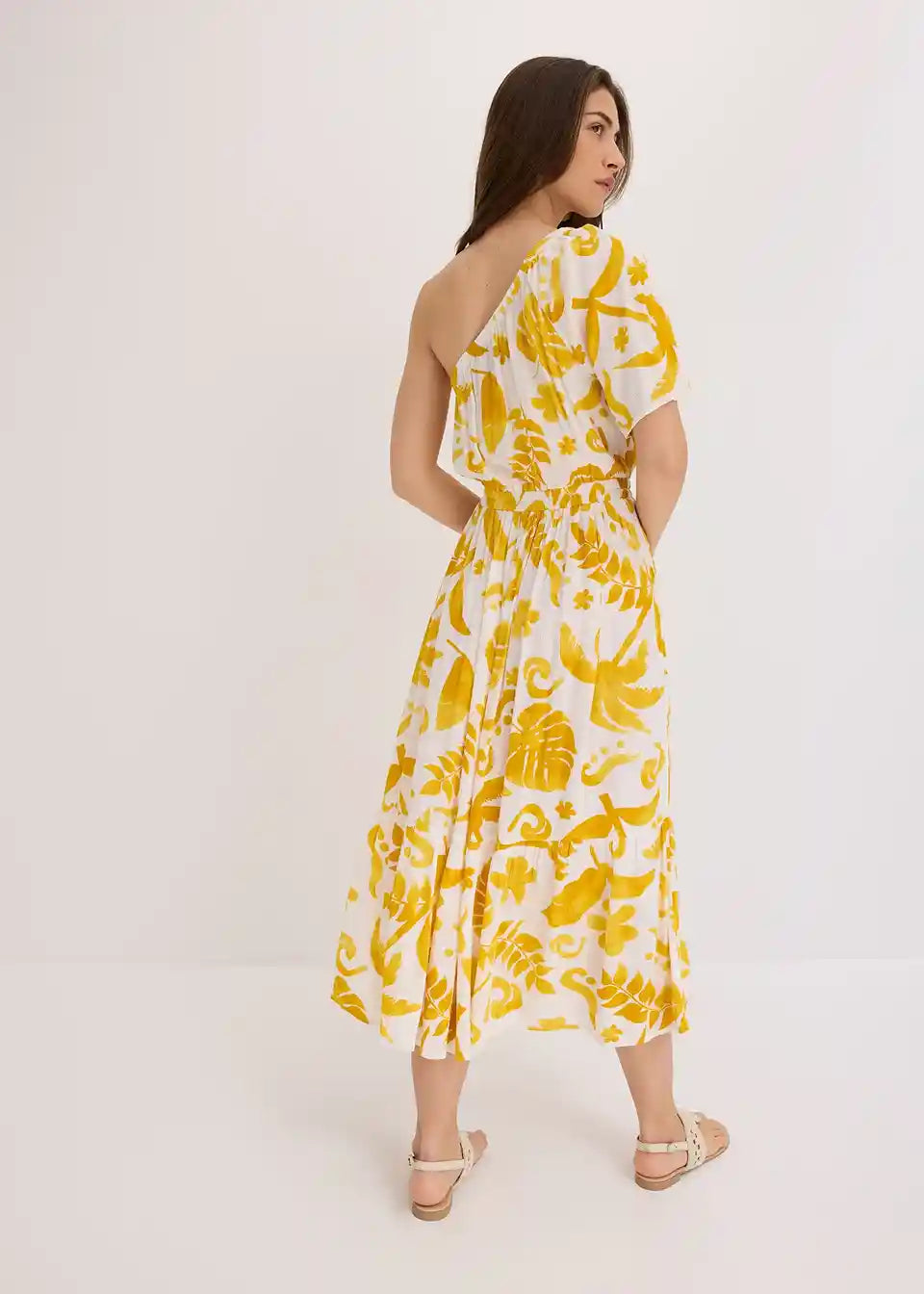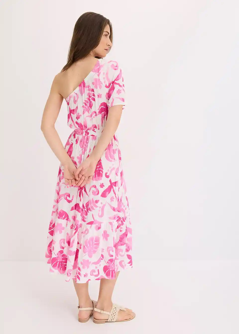 Haljina s uzorkom i otvorenim ramenom od strukturirane viskoze