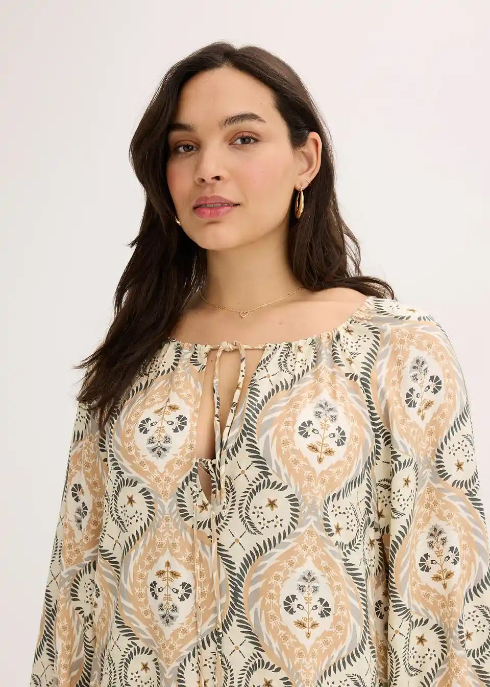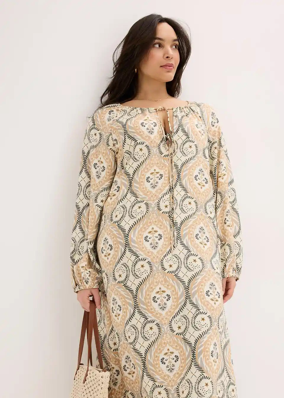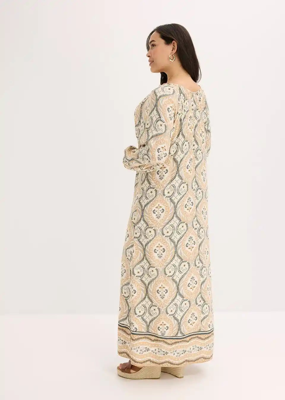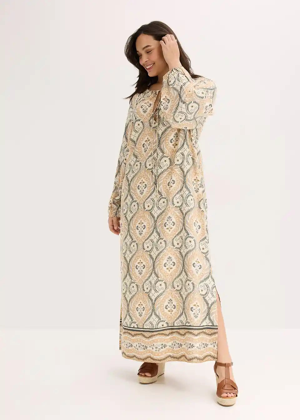 ljetna kaftan haljina maksimalne dužine od lepršave viskoze s dvije male vezice sprijeda na izrezu