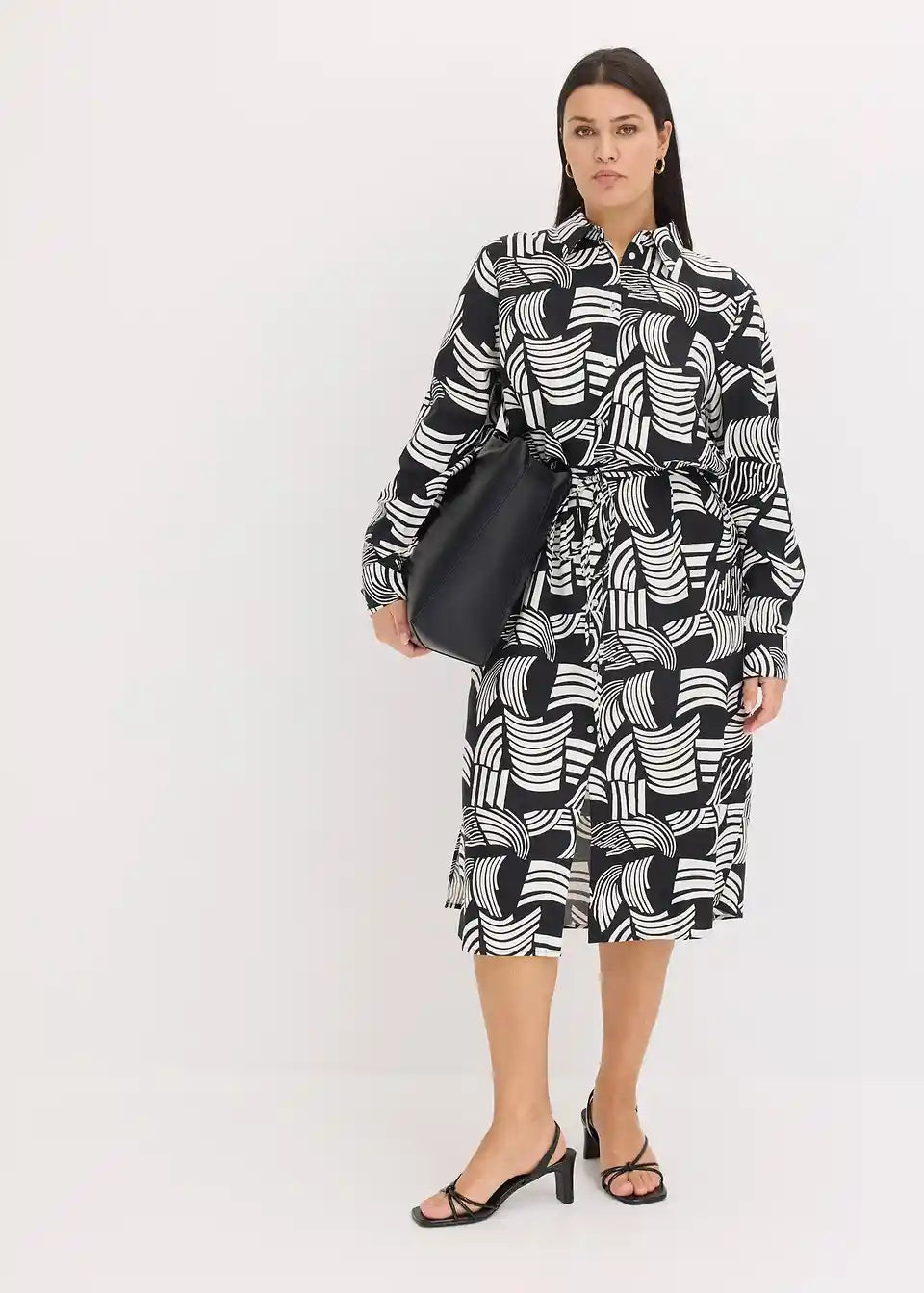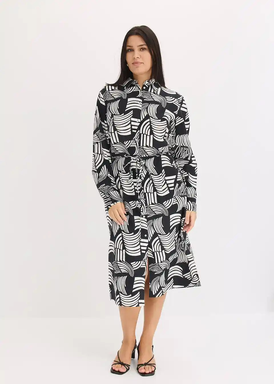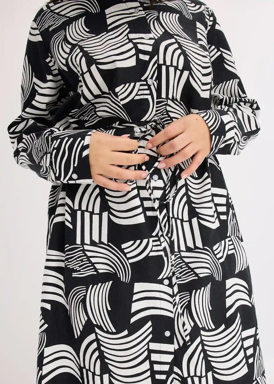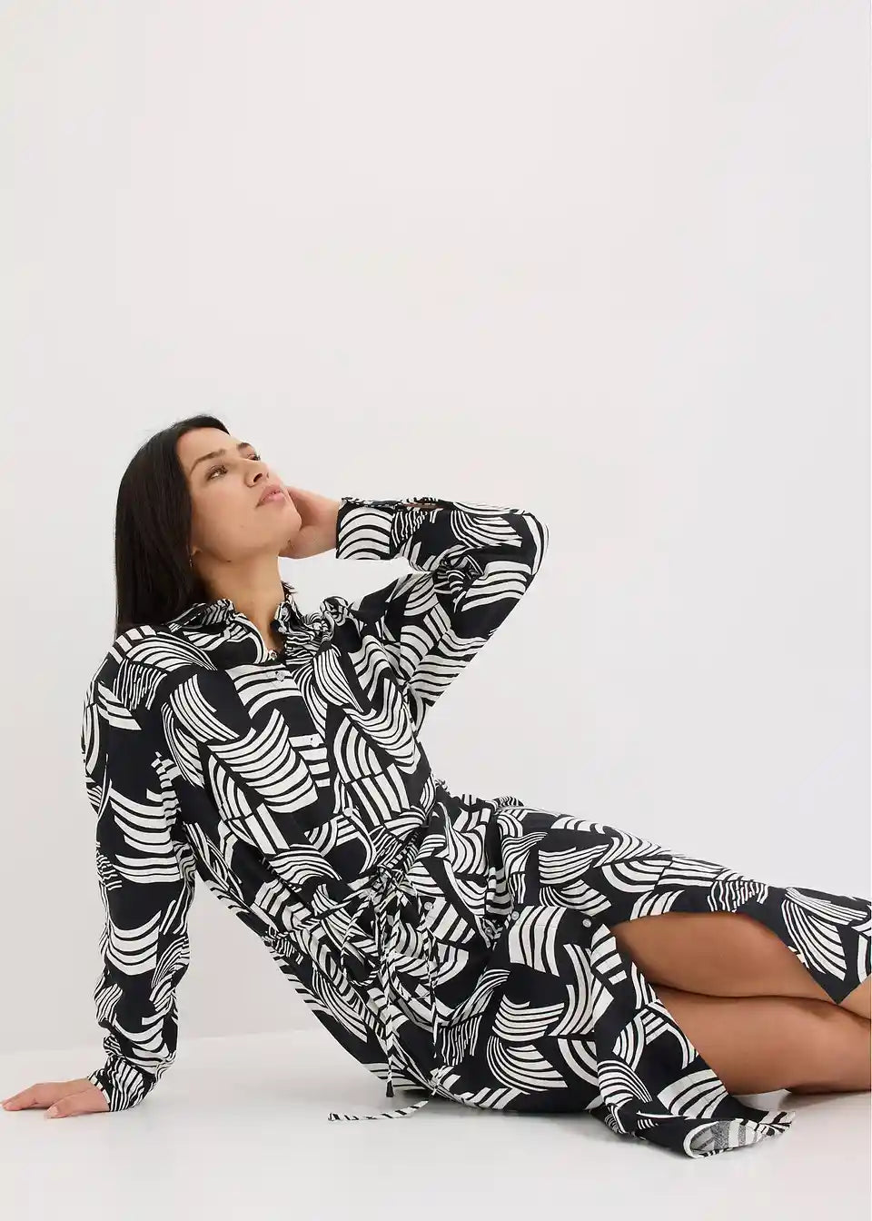 Haljina u kroju košulje s uzorkom od laganog materijala s udjelom lana