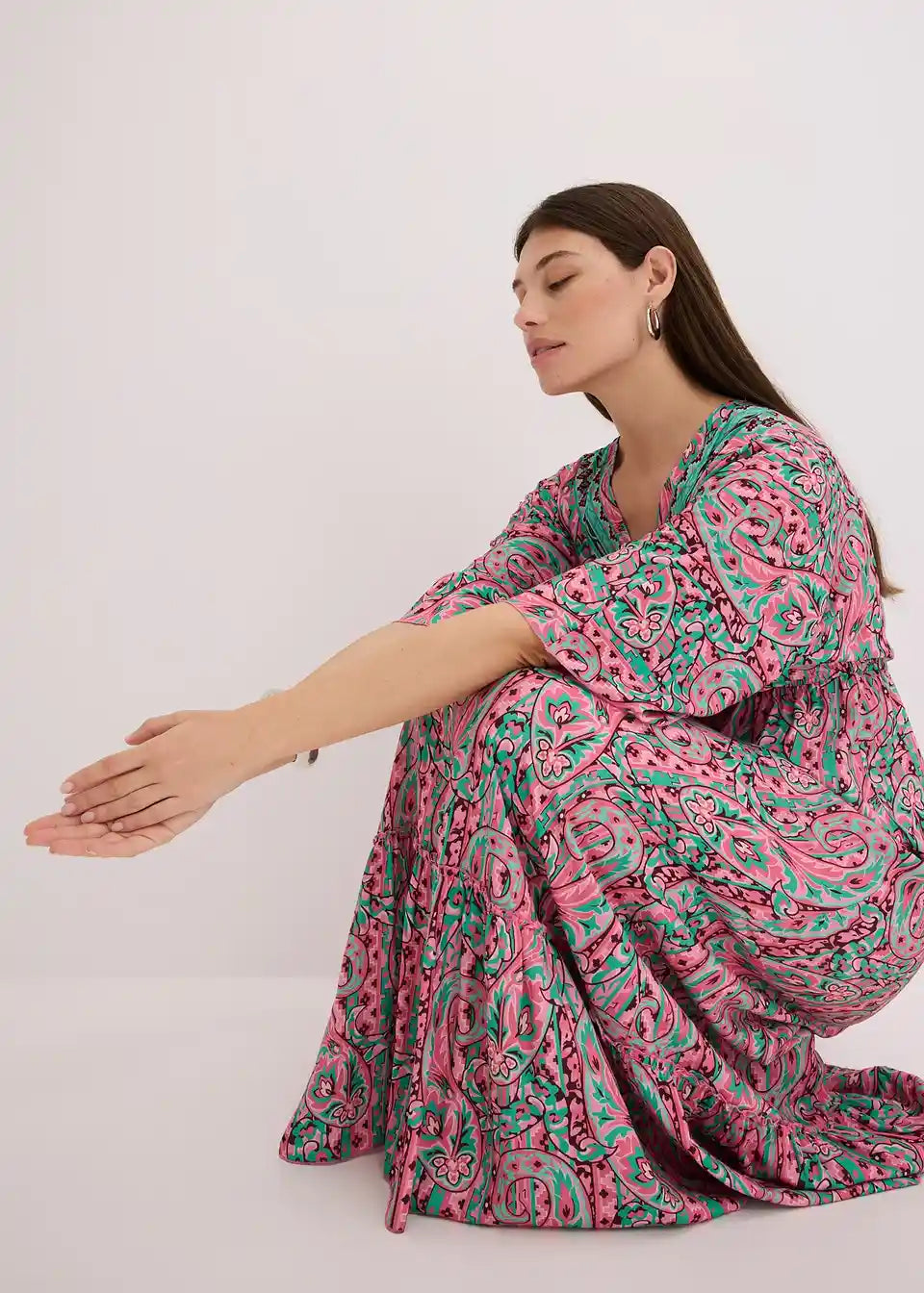 Maksi haljina s uzorkom od padajuće viskoze