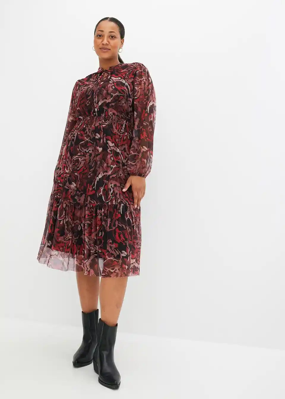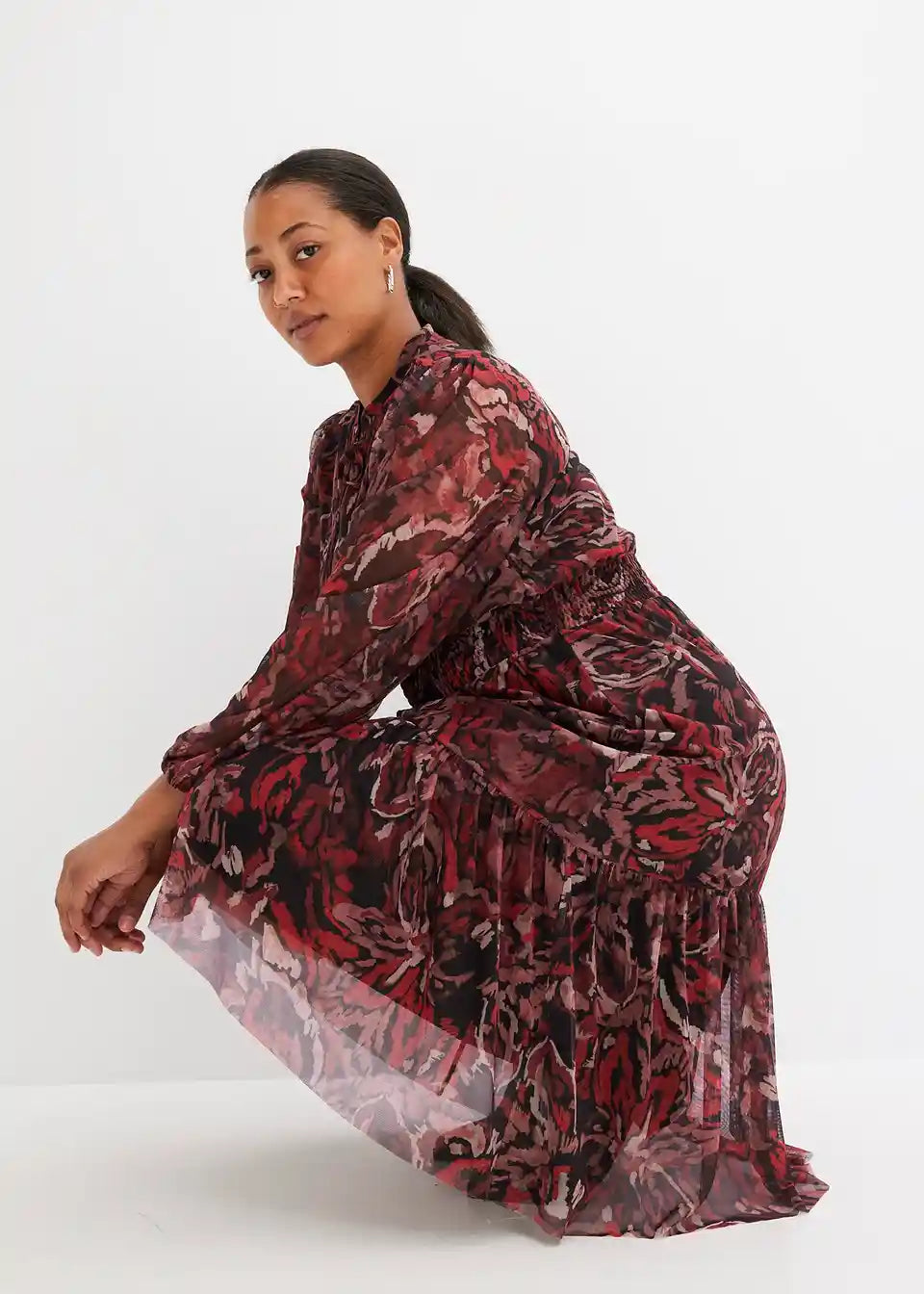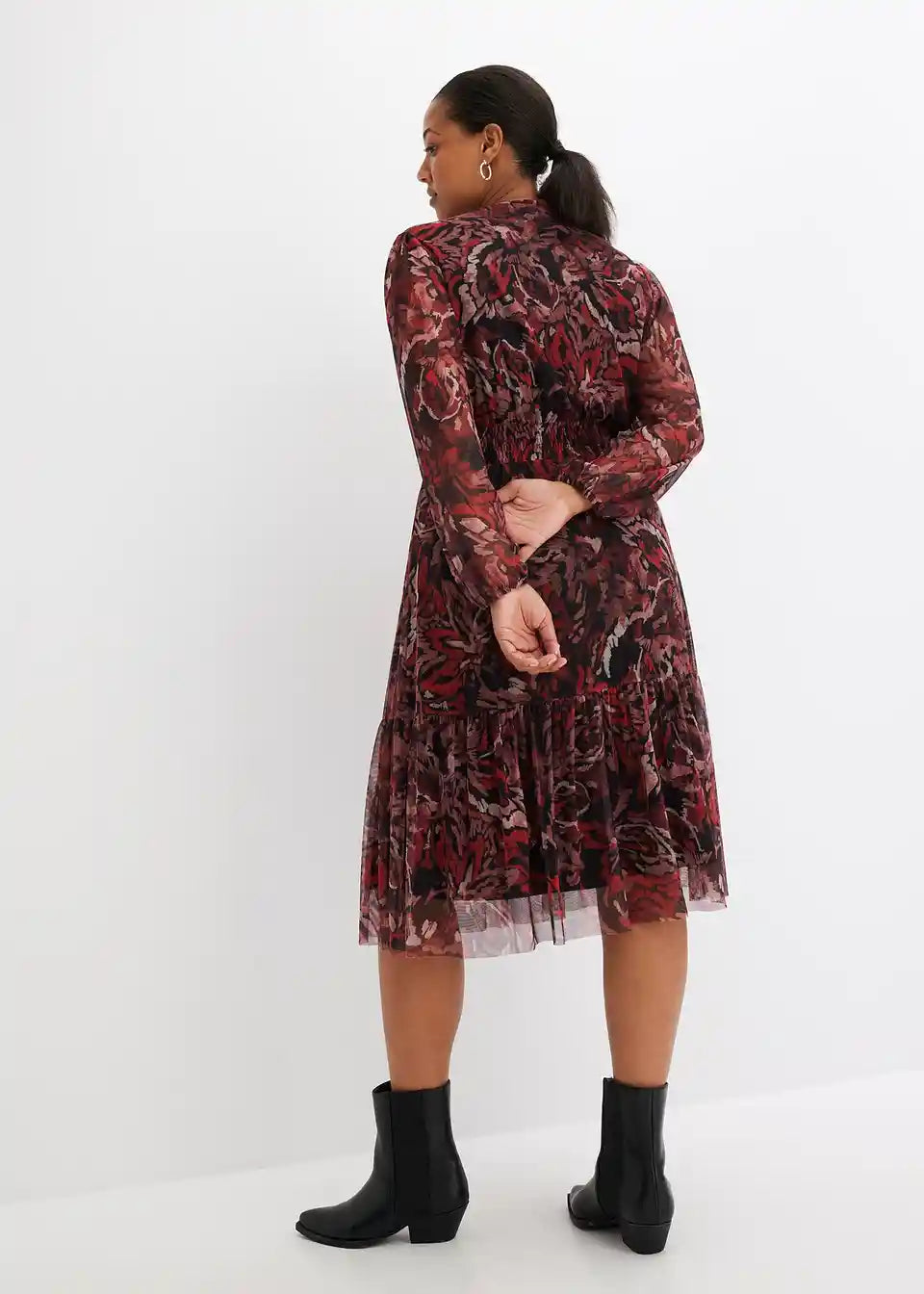 Midi haljina od mrežastog materijala s uzorkom