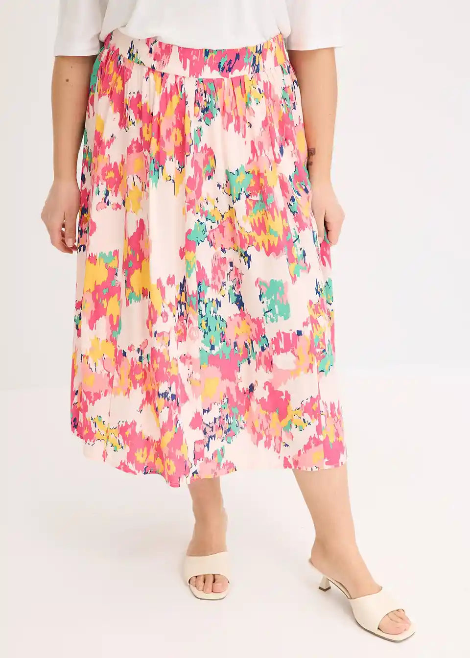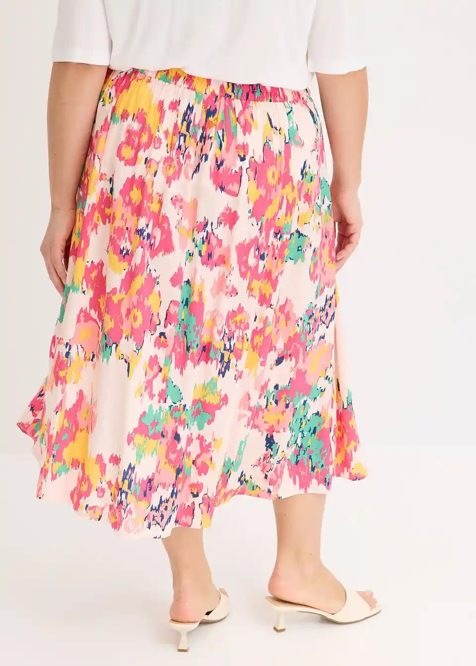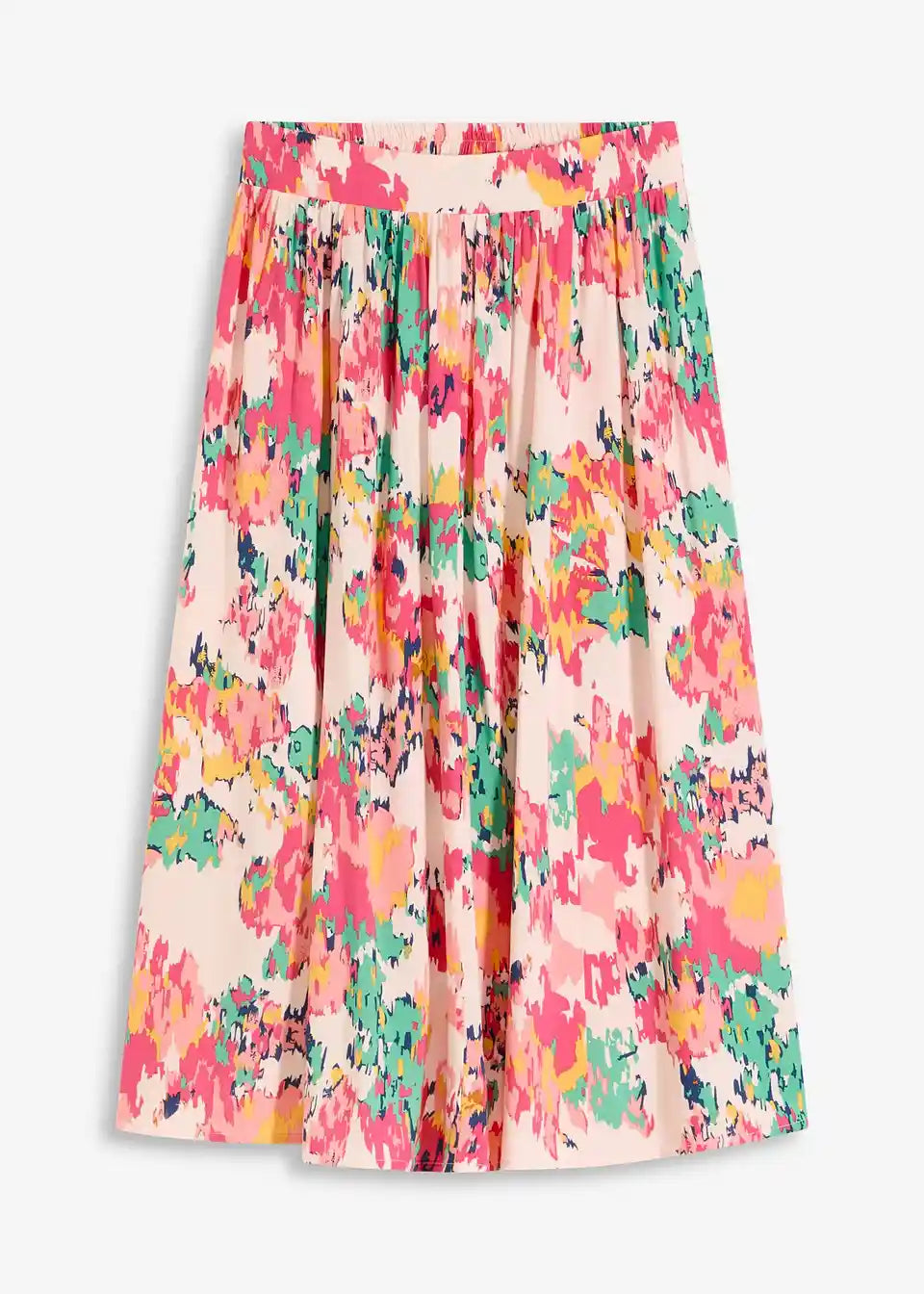 moderna printana suknja midi dužine s elastičnim pojasom straga