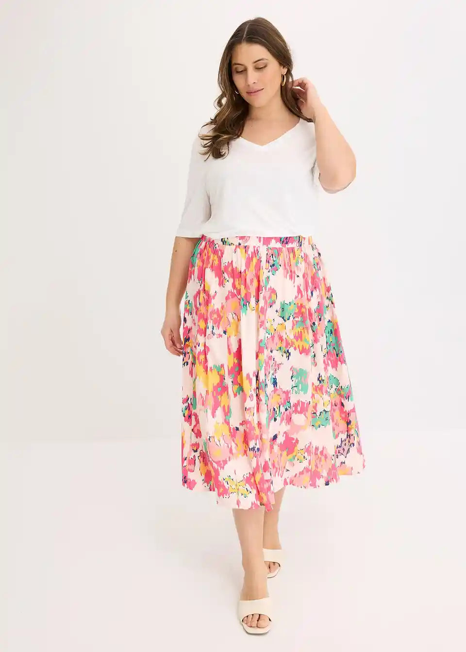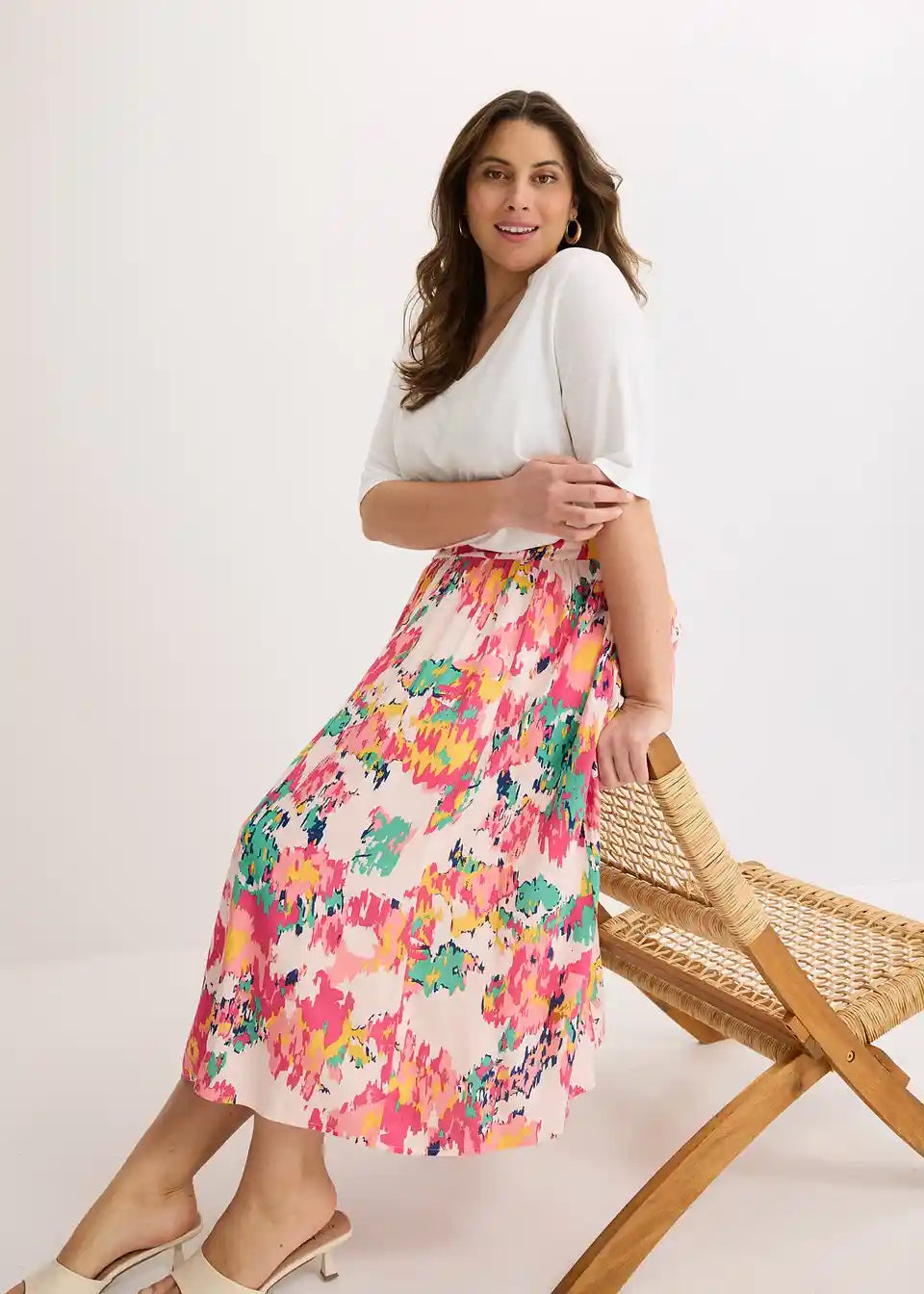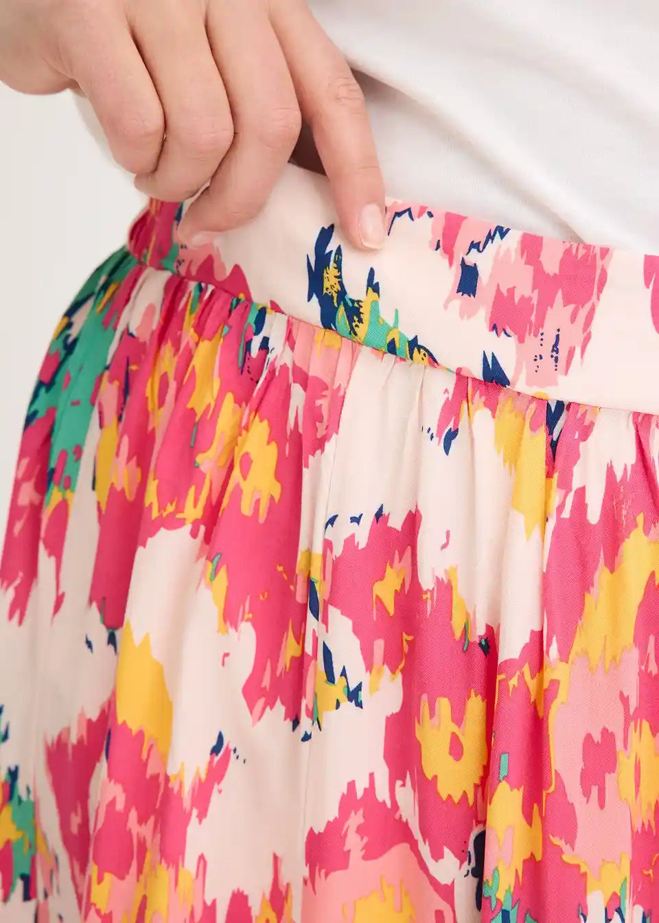 moderna printana suknja midi dužine s elastičnim pojasom straga