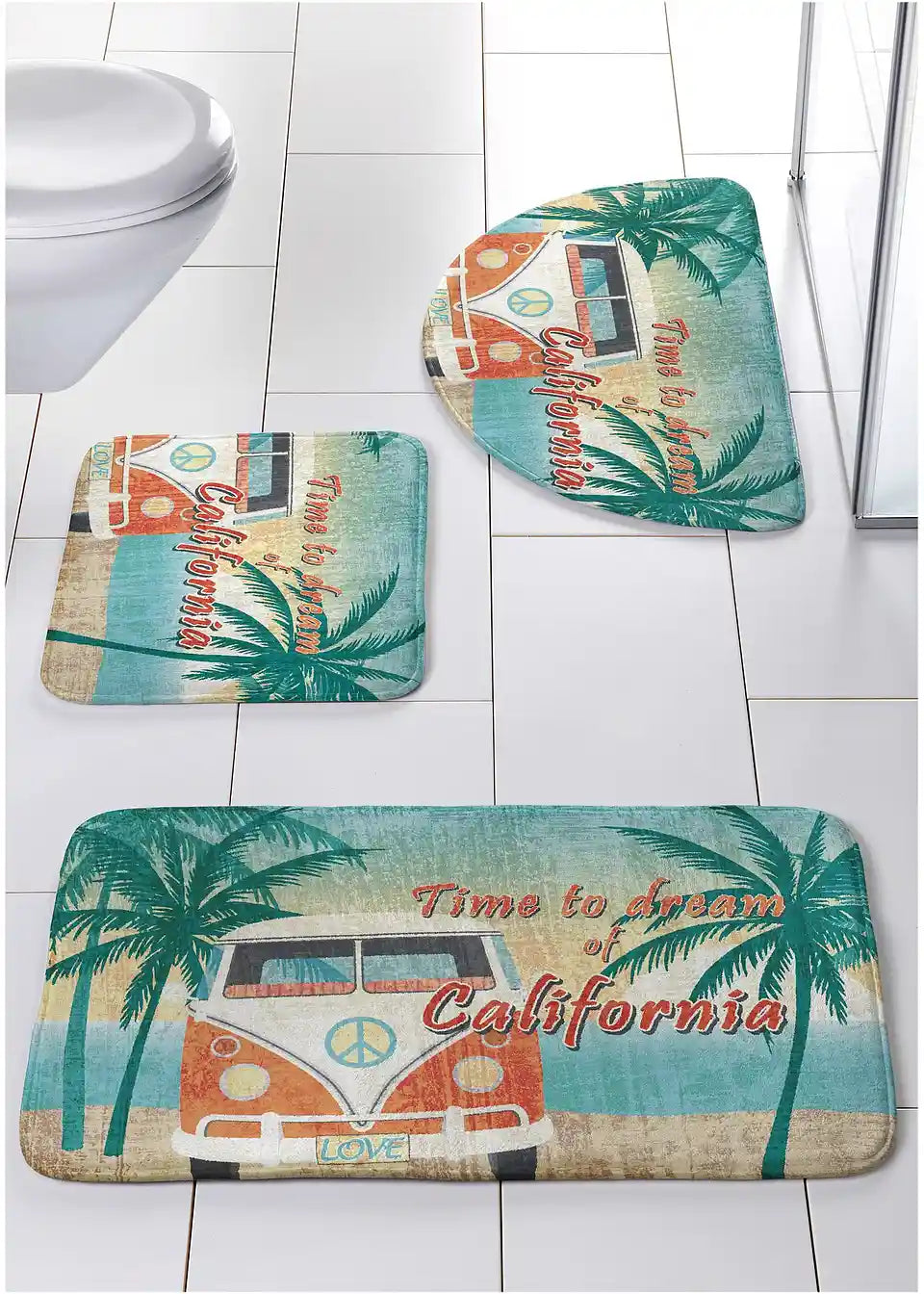 Šareni kupaonski set koji donosi ljetno raspoloženje, izuzetno mekan pod nogama, brzo se suši, s Memory pjenom. Izuzetno upijajući.