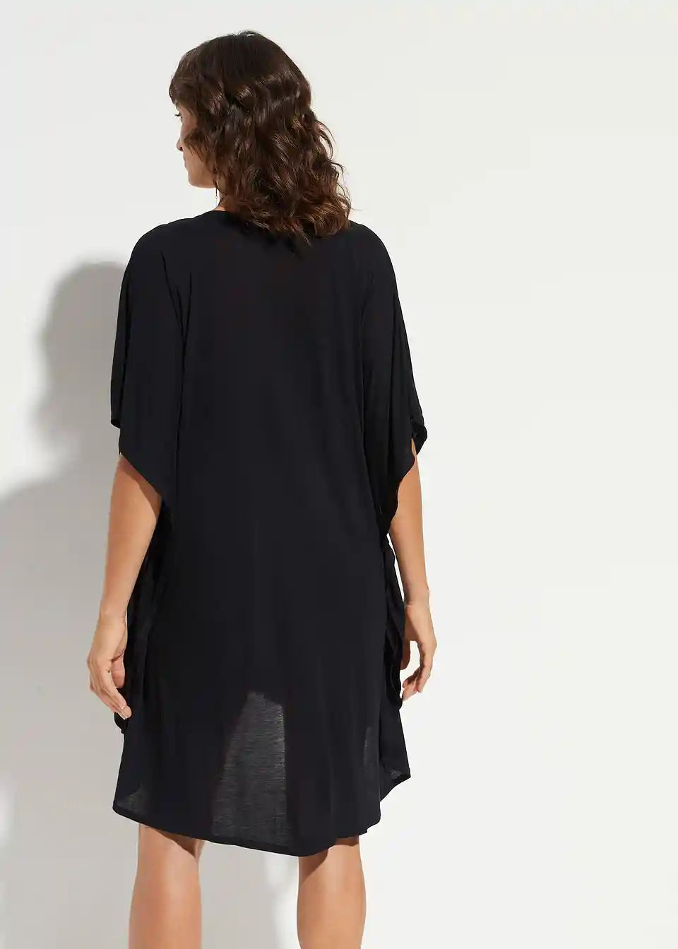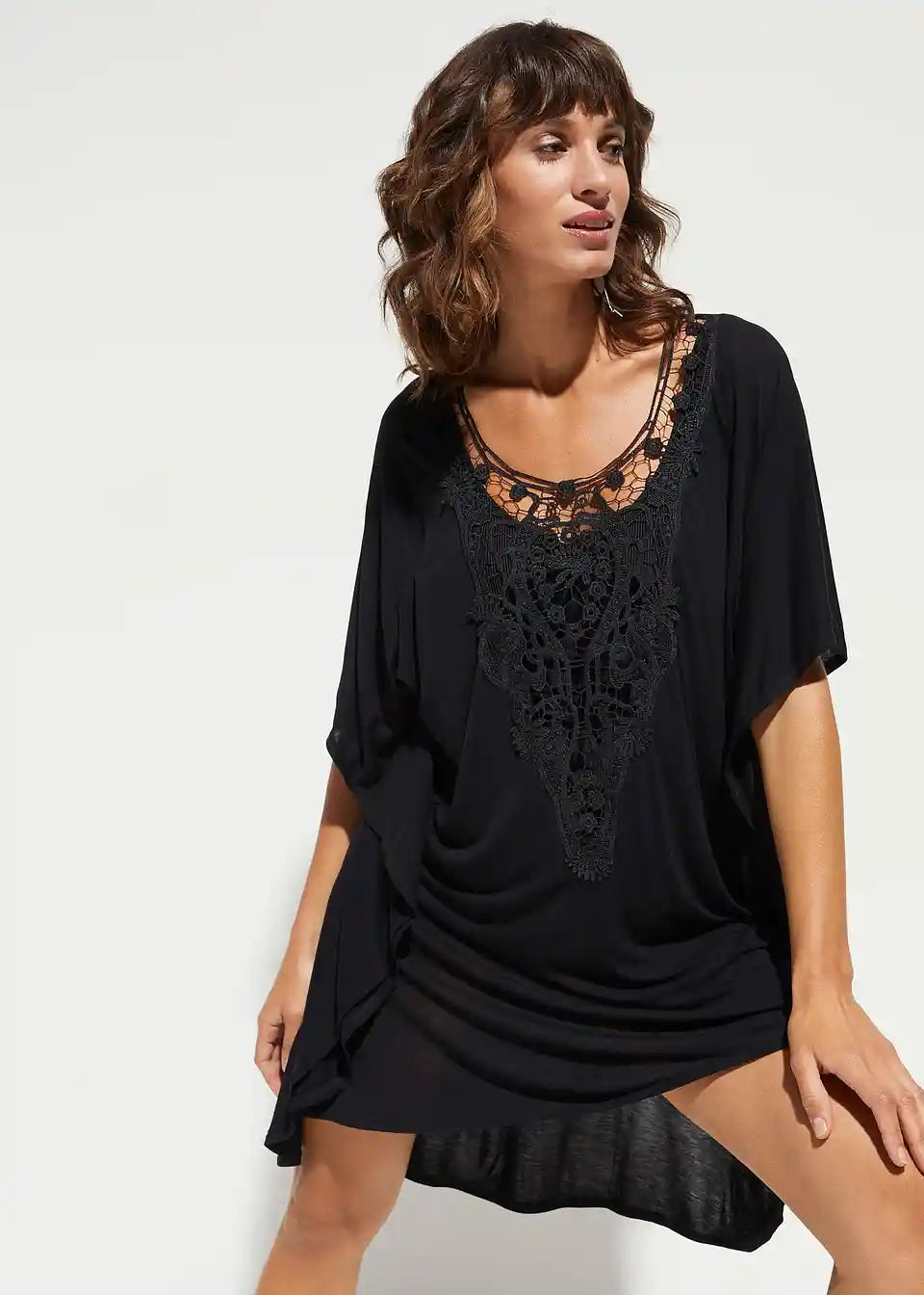 Tunika za plažu koja laskavo prekriva figuru s umetkom od čipke